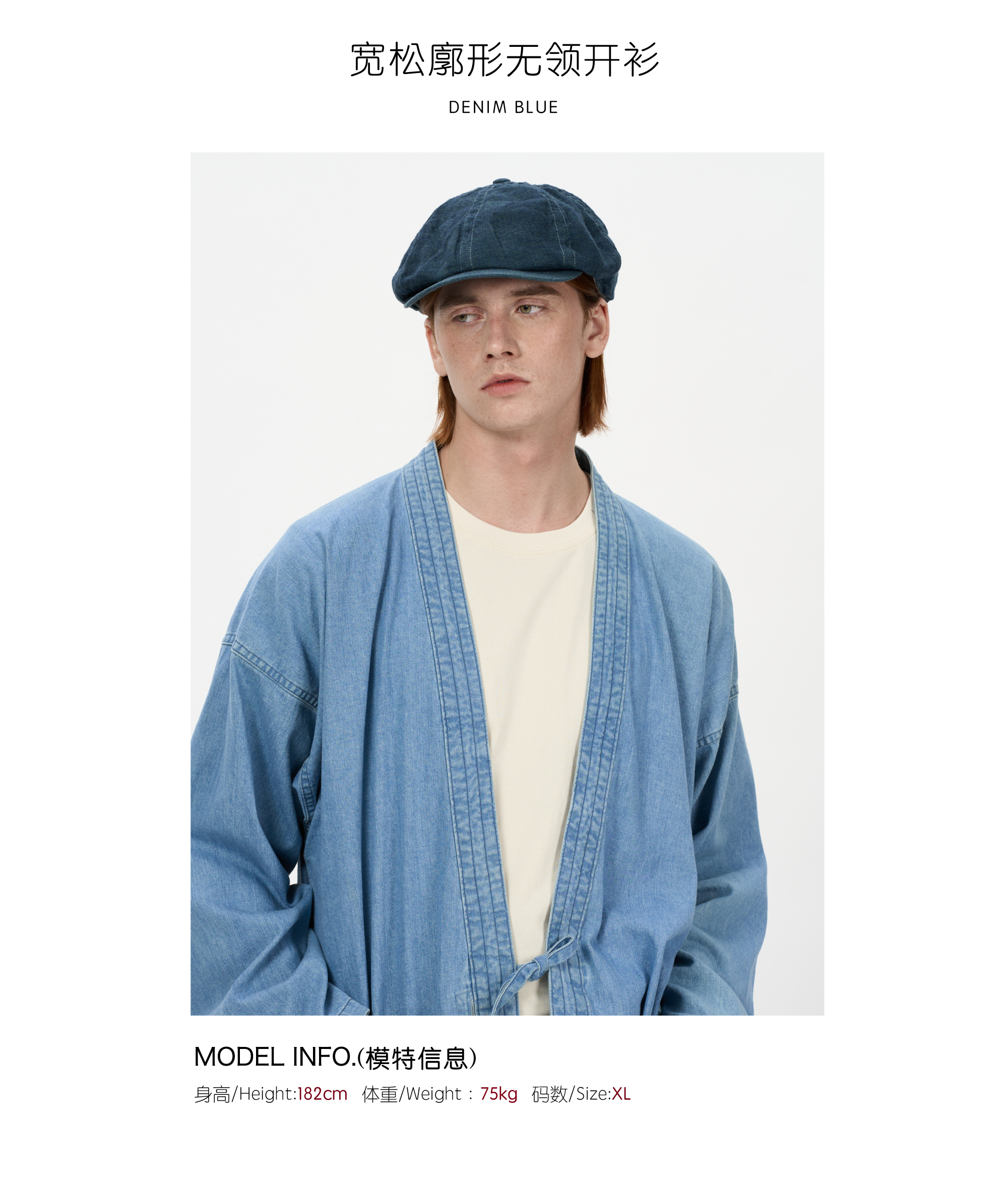 Woodbowl.2024Ss Denim Jacket-Indigo Plant-Dyed Blue-Dyed Distressed Robe Jacket