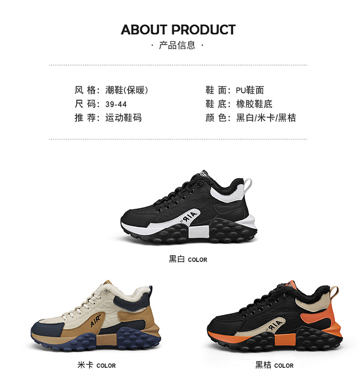 High-Top Shoes for Men, Winter 2025 New Style, Fleece-Lined, Warm Cotton Shoes, Thick-Soled Sneakers, Snow Boots, Sports Casual Trendy Shoes