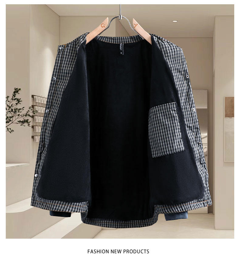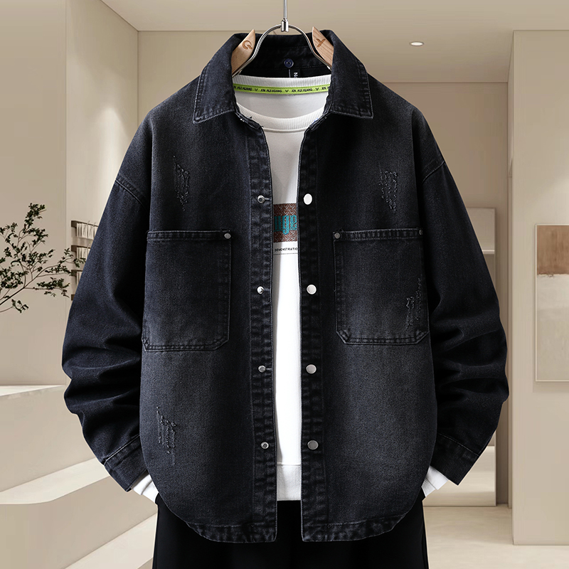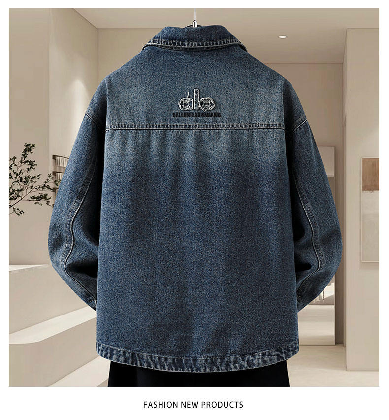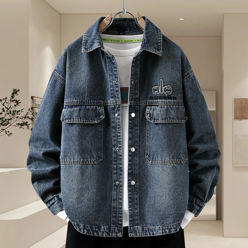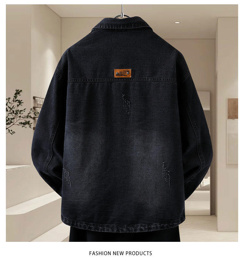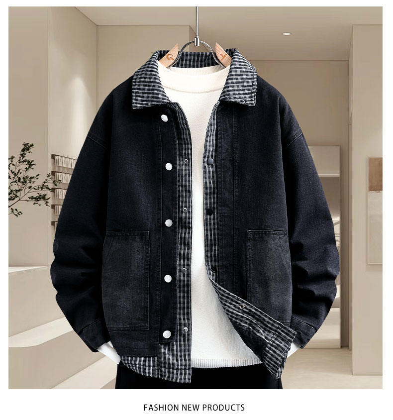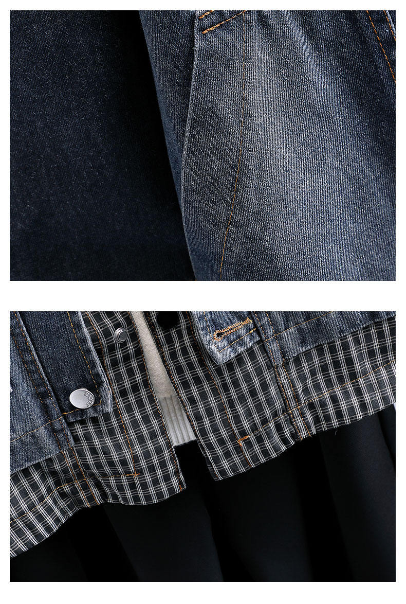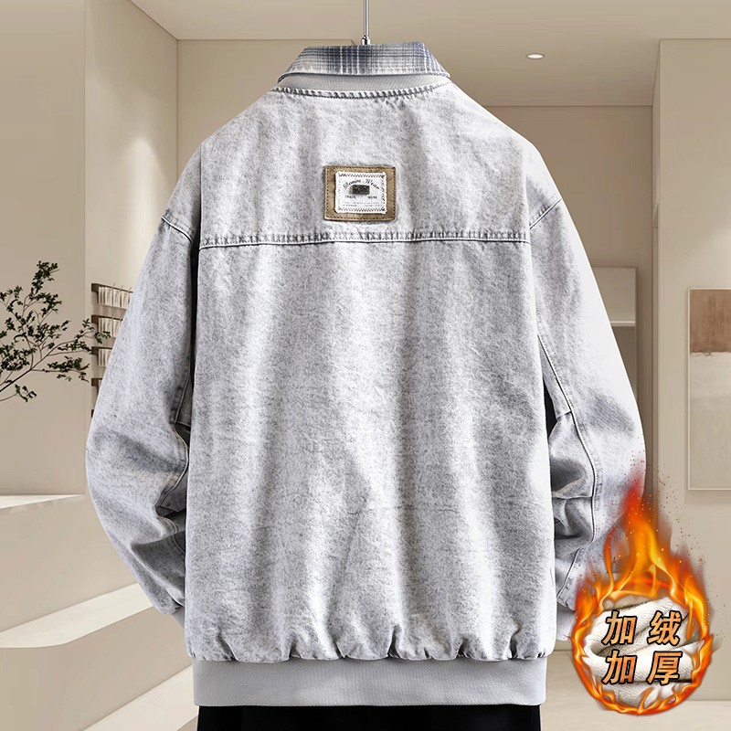 Autumn and Winter Lapel Patchwork Faux Two-Piece Fleece-Lined Denim Jacket for Men, Teenagers, and Middle School Students, Stylish and Warm Coat