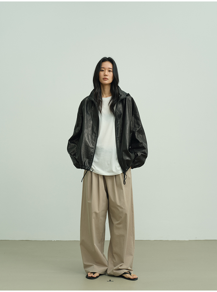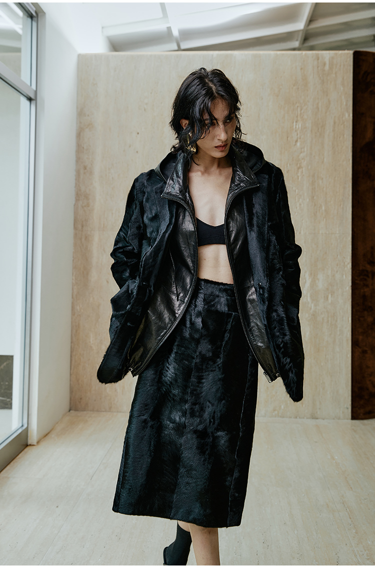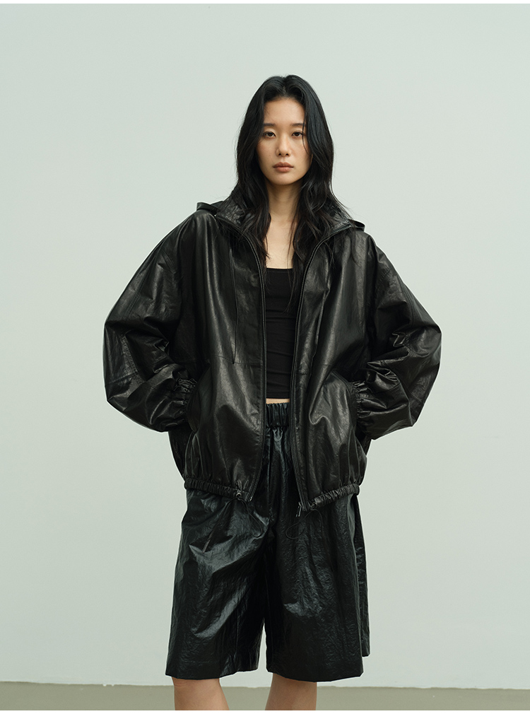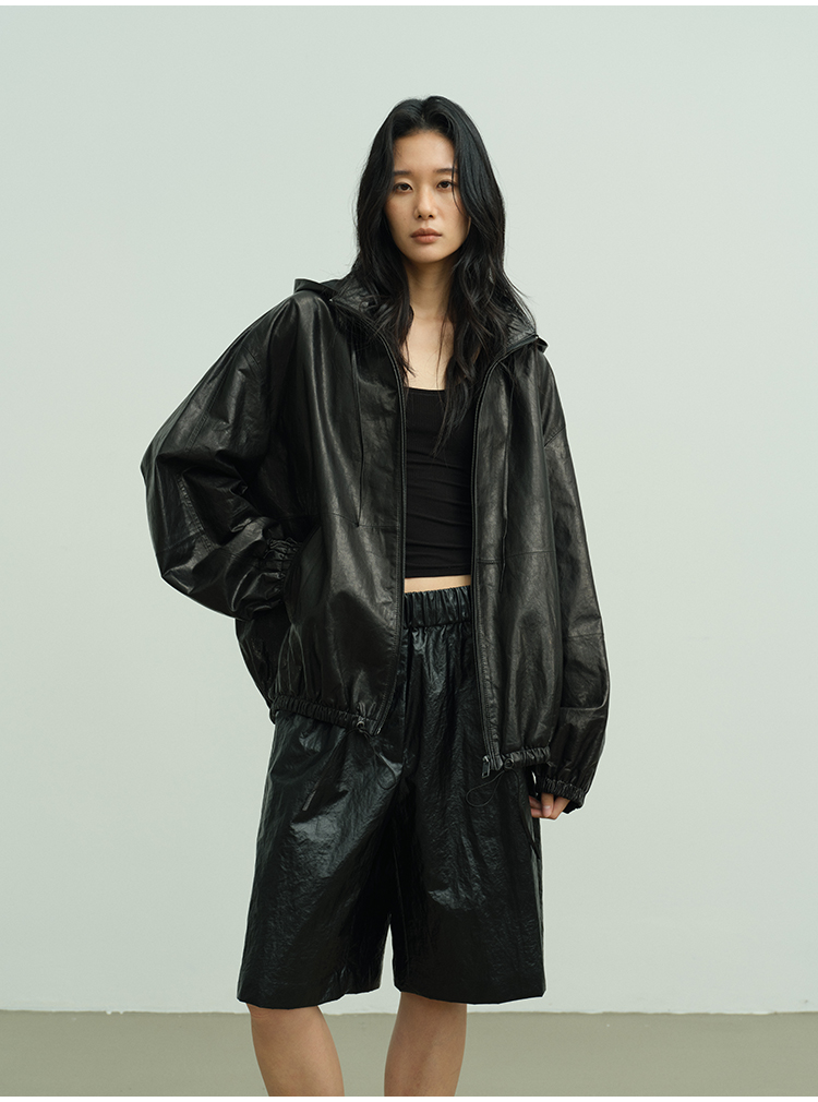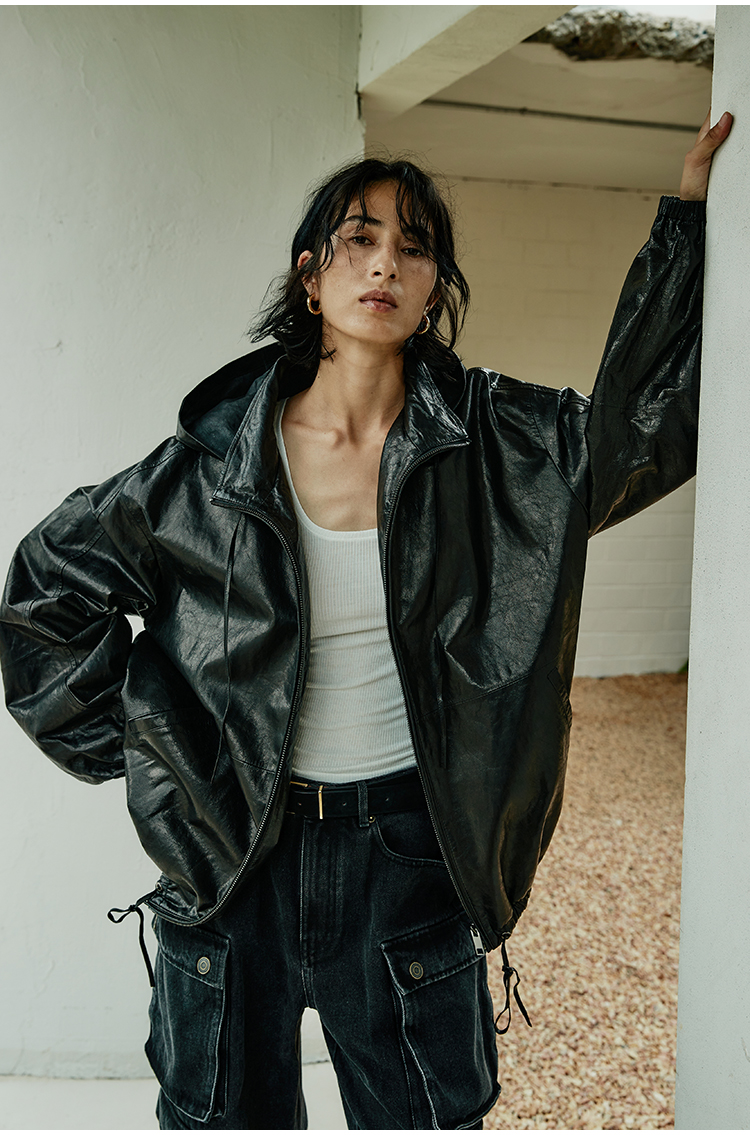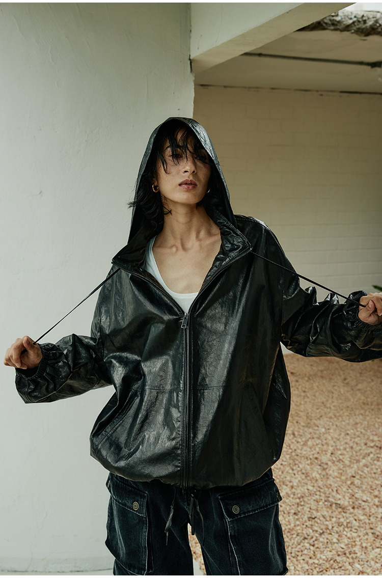 Ayuko|First Layer Small Goatskin Ultra-Thin Craft Uncoated Detachable Hooded Silhouette Row Leather Jacket
