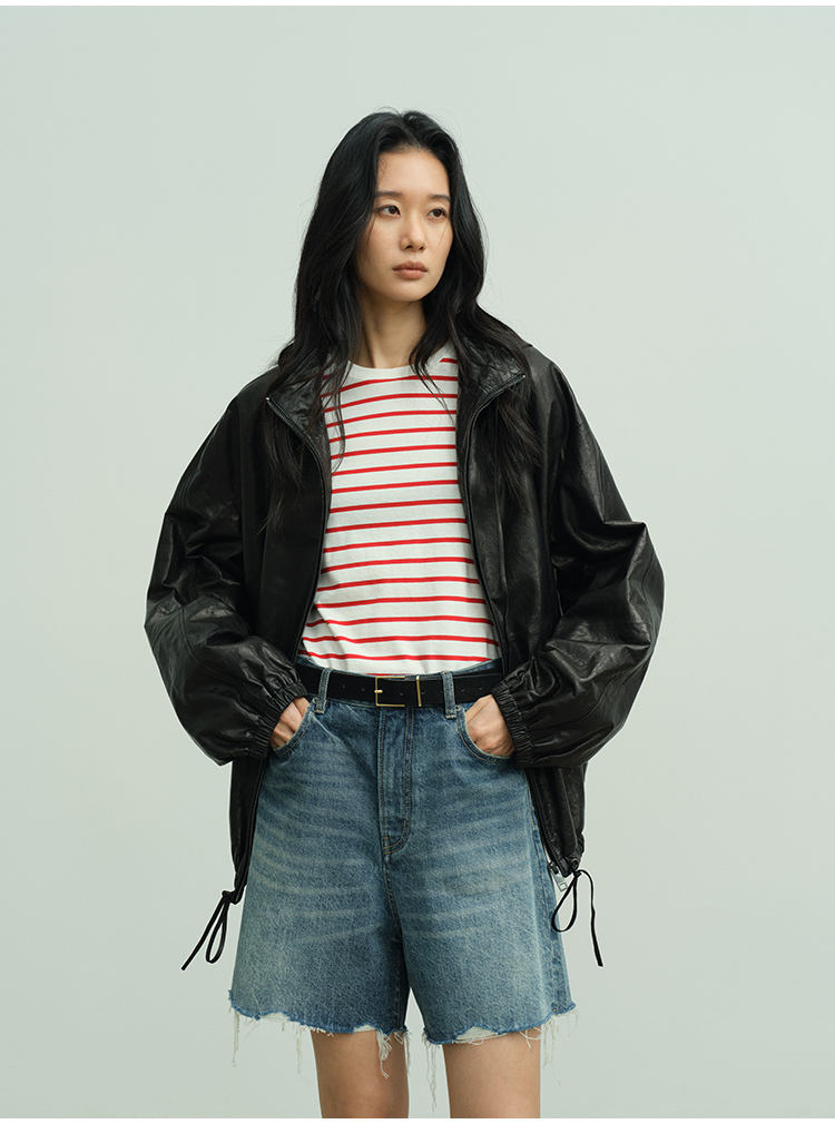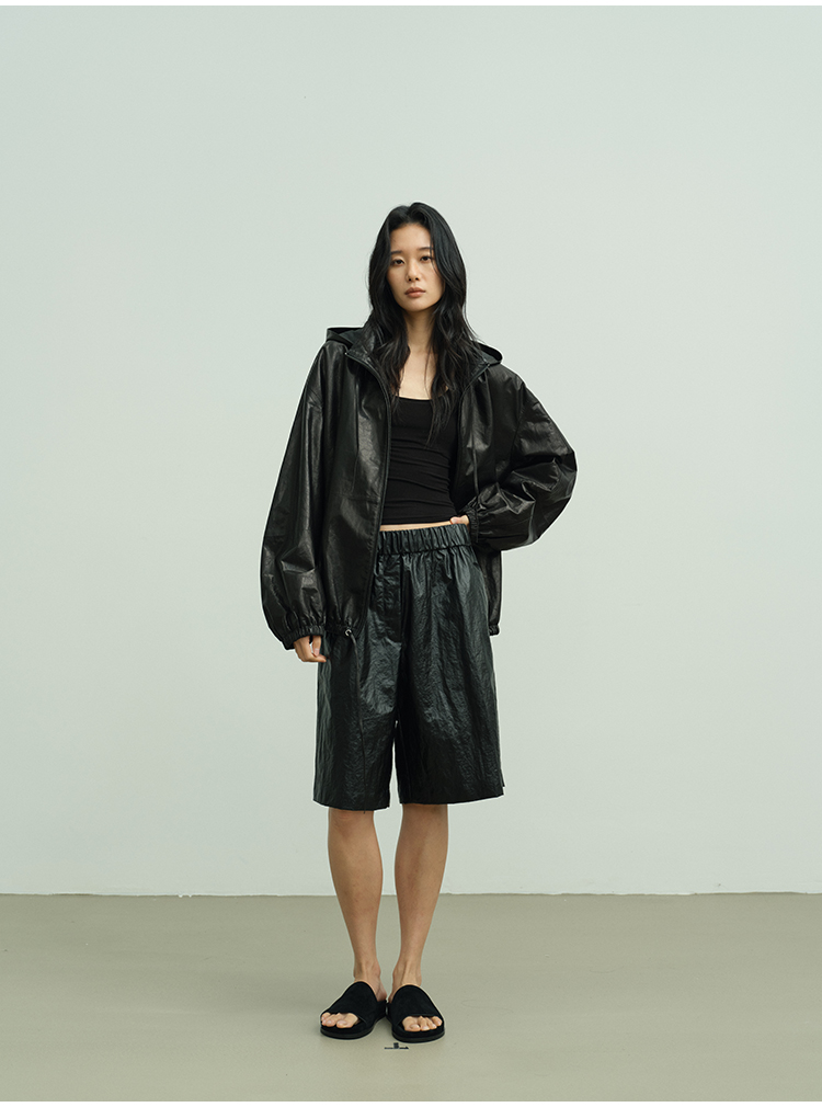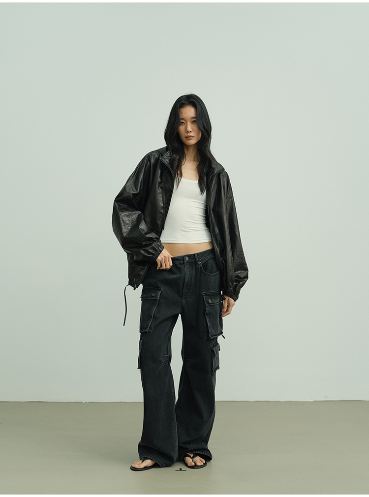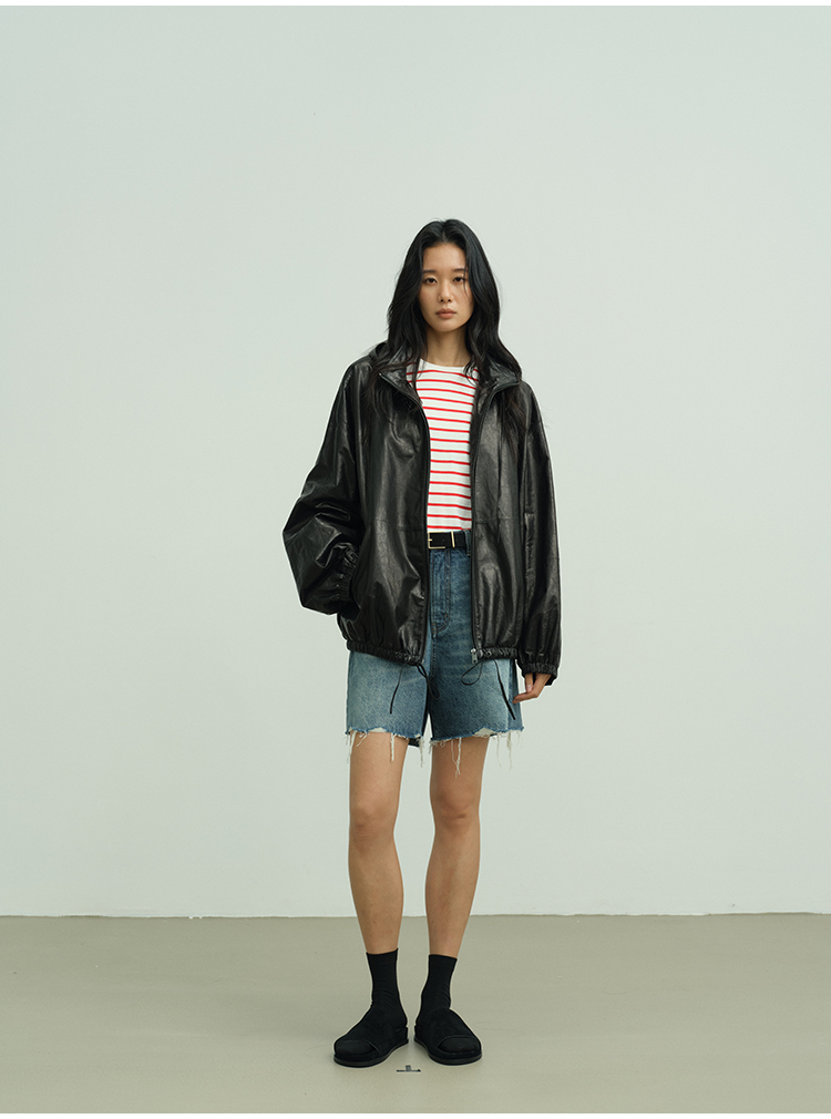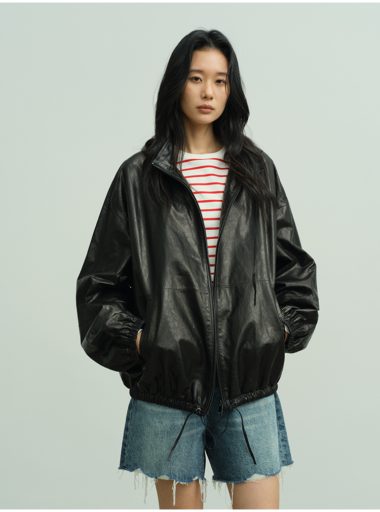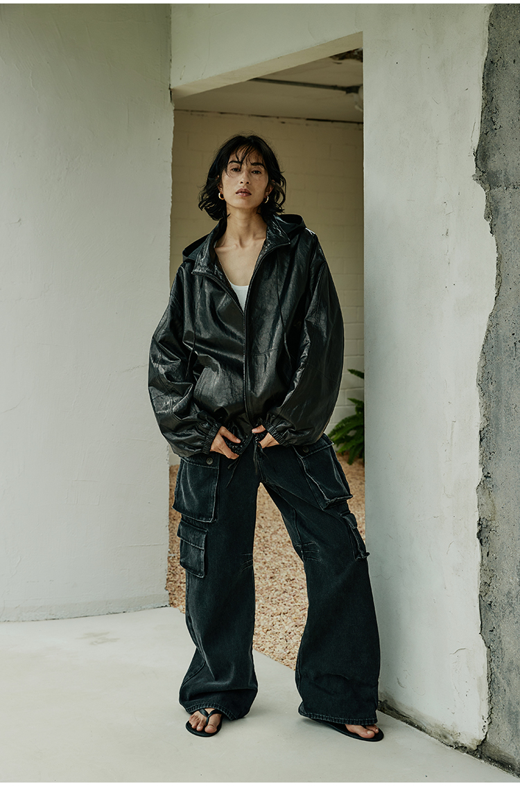 Ayuko|First Layer Small Goatskin Ultra-Thin Craft Uncoated Detachable Hooded Silhouette Row Leather Jacket
