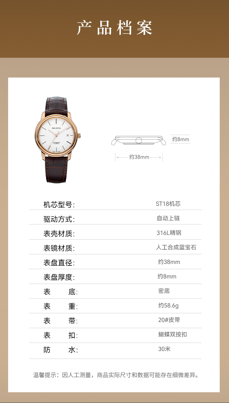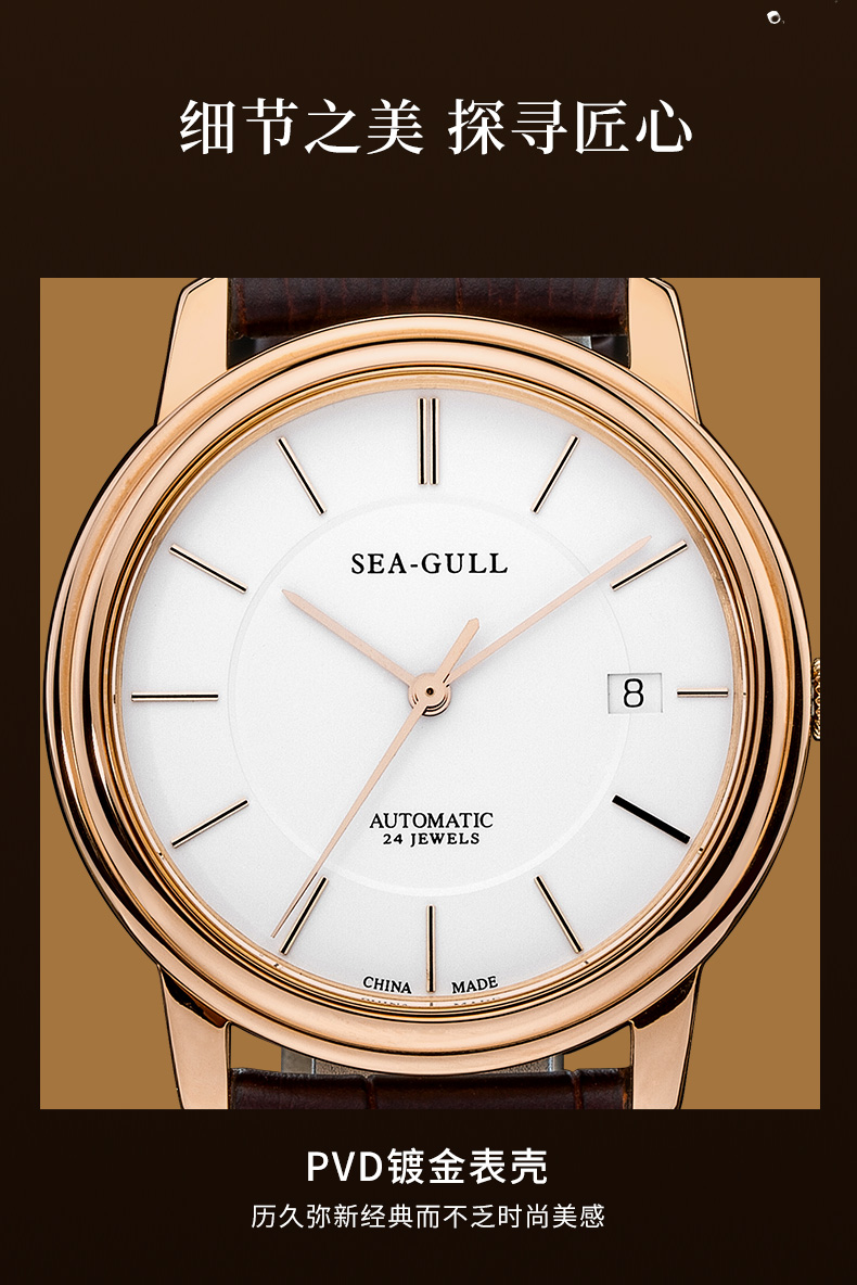 Seagull Watch Men's Simple Leather Strap Single Calendar Men's Watch Automatic Mechanical Watch M201Sg