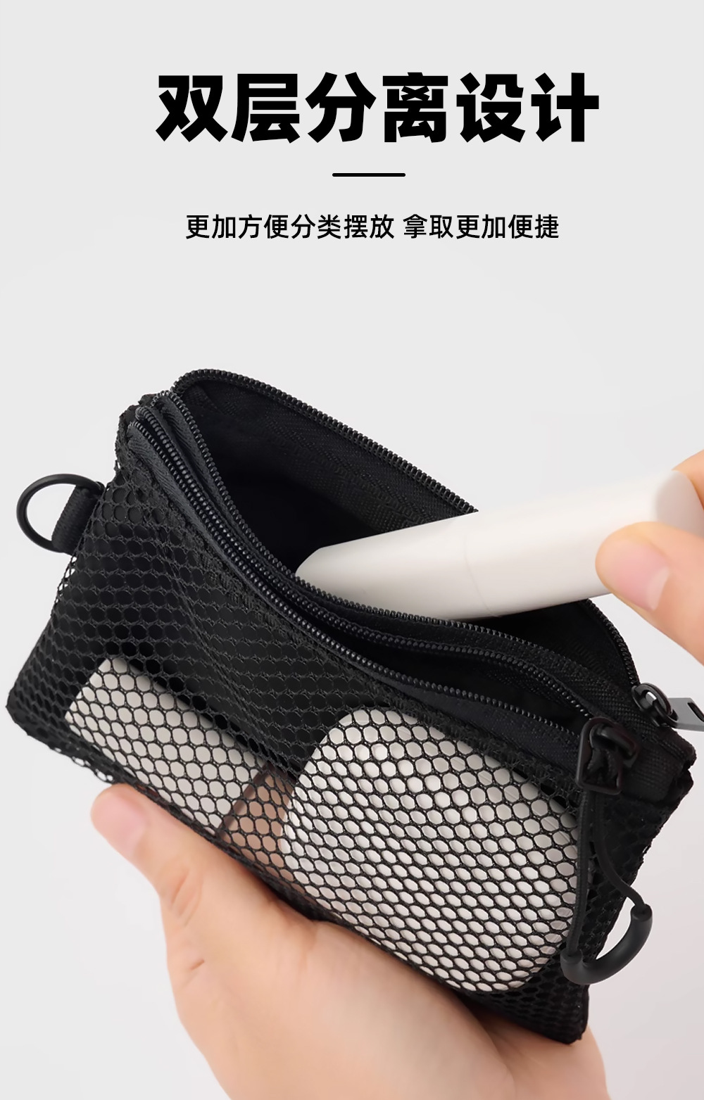 Japanese-Style Export Double Zipper Bag Mesh Phone Bag Storage Bag Mesh Pouch Minimalist Travel Small Bag Coin Purse Card Holder