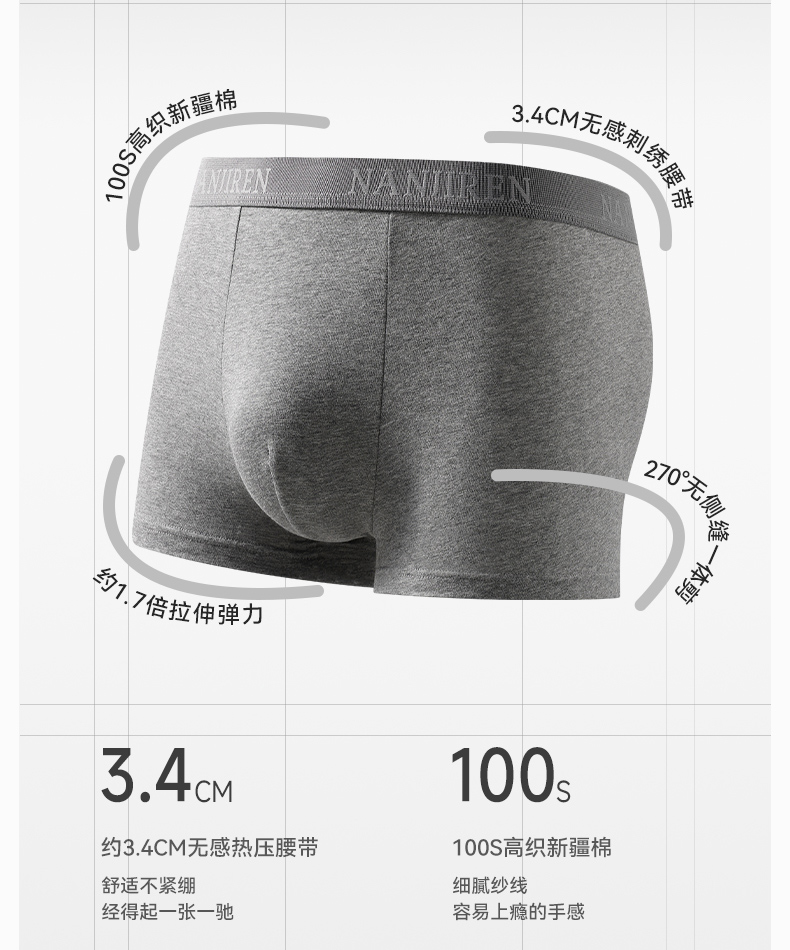 Nanjiren Men's Underwear, Men's Pure Cotton Antibacterial Boxer Briefs, 2025 New Style, Large Size Breathable Boxer Briefs for Men