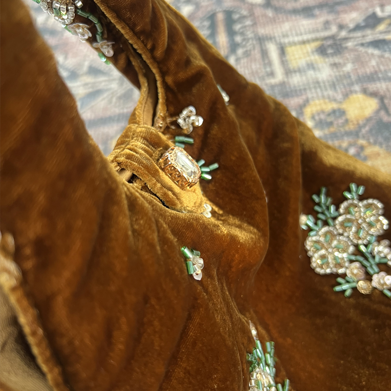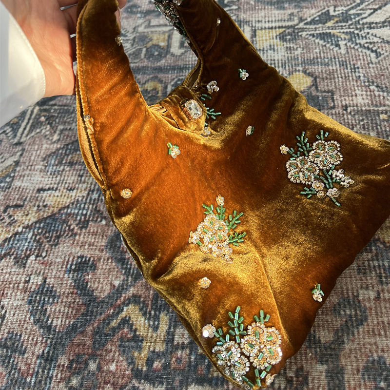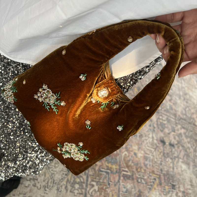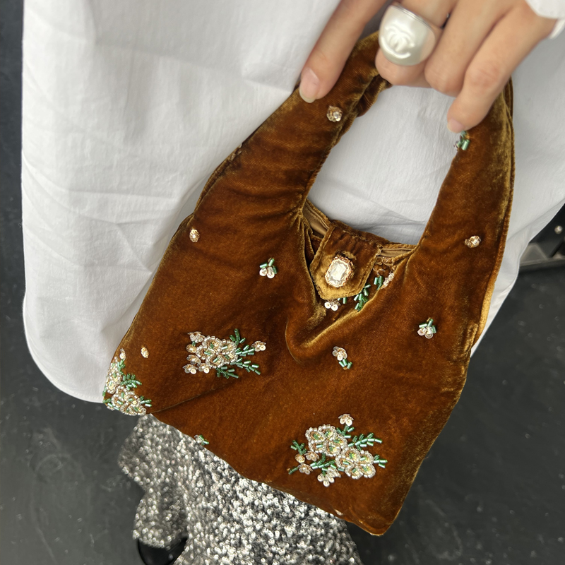 Silk Velvet Handbag for Women, Spring New Style, Beaded Embroidery Bag, New Chinese Style Women's Bag, Versatile Retro Clutch Bag