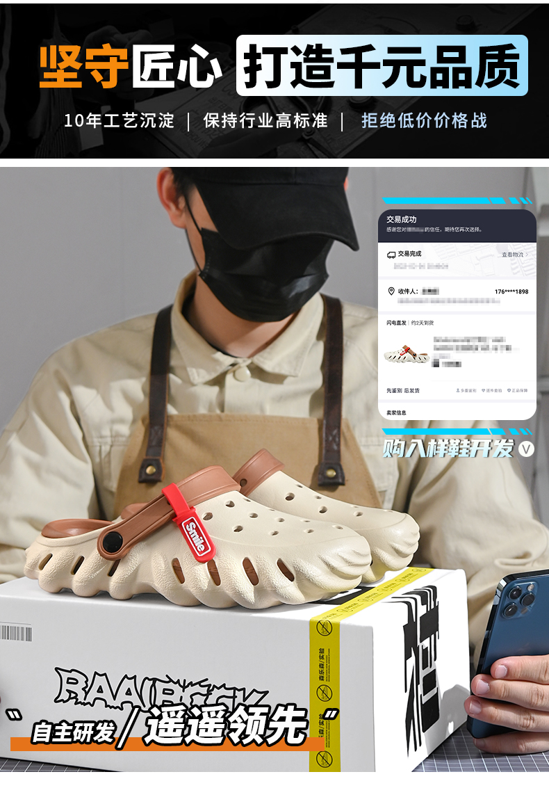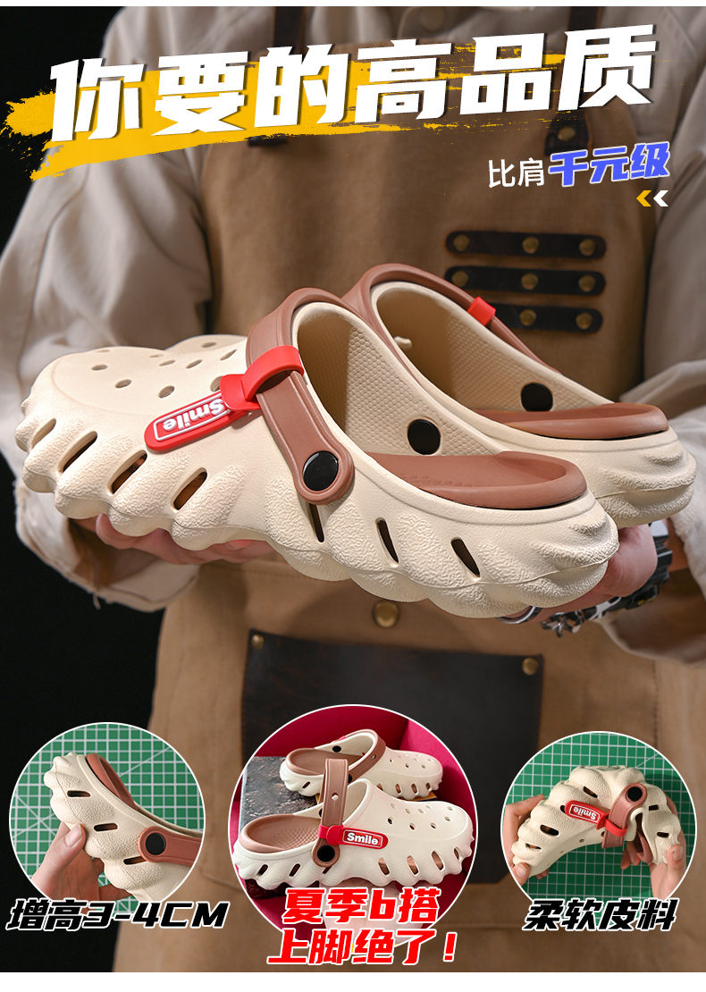 Official Genuine Men's Clogs for Summer soft sole Non-Slip Odor-Resistant Eva Trendy Brand Beach Closed-Toe Slippers Sandals