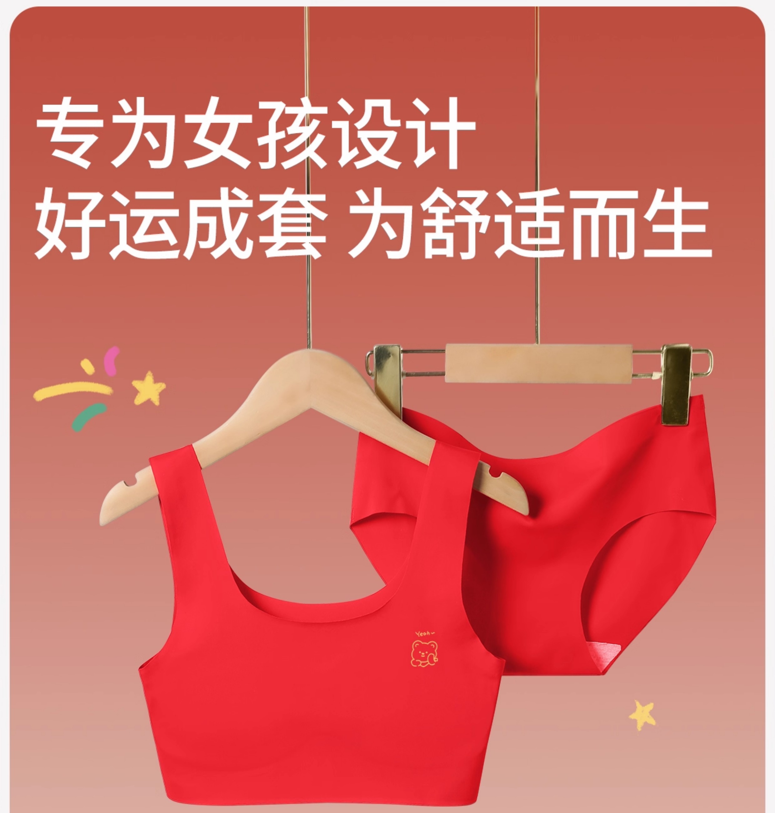 Girls' Red Zodiac Year Underwear Set 2025 Year of the Horse Clothing for Children and Young Girls in Their Developmental Period, Bra and Vest for 12-Year-Olds