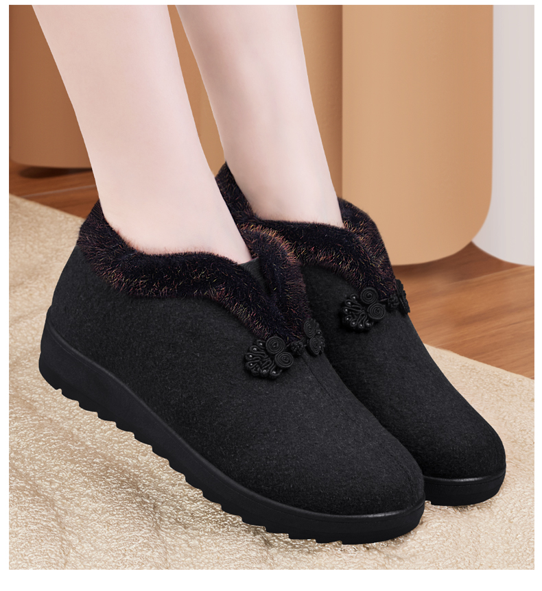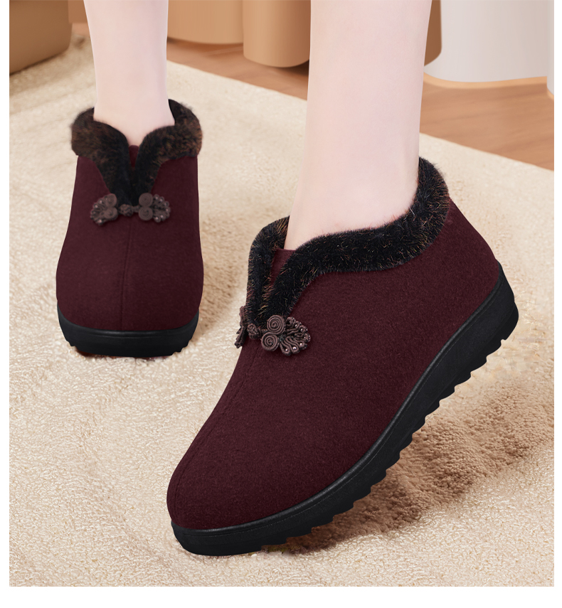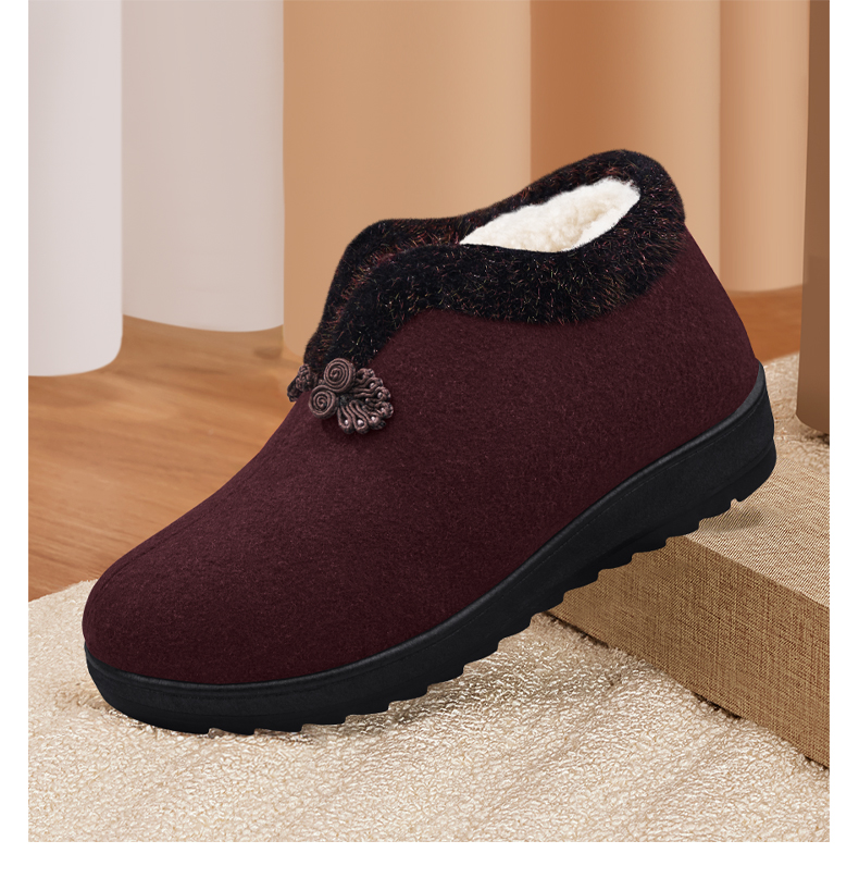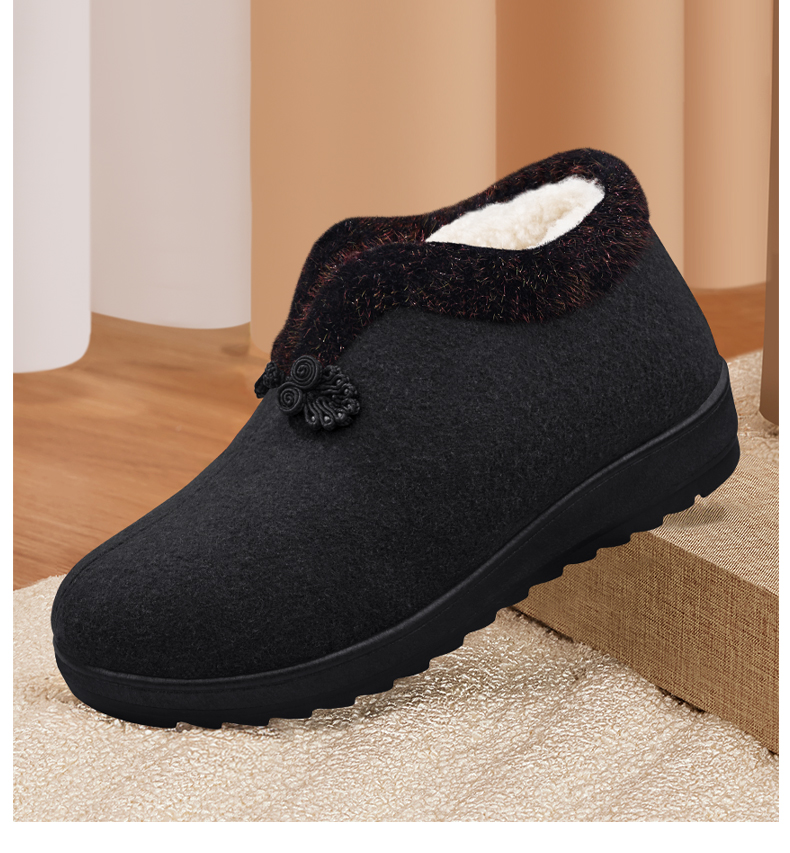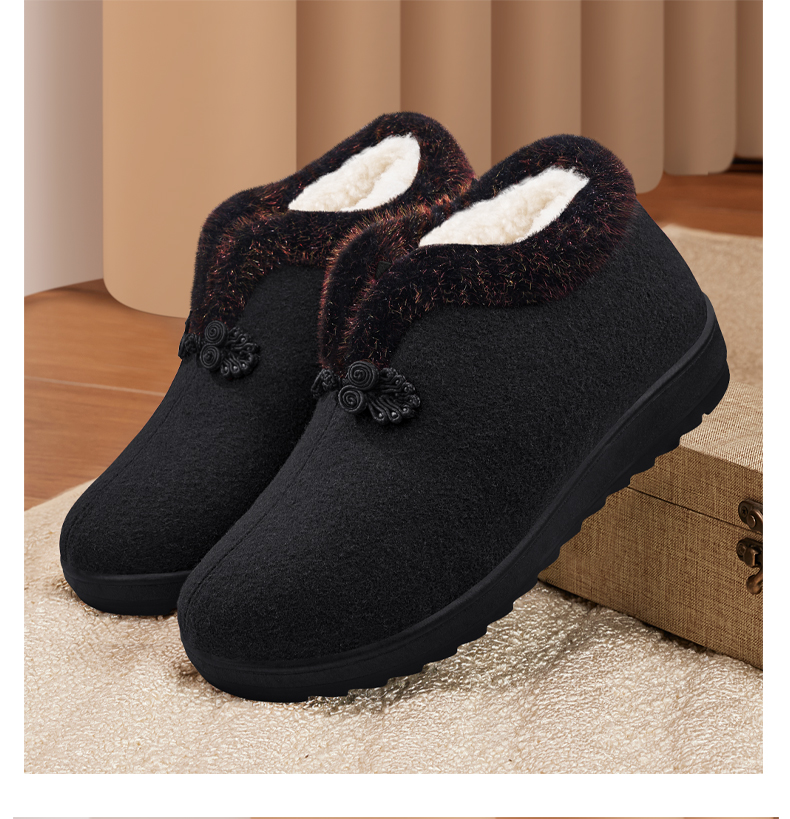 Elderly Women's Winter Cotton Shoes with Fleece Lining, New Soft-Soled Warm Shoes for Old Ladies, Old Beijing Cloth Shoes, Wool Autumn and Winter Grandma Cotton Boots