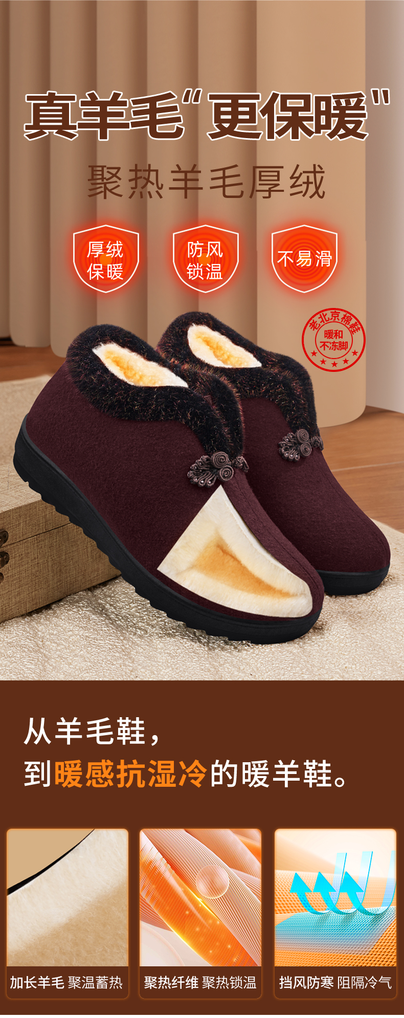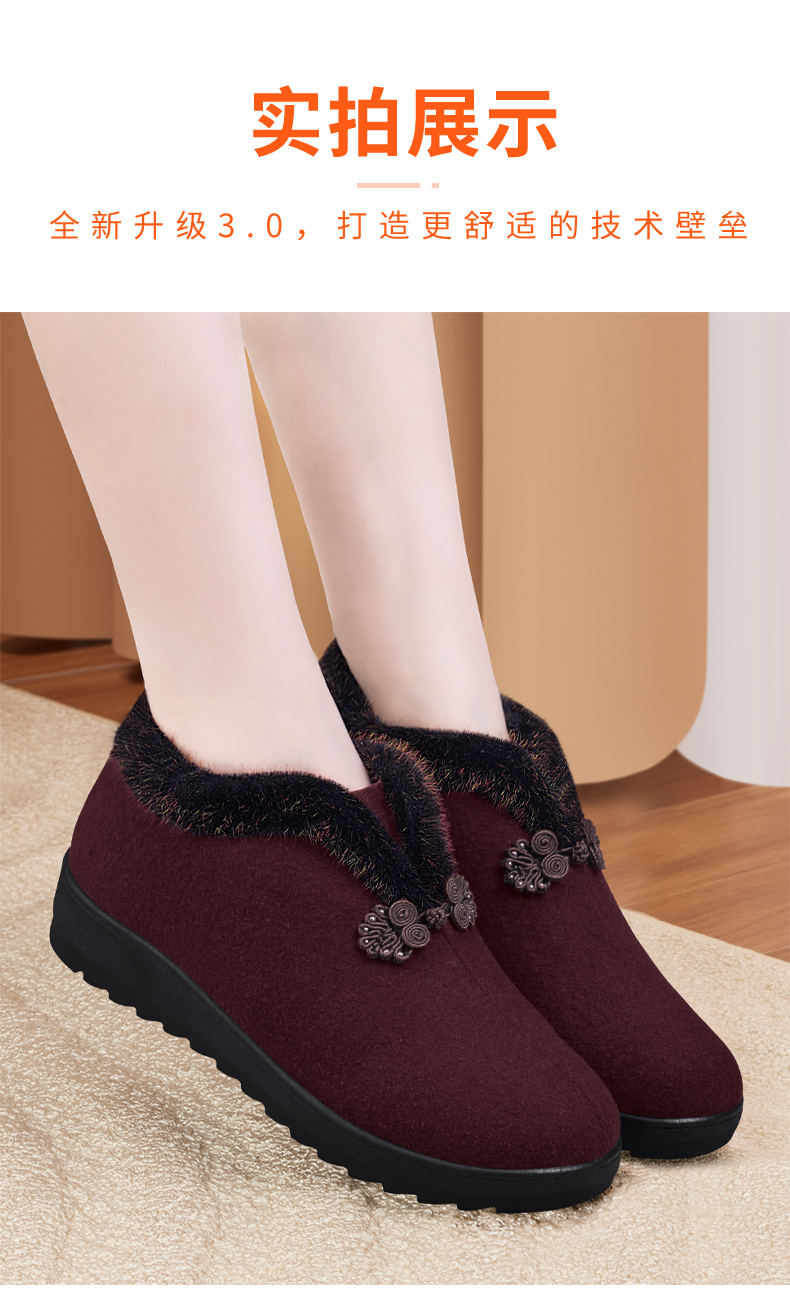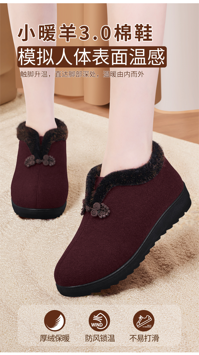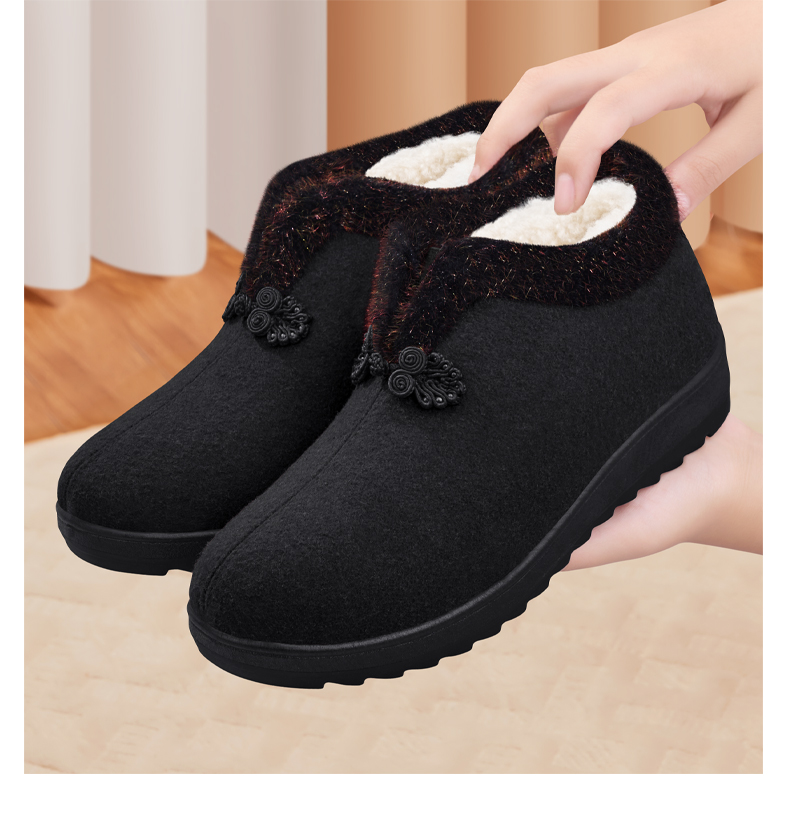 Elderly Women's Winter Cotton Shoes with Fleece Lining, New Soft-Soled Warm Shoes for Old Ladies, Old Beijing Cloth Shoes, Wool Autumn and Winter Grandma Cotton Boots
