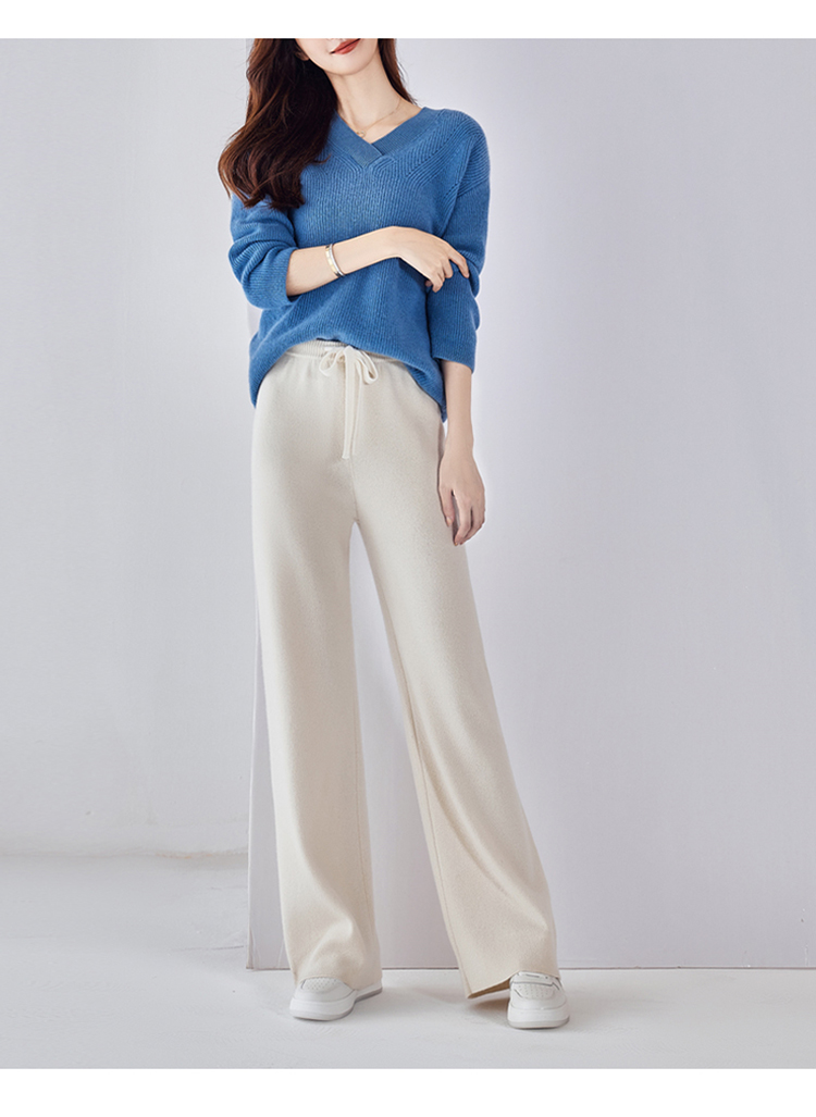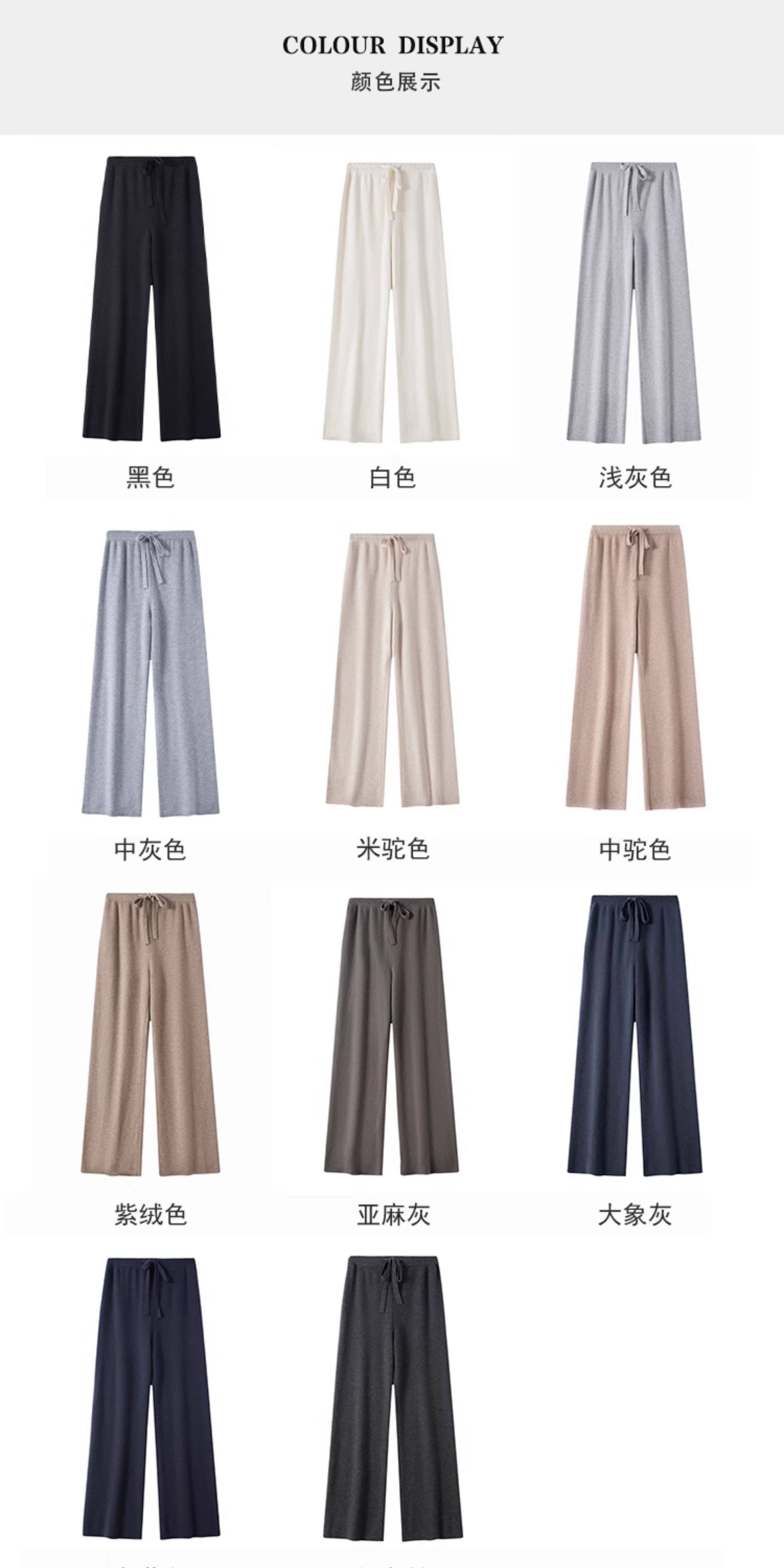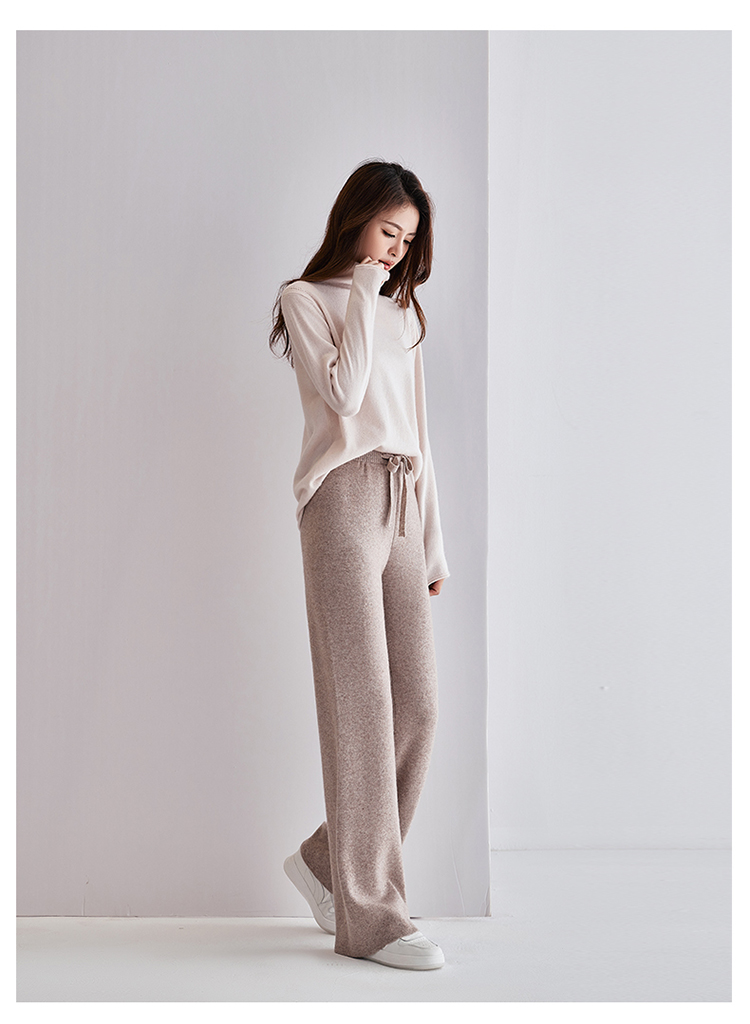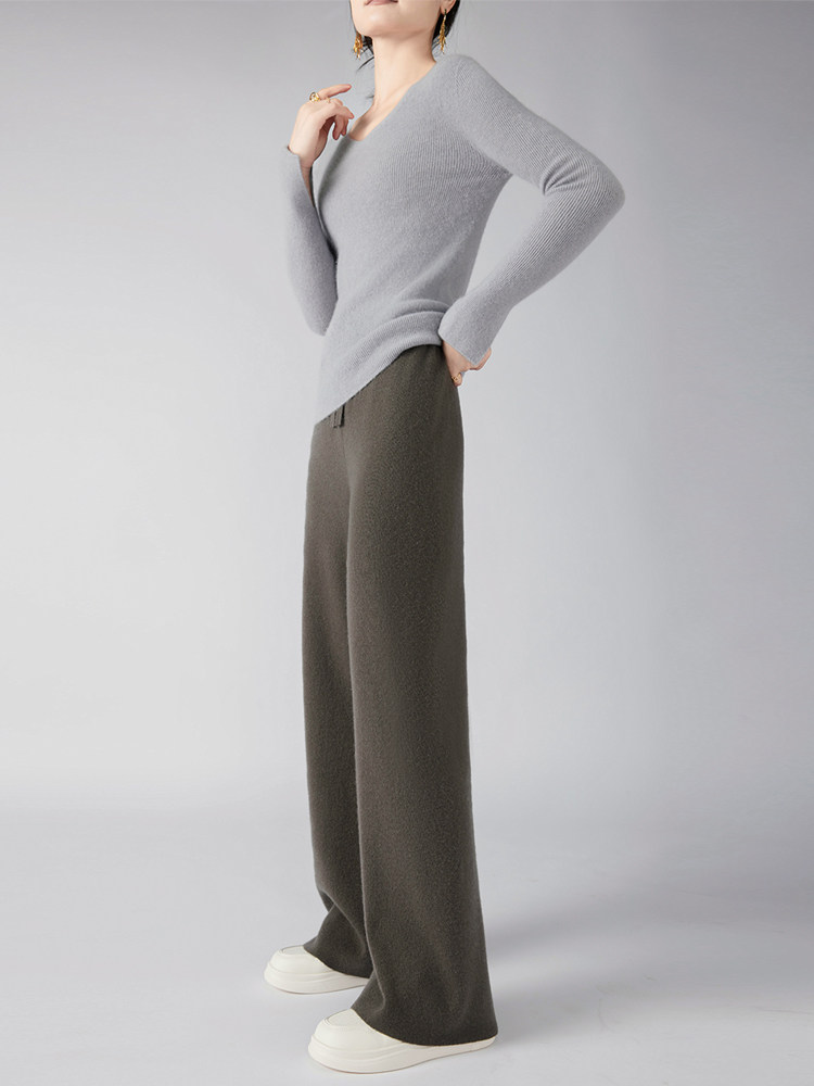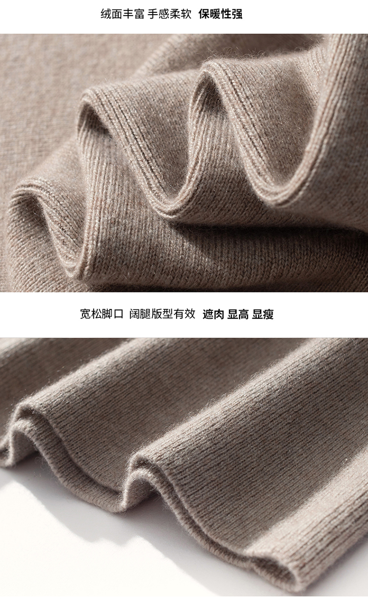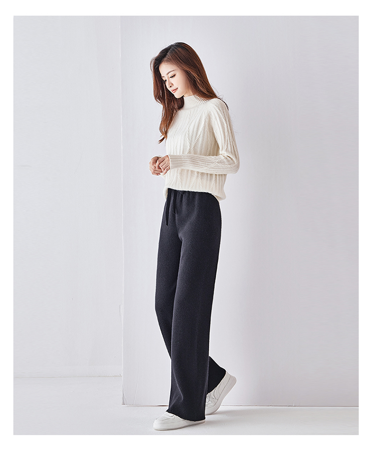 Cashmere Wide-Leg Pants for Women, Autumn and Winter, High-Waisted, Drapey, Slimming, Casual, Loose, Straight-Leg, Wool Knit, Floor-Length Pants for Outerwear