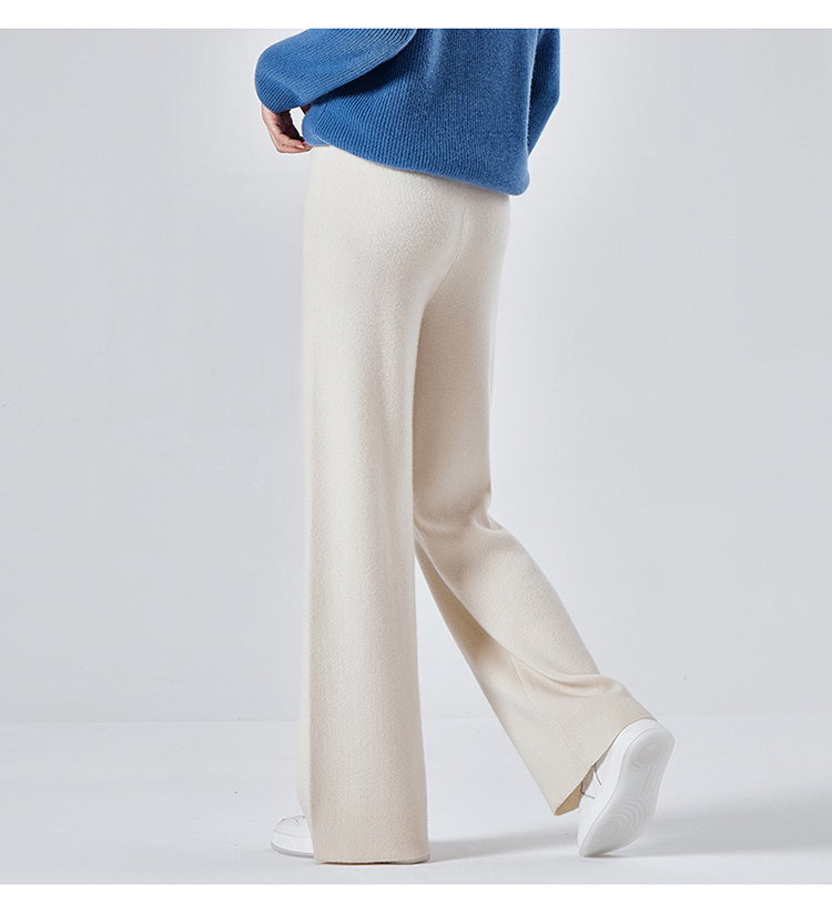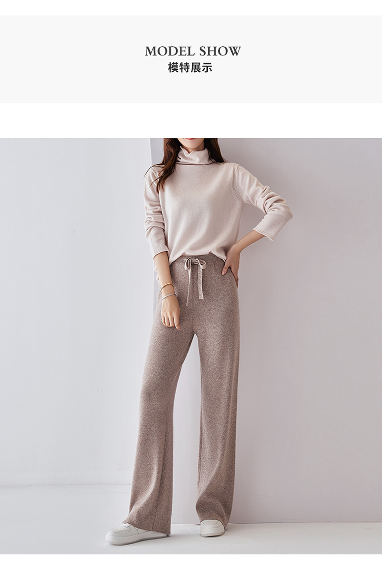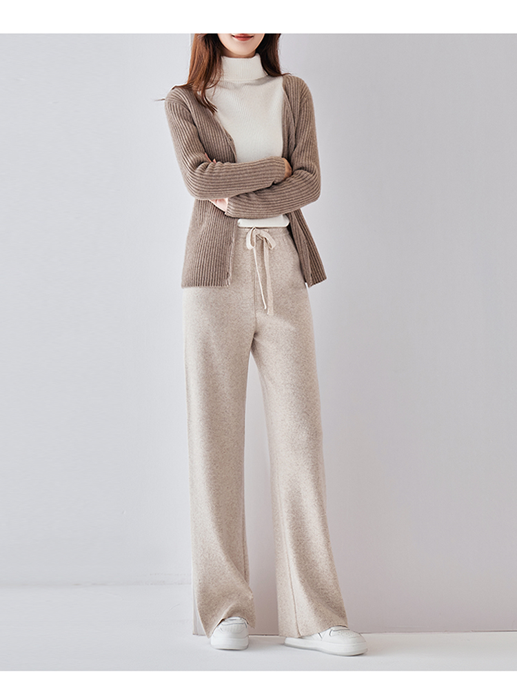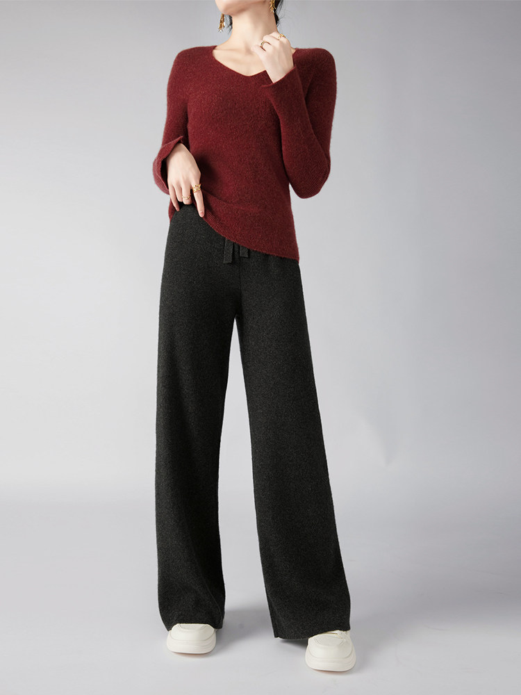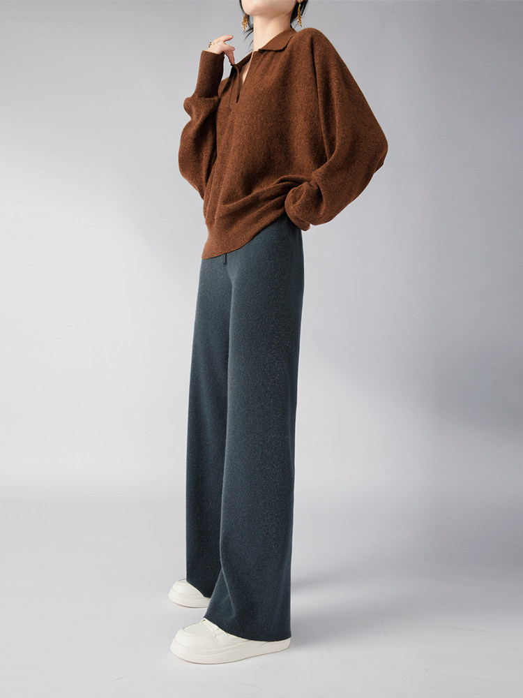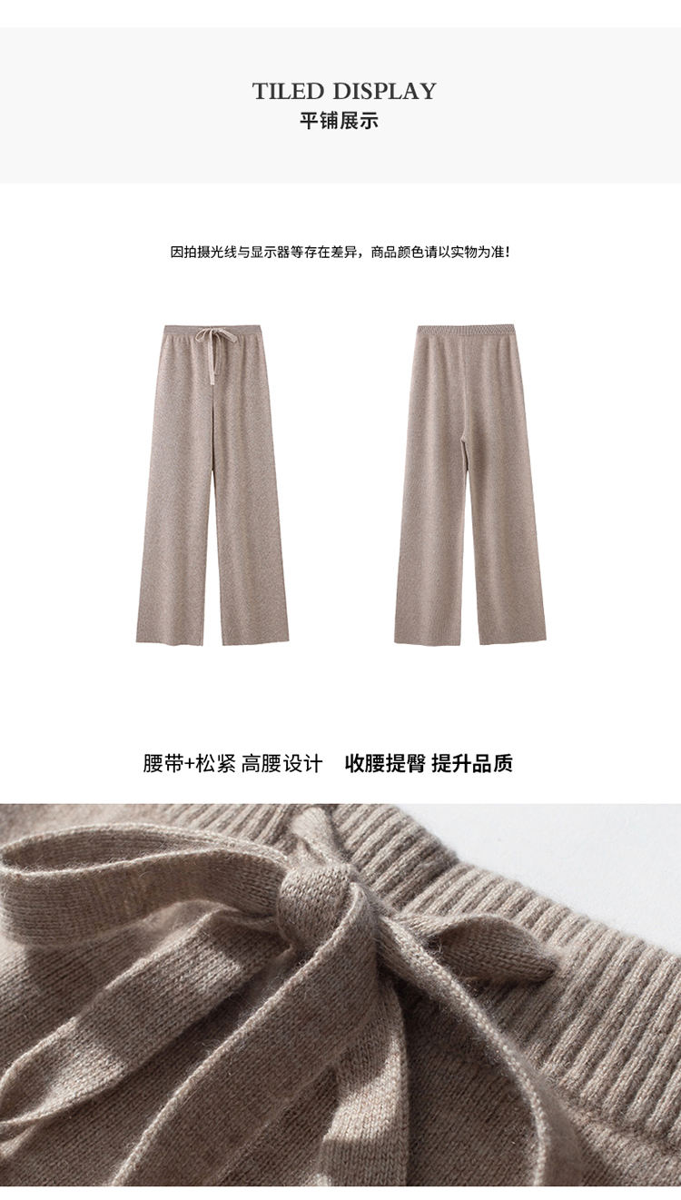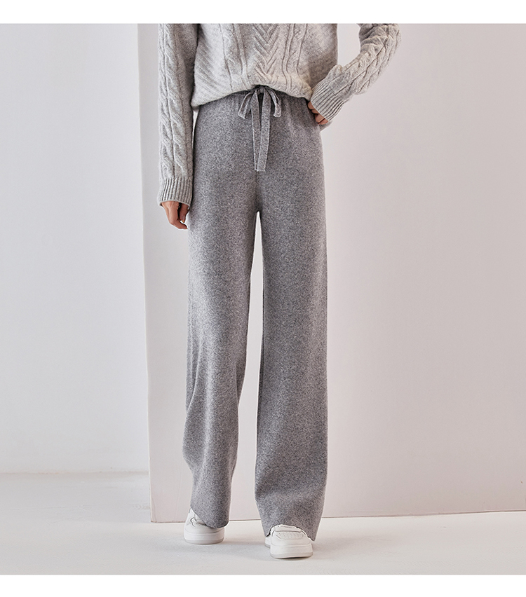Cashmere Wide-Leg Pants for Women, Autumn and Winter, High-Waisted, Drapey, Slimming, Casual, Loose, Straight-Leg, Wool Knit, Floor-Length Pants for Outerwear