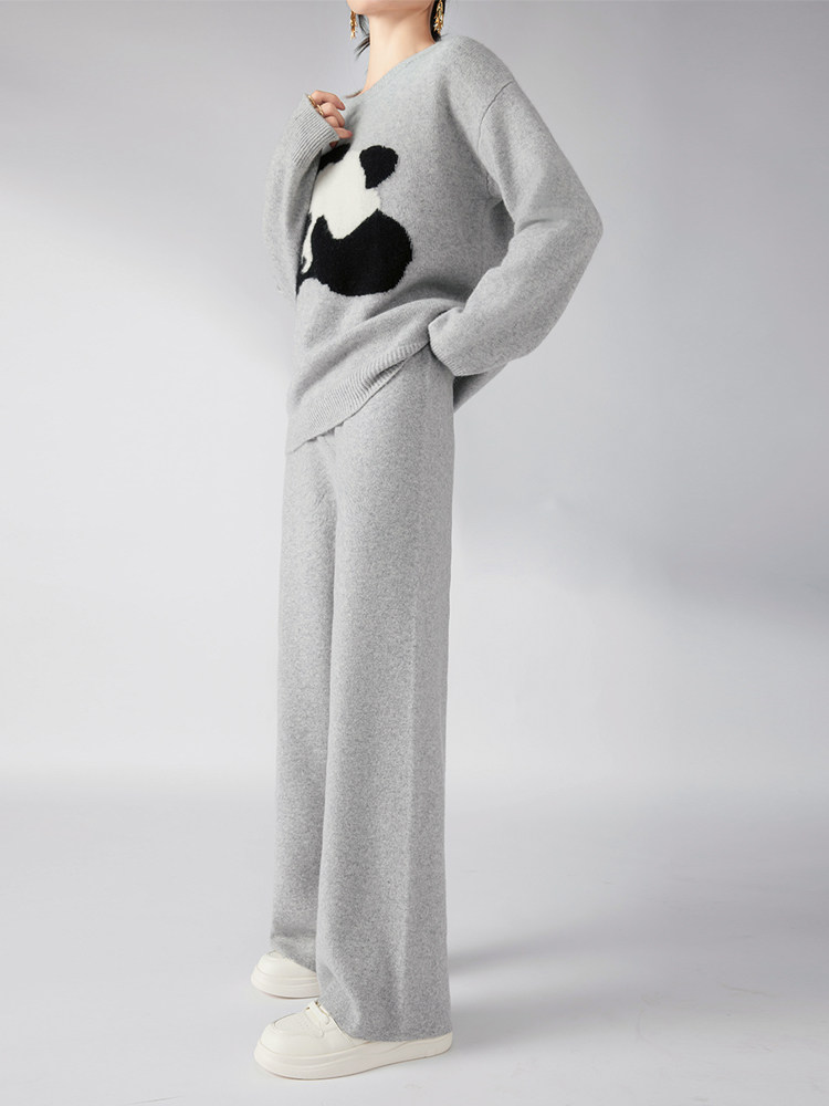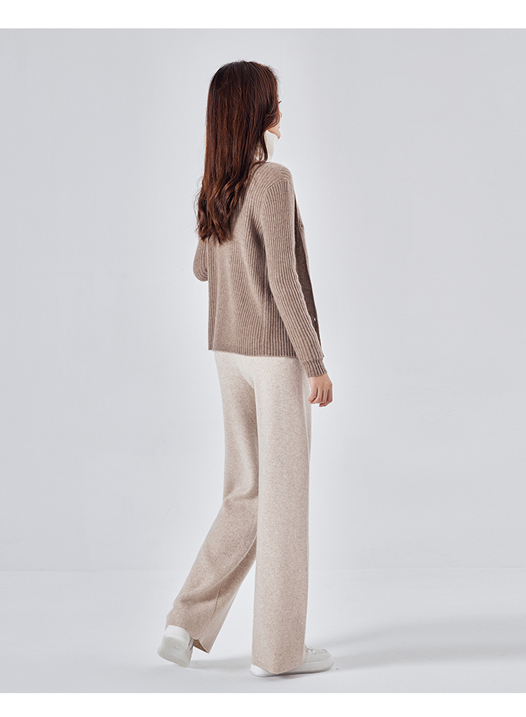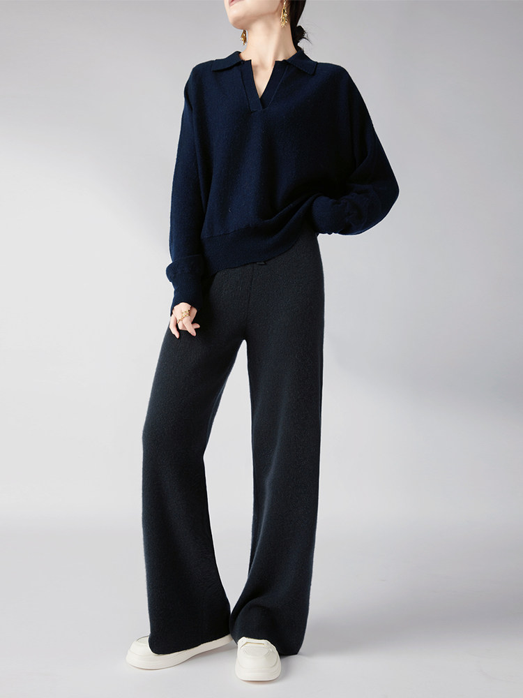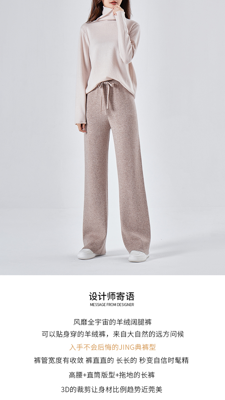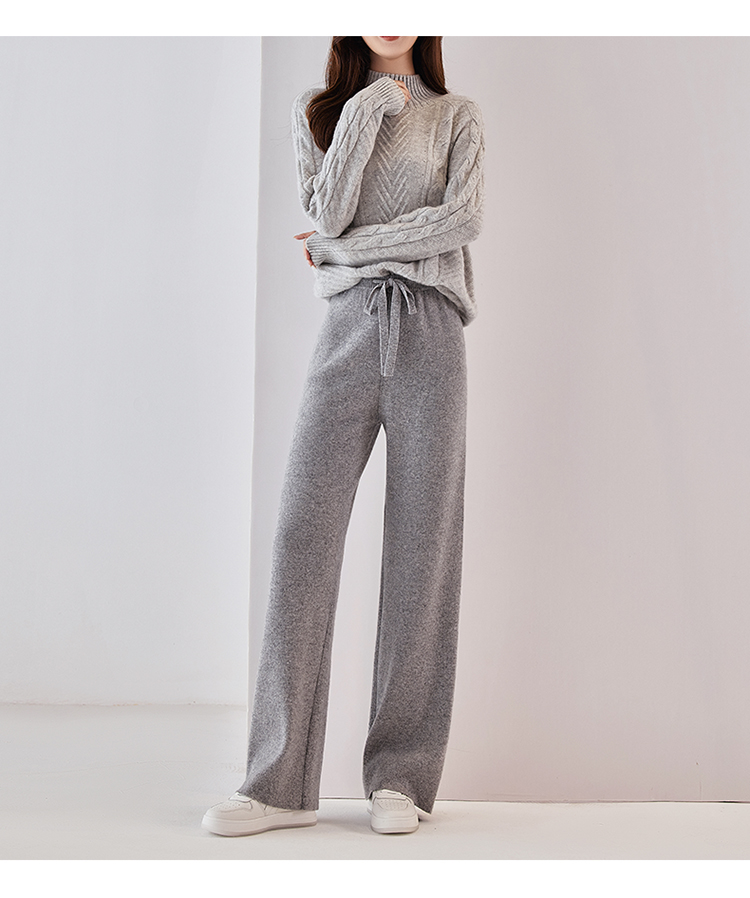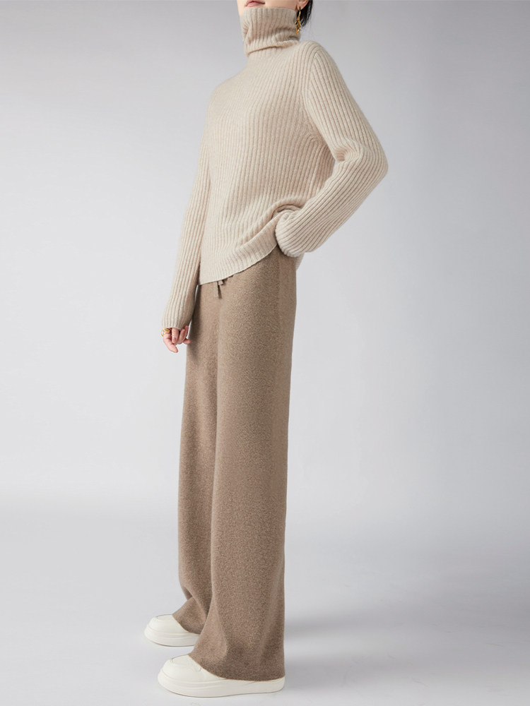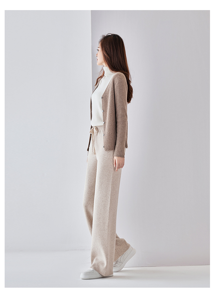 Cashmere Wide-Leg Pants for Women, Autumn and Winter, High-Waisted, Drapey, Slimming, Casual, Loose, Straight-Leg, Wool Knit, Floor-Length Pants for Outerwear
