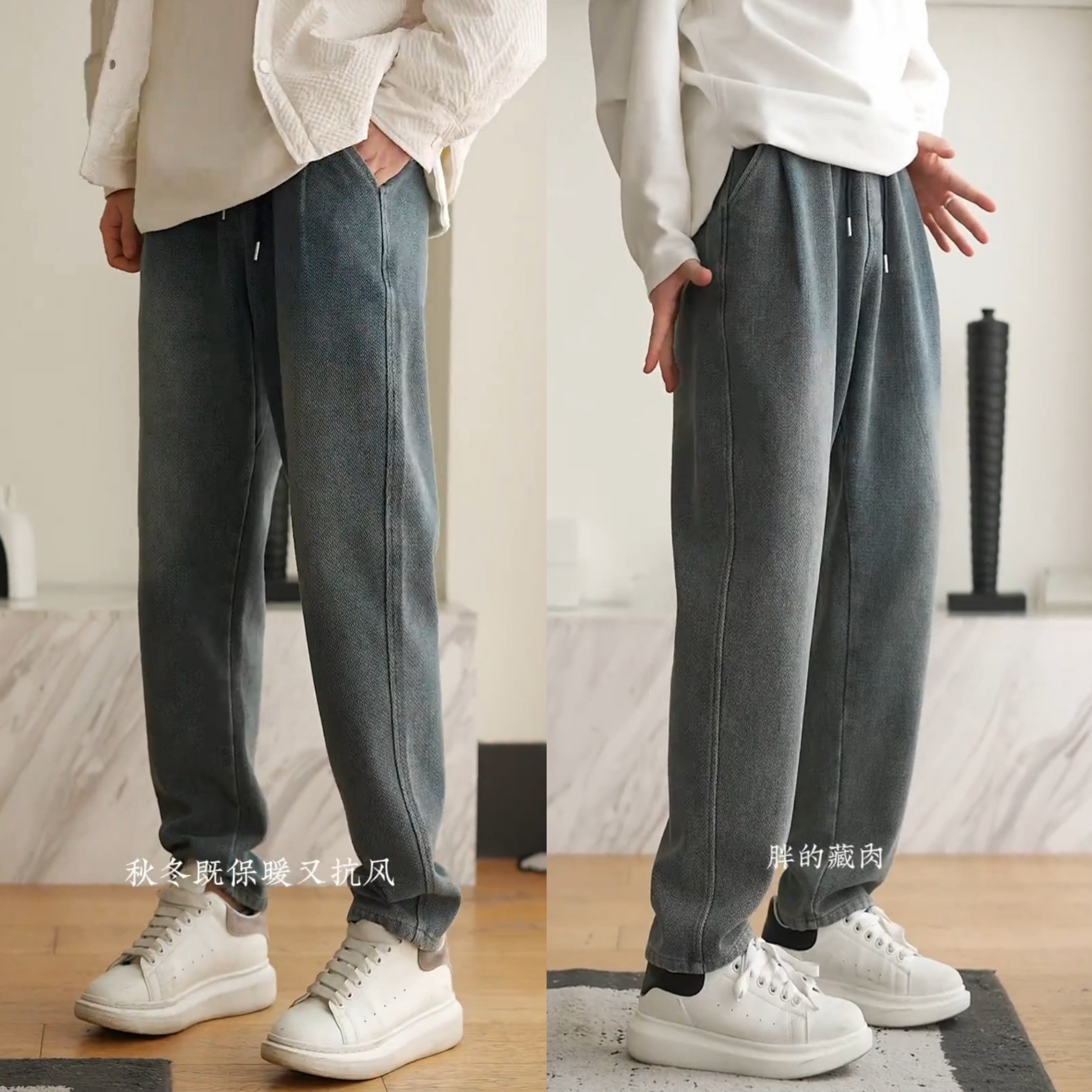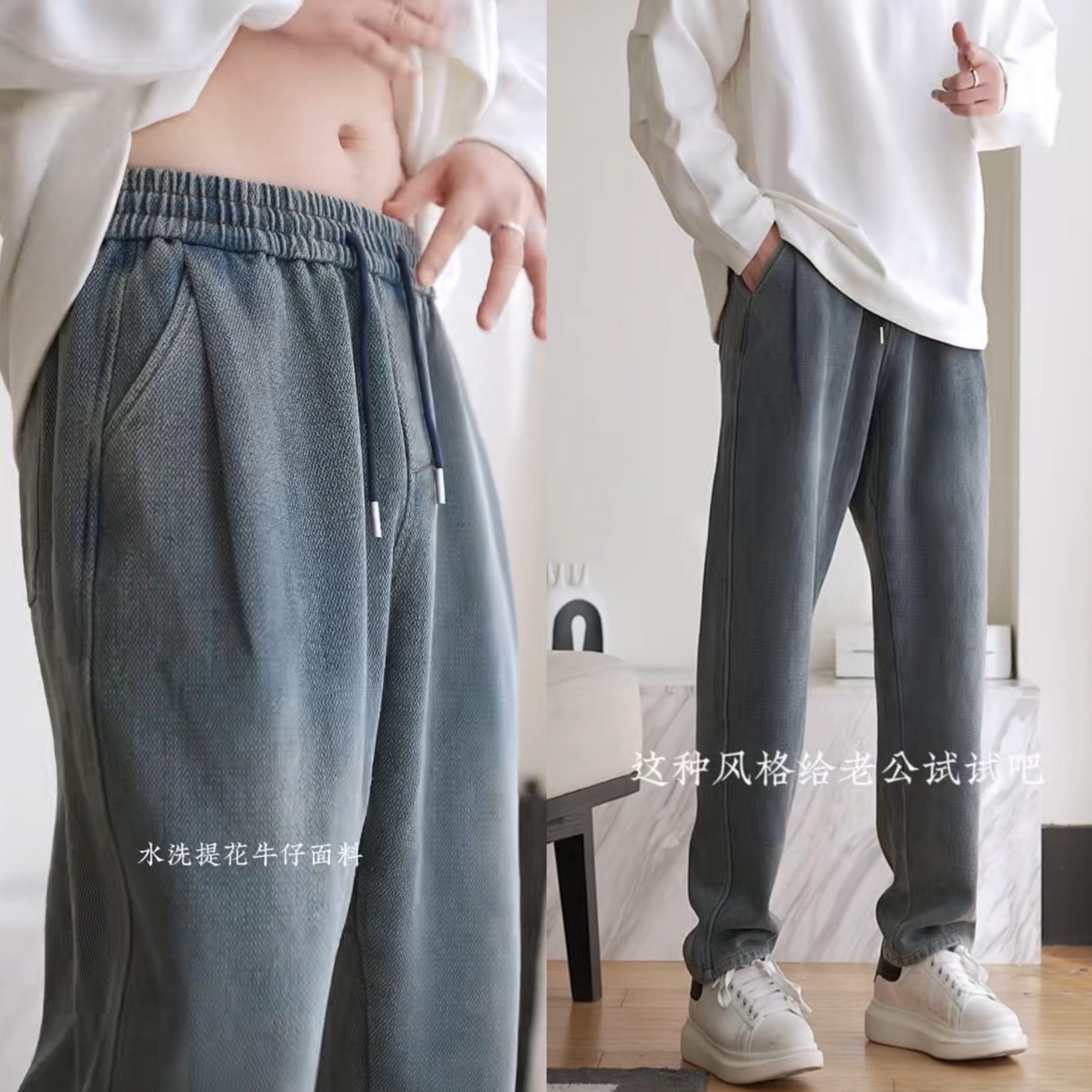 Autumn New Fashion Versatile Men's Jeans Trendy Retro Drawstring Simple Couple Style Casual Tapered Trousers