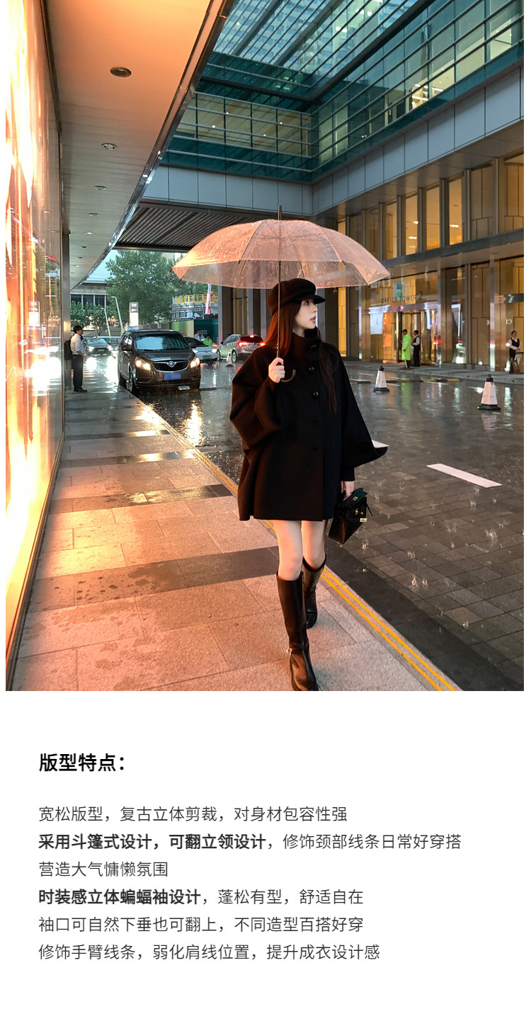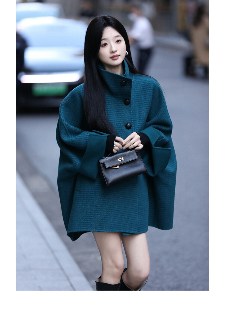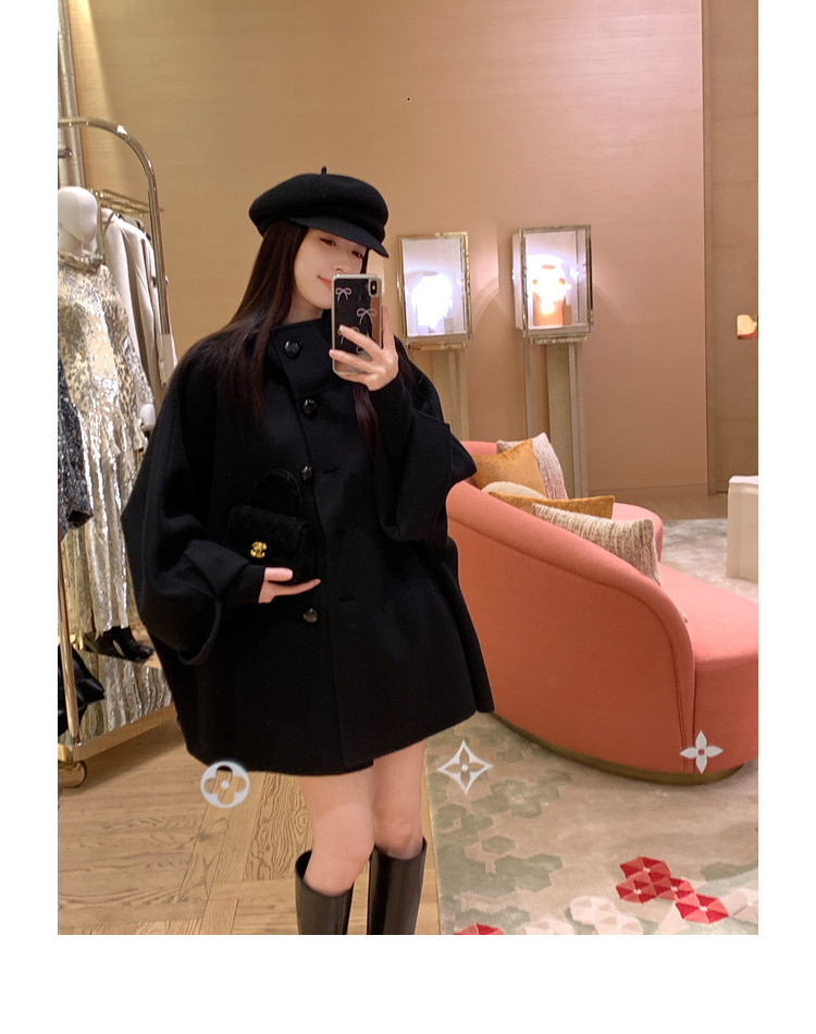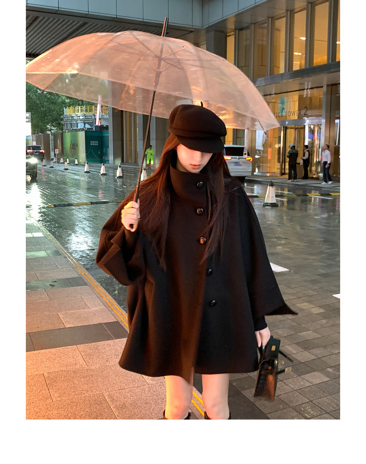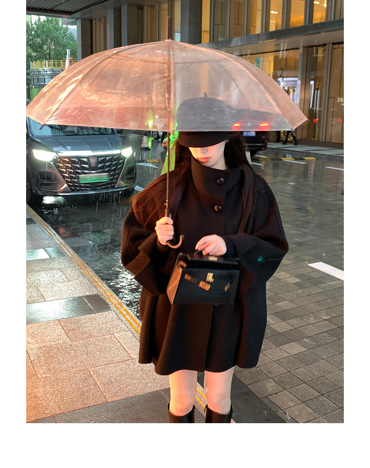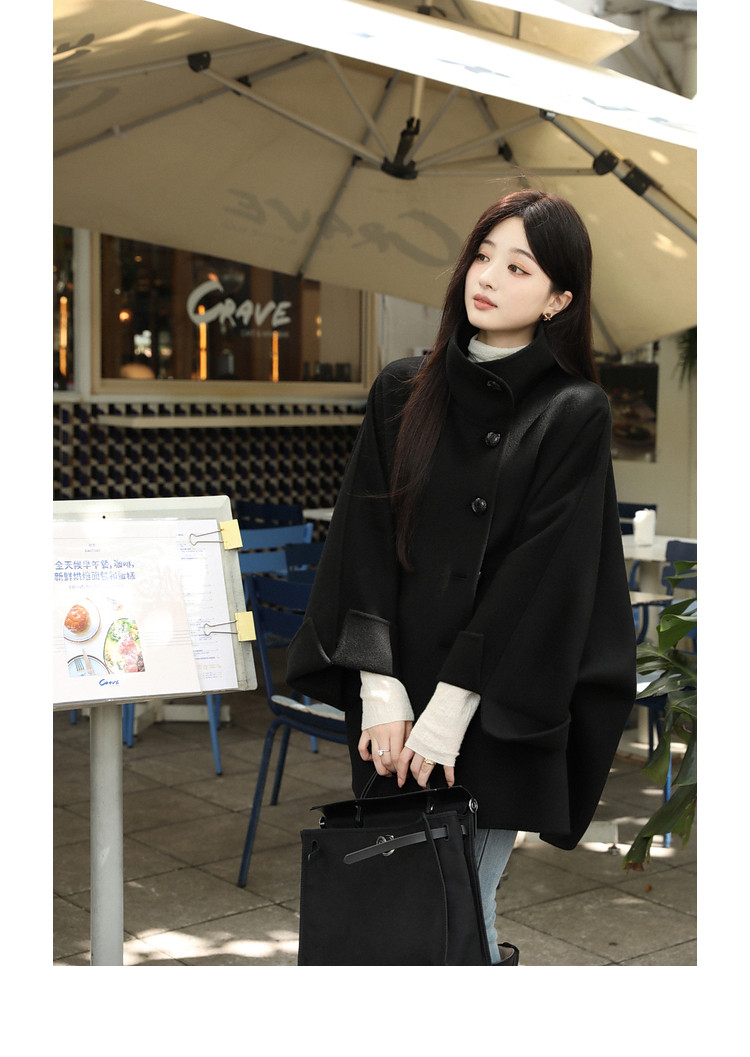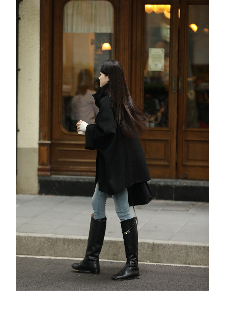 Xia Shiwen All-Wool Double-Sided Woolen Cape-Style Coat for Women, Winter Fashion, Convertible Stand-Up Collar, Versatile Black Coat