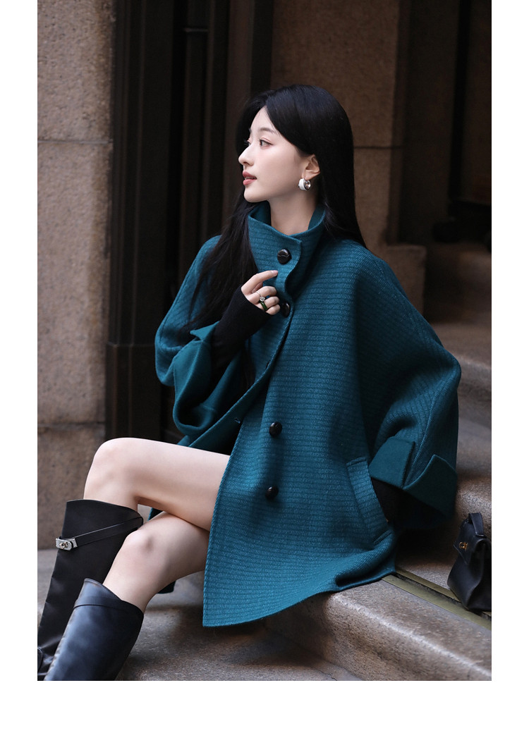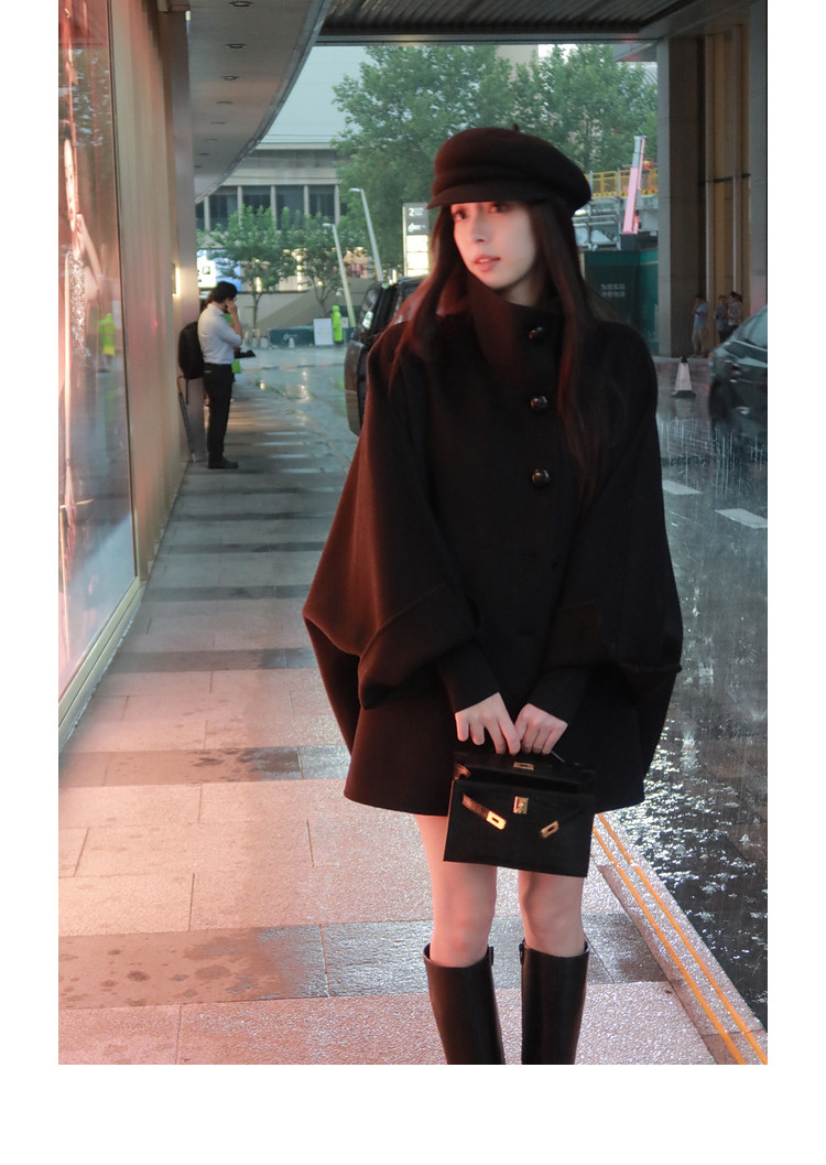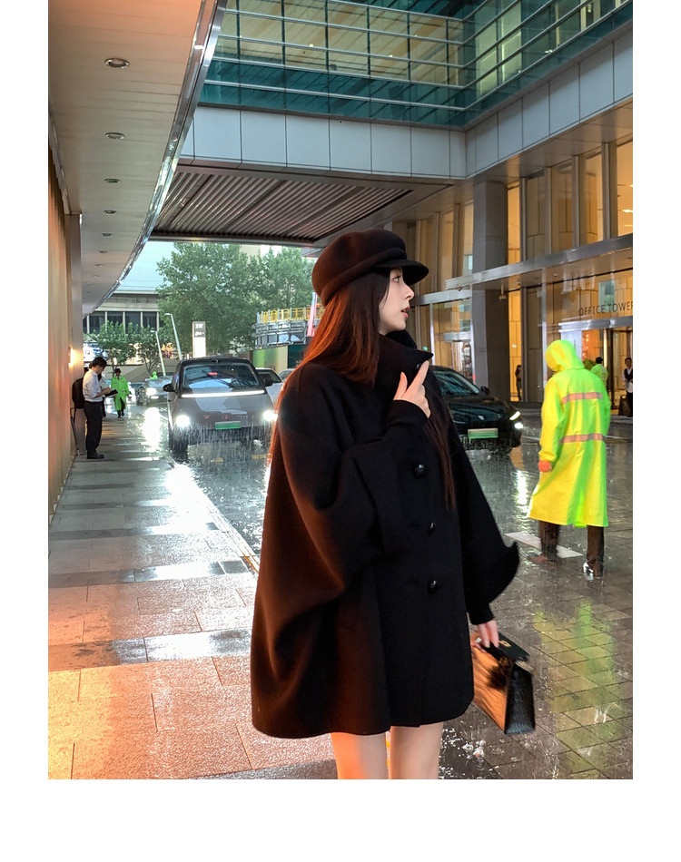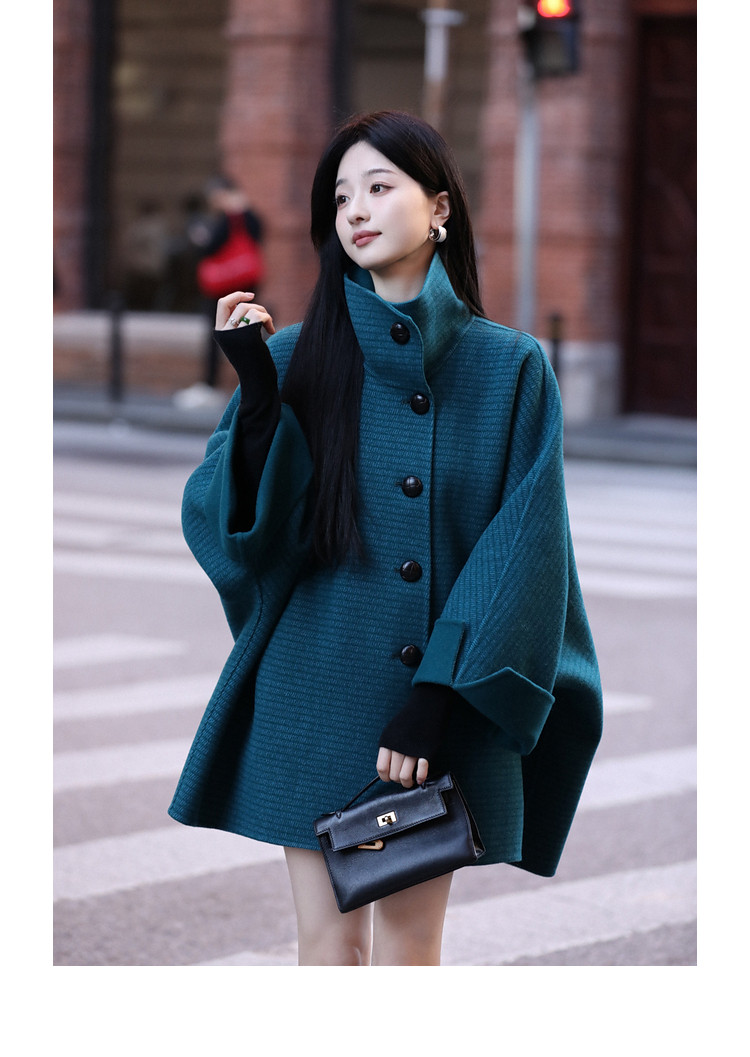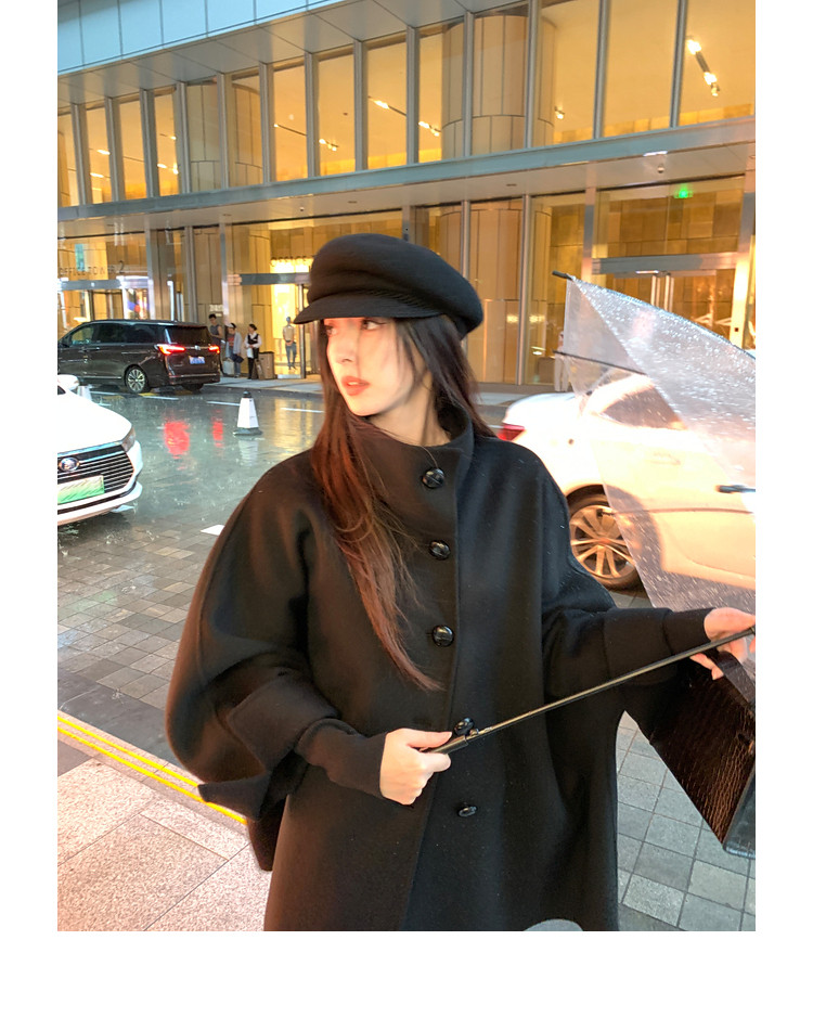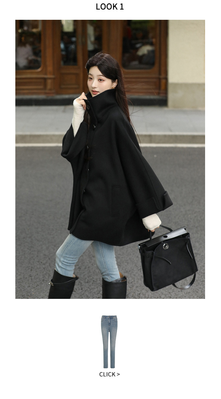 Xia Shiwen All-Wool Double-Sided Woolen Cape-Style Coat for Women, Winter Fashion, Convertible Stand-Up Collar, Versatile Black Coat