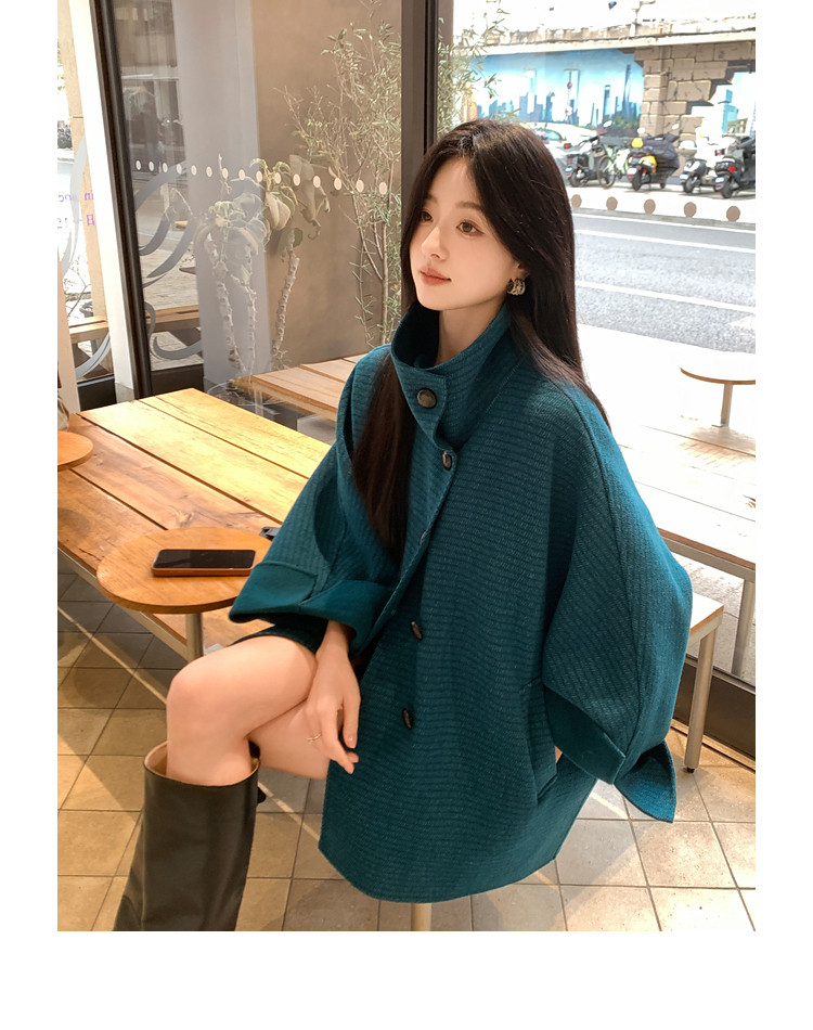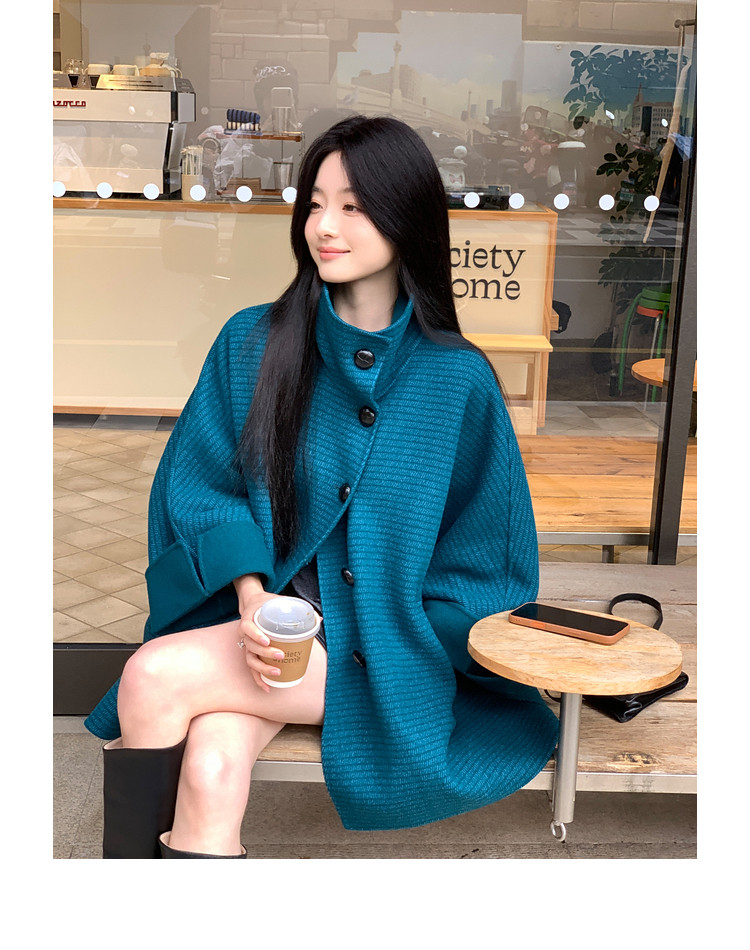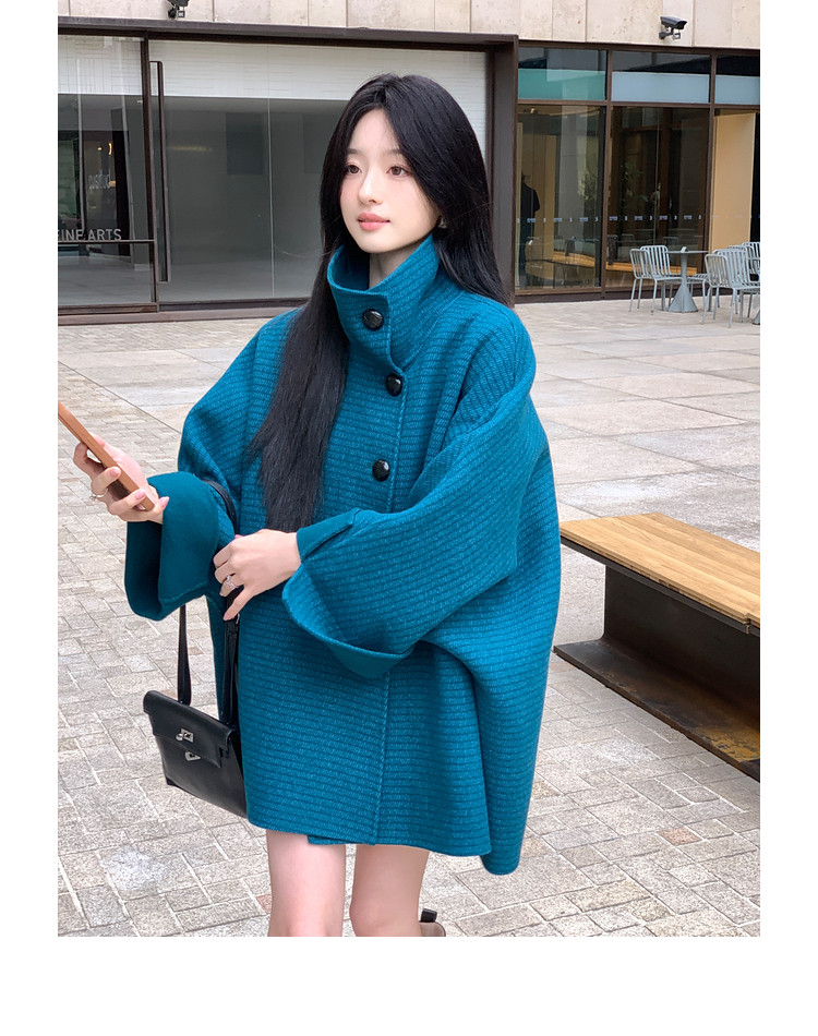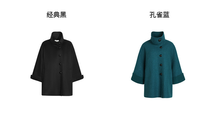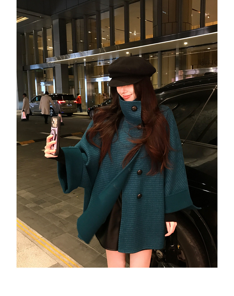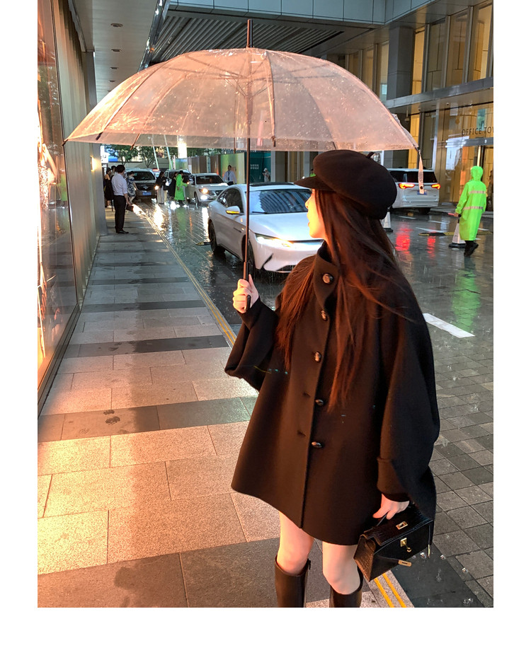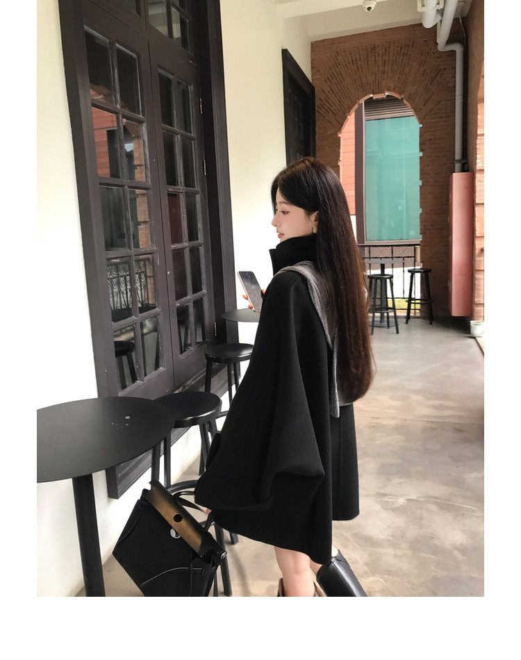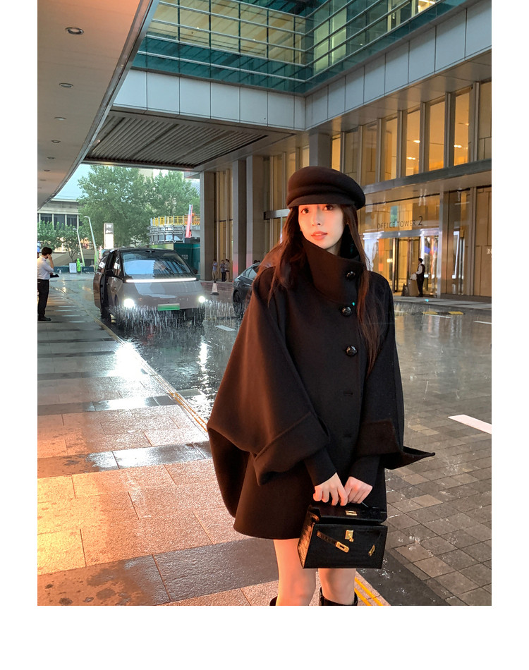 Xia Shiwen All-Wool Double-Sided Woolen Cape-Style Coat for Women, Winter Fashion, Convertible Stand-Up Collar, Versatile Black Coat