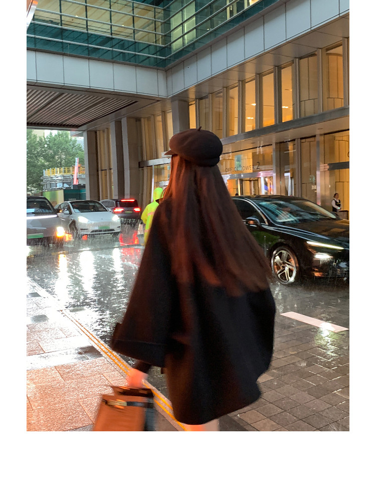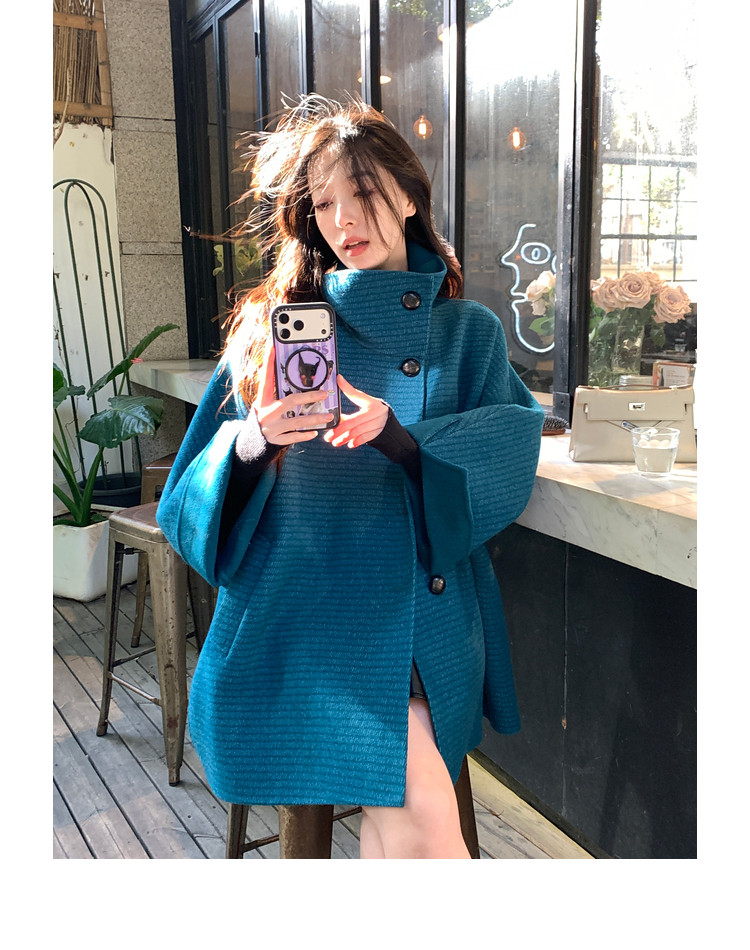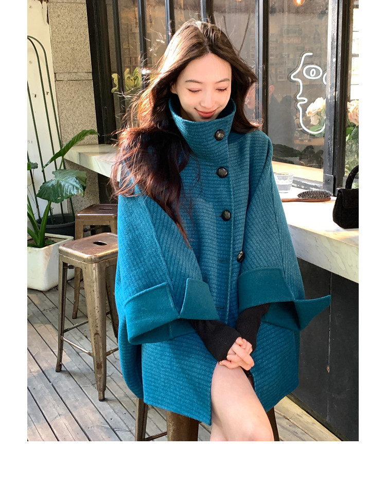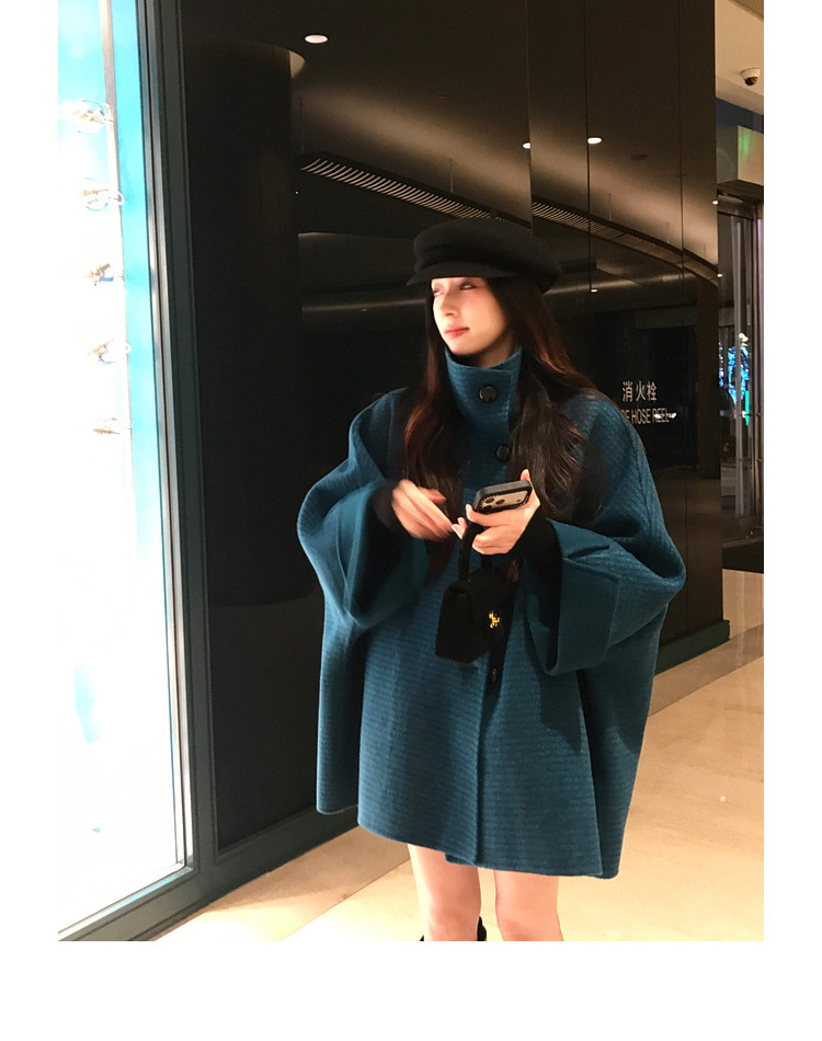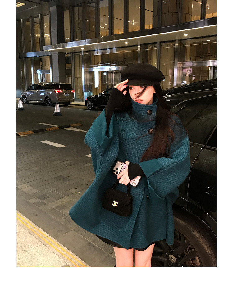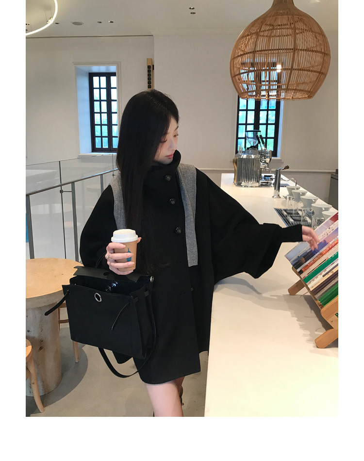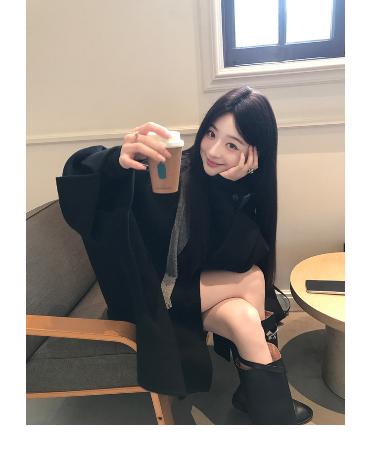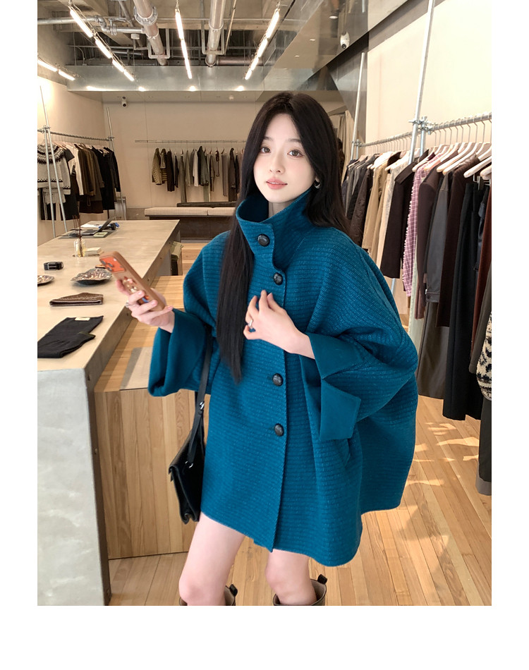 Xia Shiwen All-Wool Double-Sided Woolen Cape-Style Coat for Women, Winter Fashion, Convertible Stand-Up Collar, Versatile Black Coat