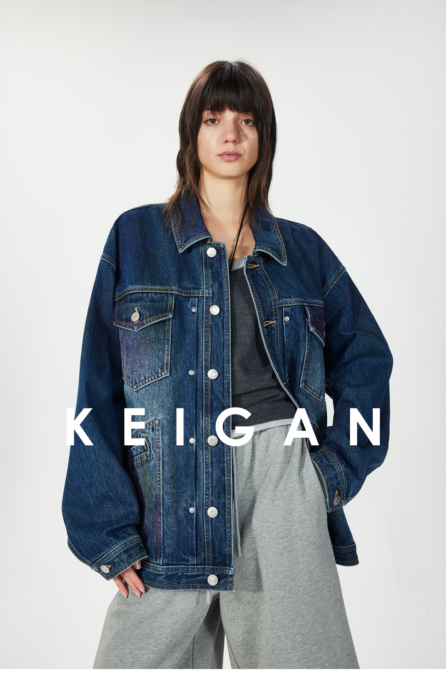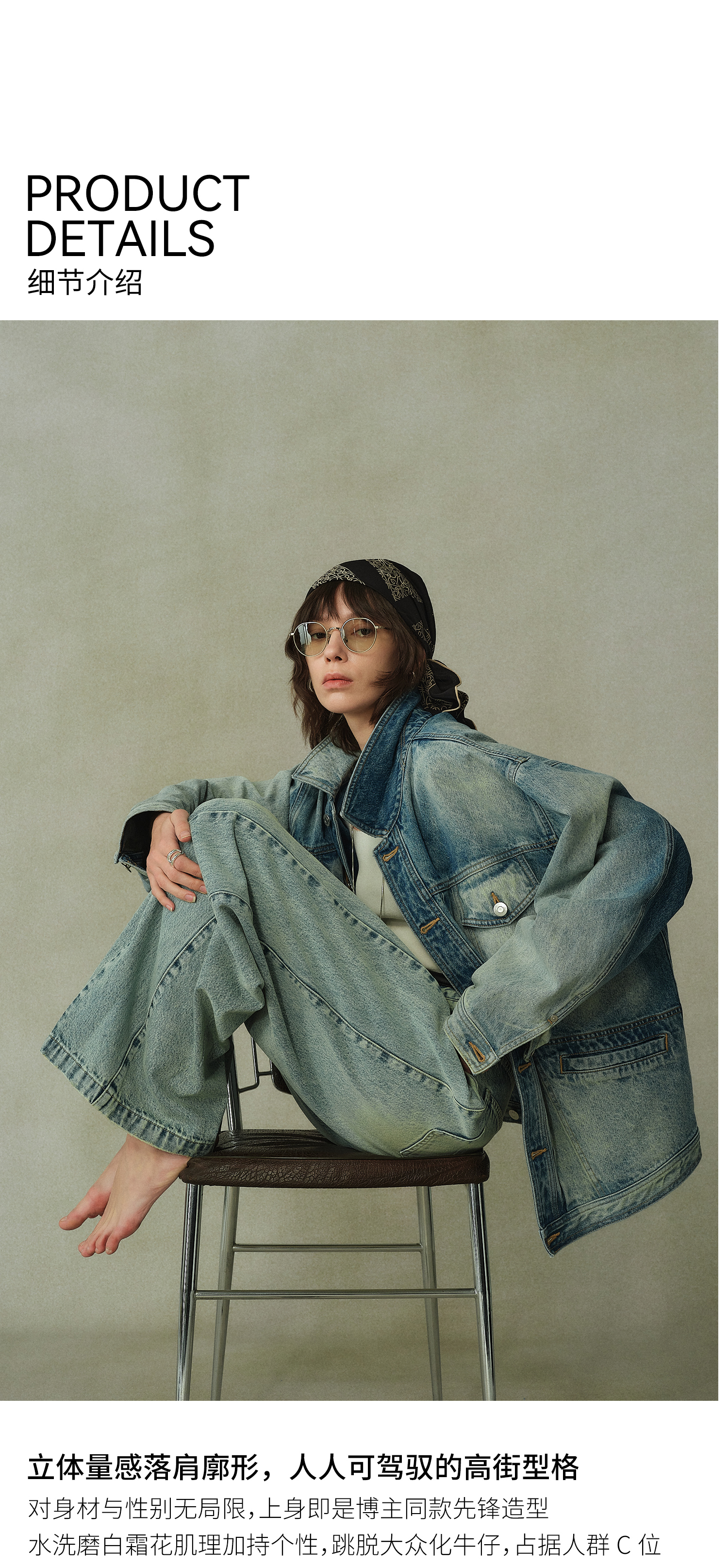 Open Store/Reputation Upgrade: European Imported Heavyweight Stone-Washed Rainbow Wash Process Loose-Fitting Denim Jacket