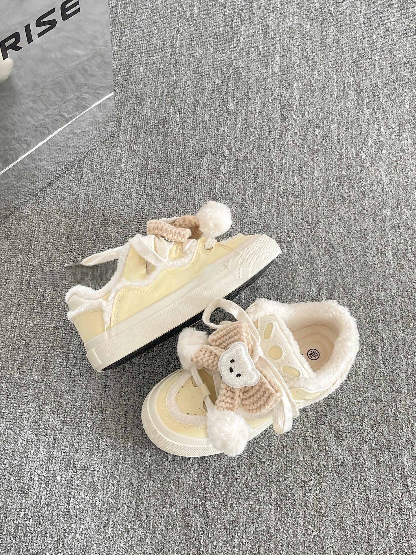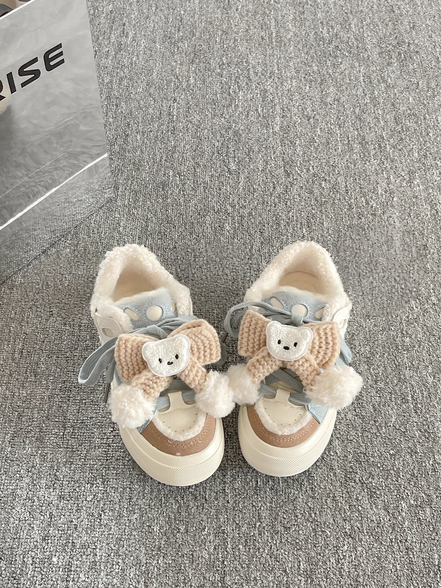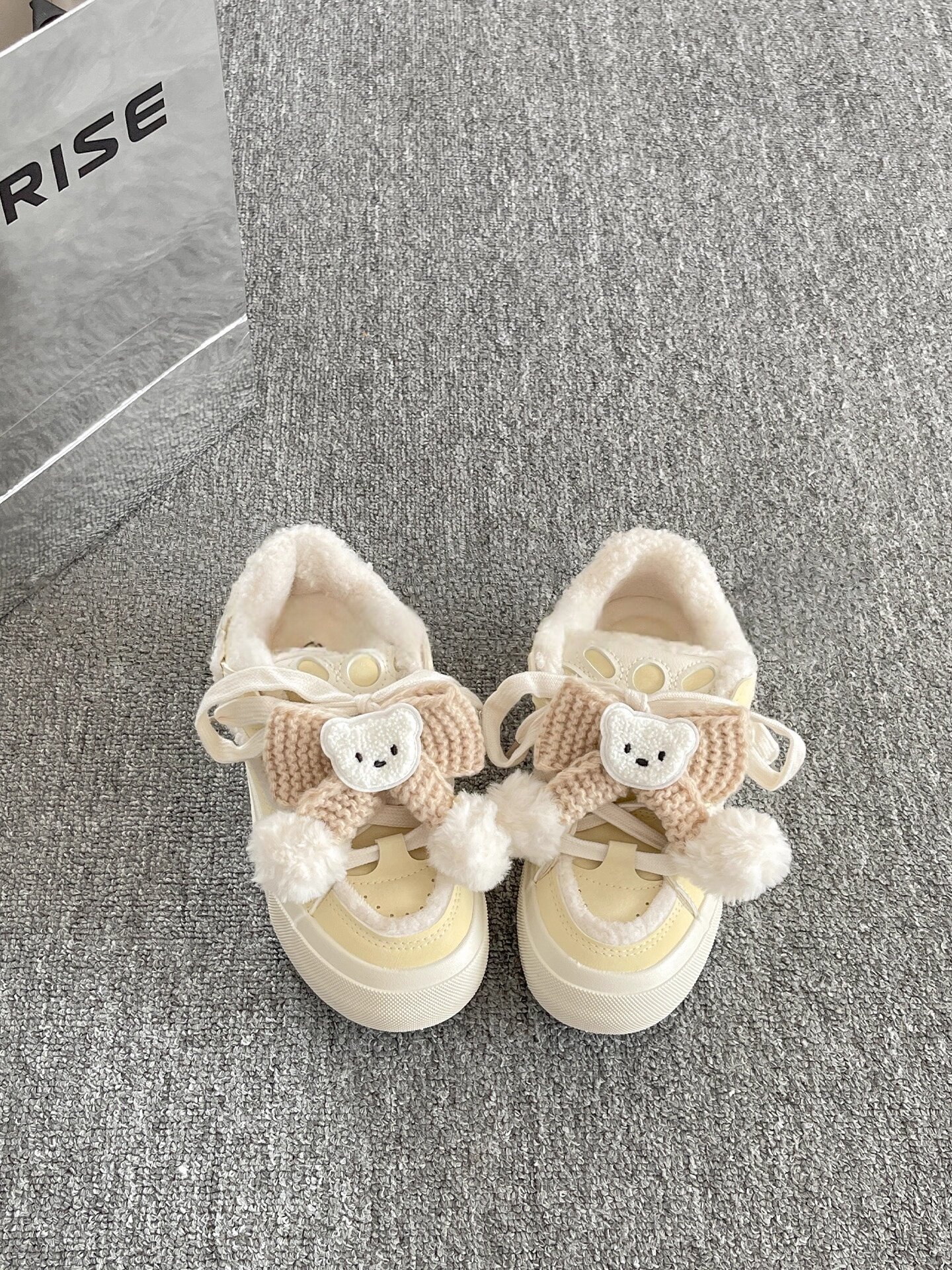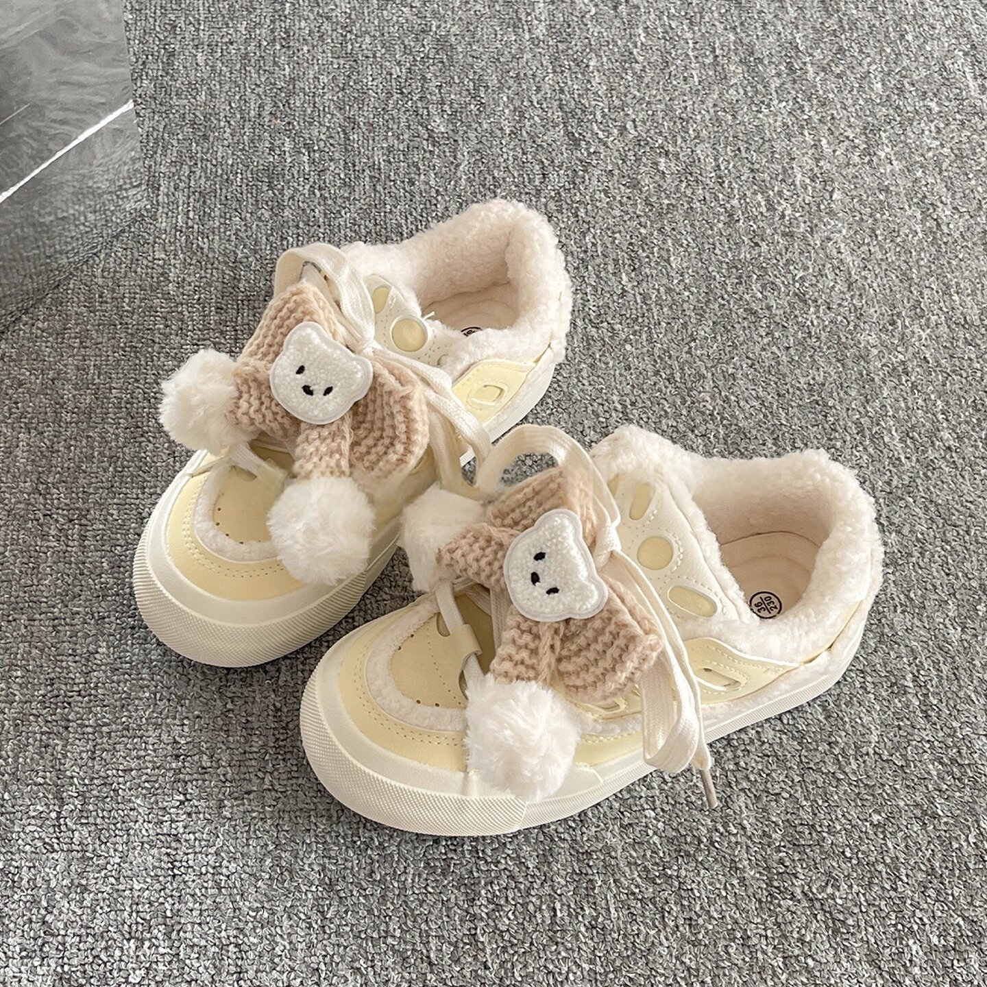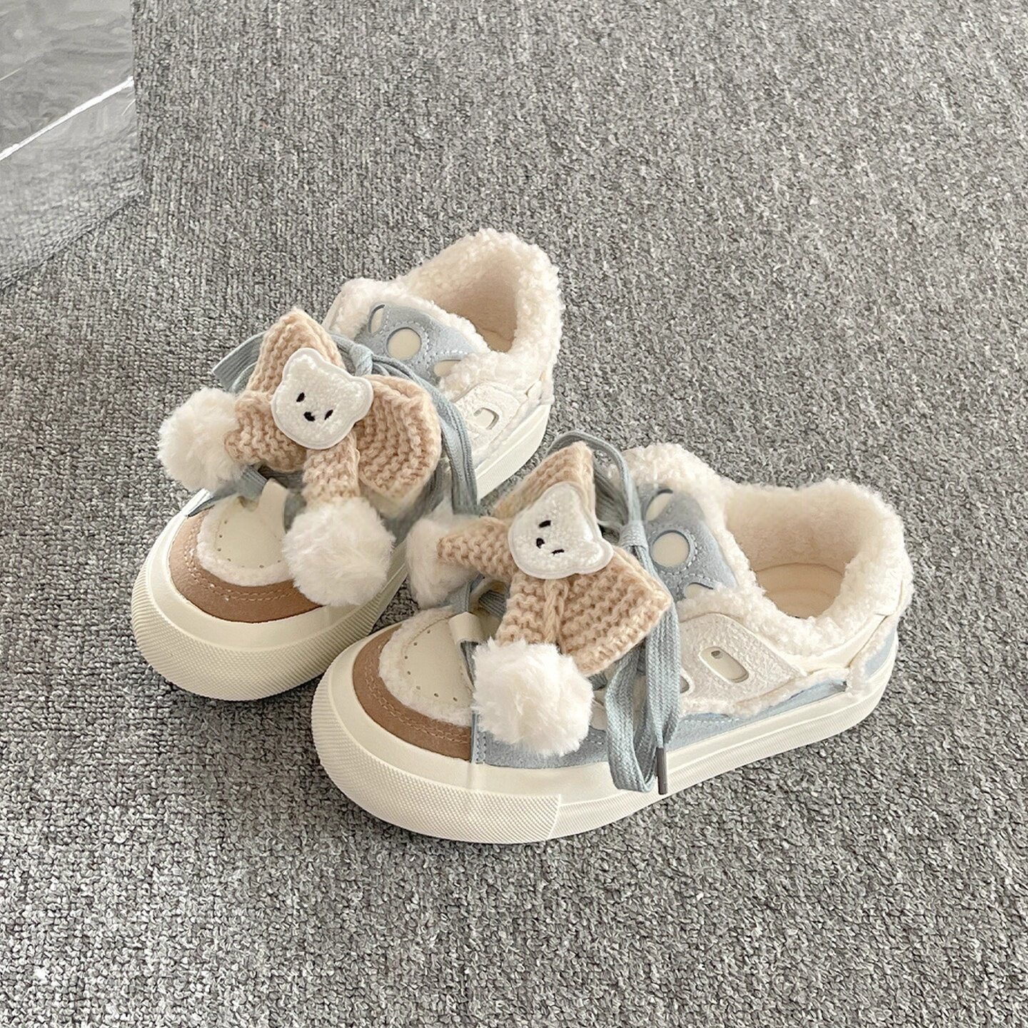 British Dhwa Fleece-Lined Sneakers for Women, Winter 202, Thick-Soled, Versatile Chic Shoes, White Shoes, Loafers, Double-Layered Cotton Shoes