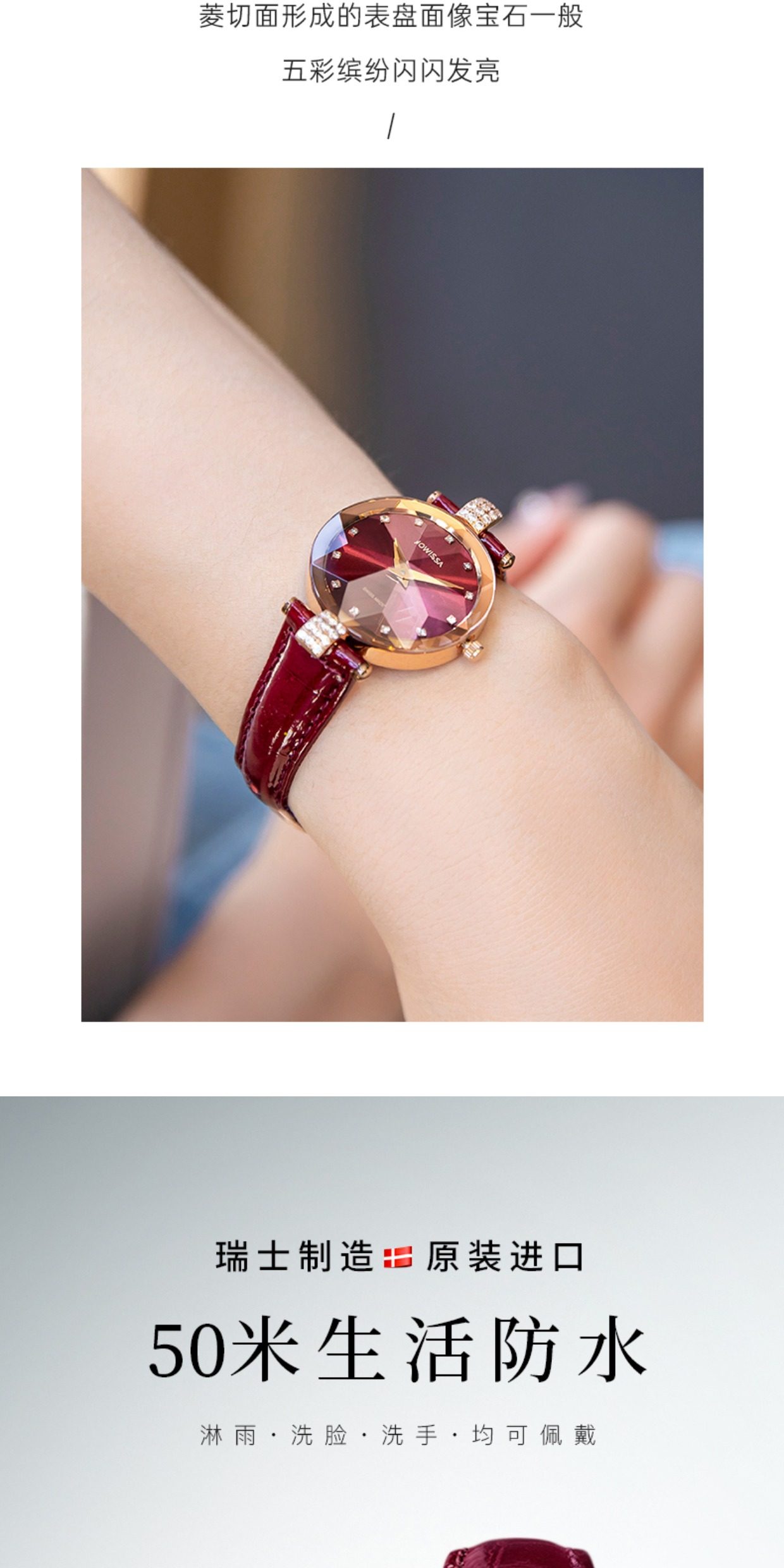Zuoweisha Swiss Women's High-End Luxury Brand Watch 2025 New Red Women's Watch Luxury Thin Strap Women's Fashion Watch