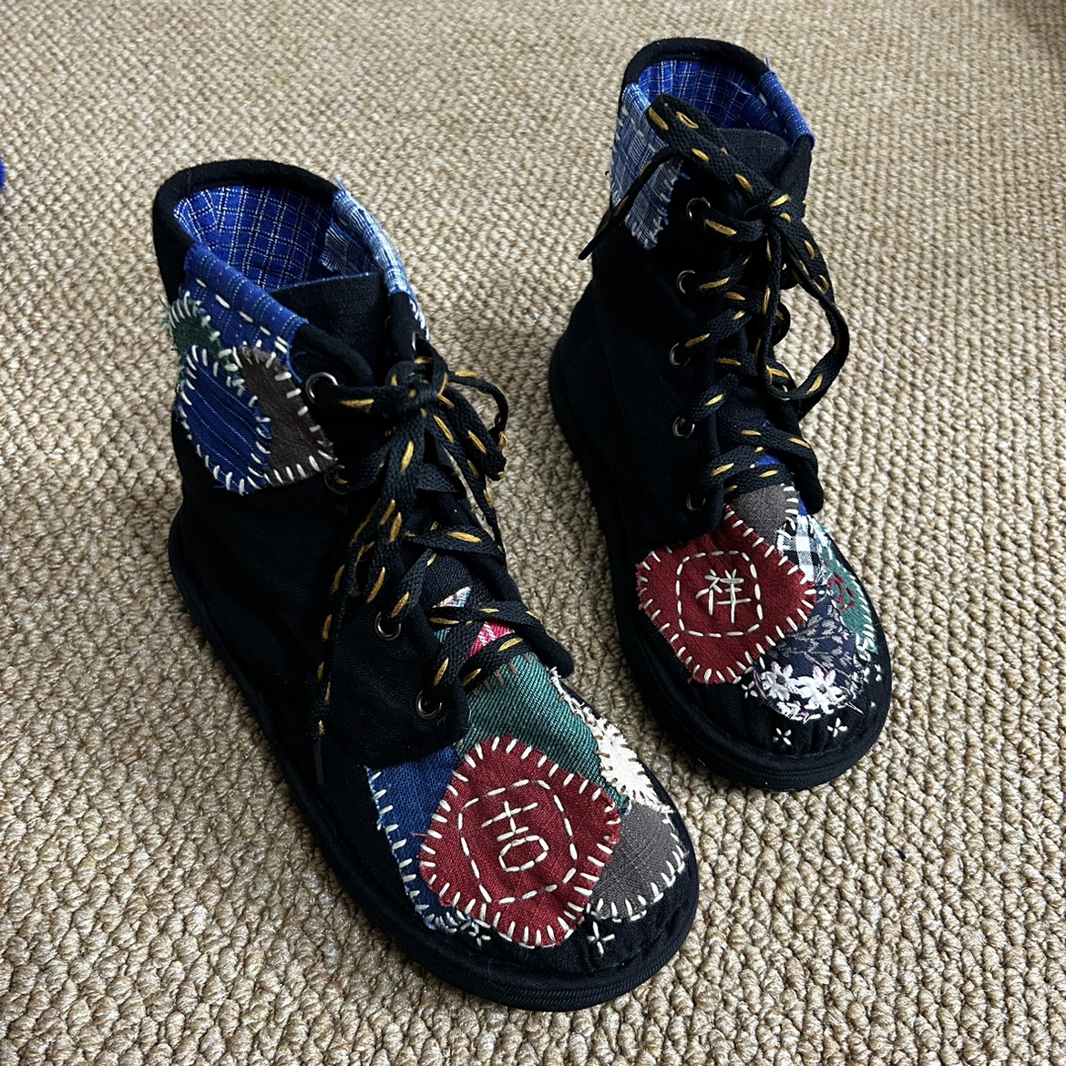 Yuetang Gu Yun [Hundred Cloth Patchwork] High-Top Spring and Autumn Style Handmade Thousand-Layer Sole Cloth Shoes