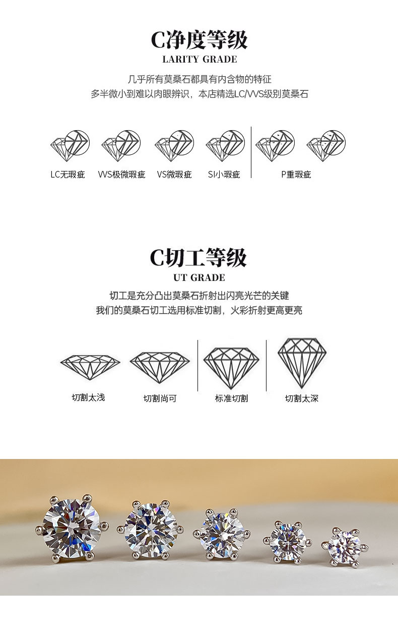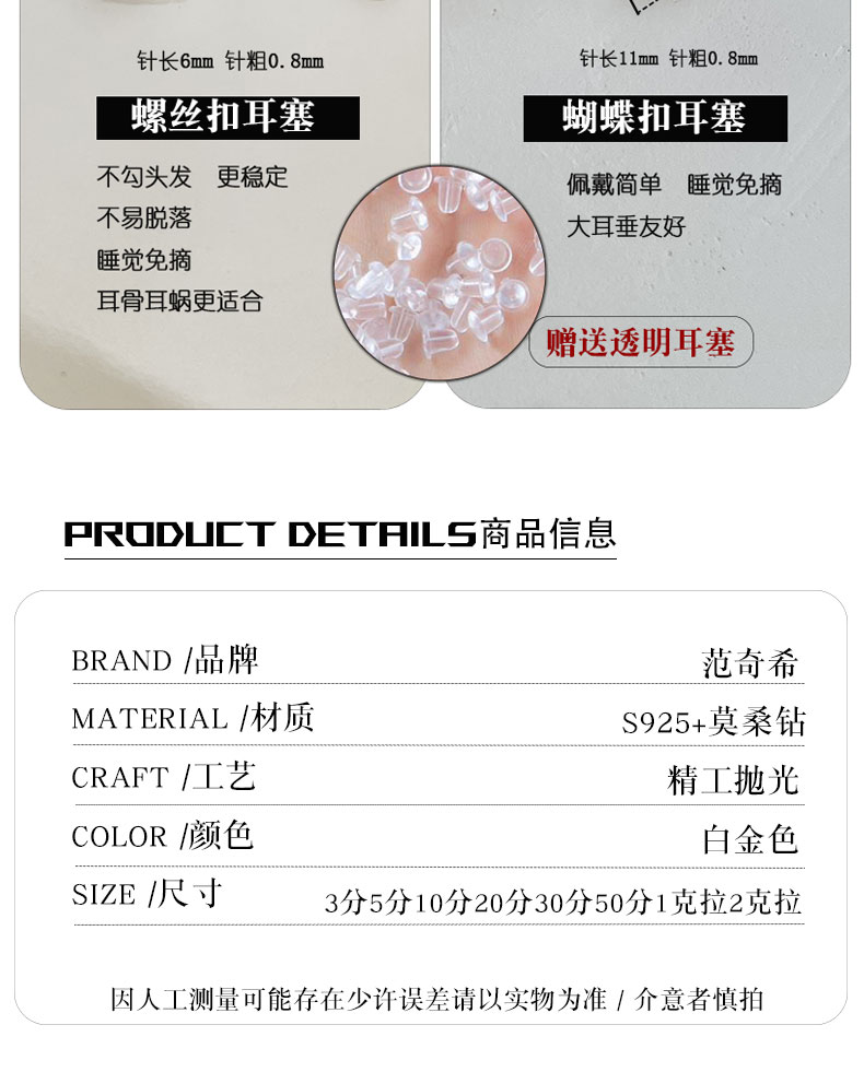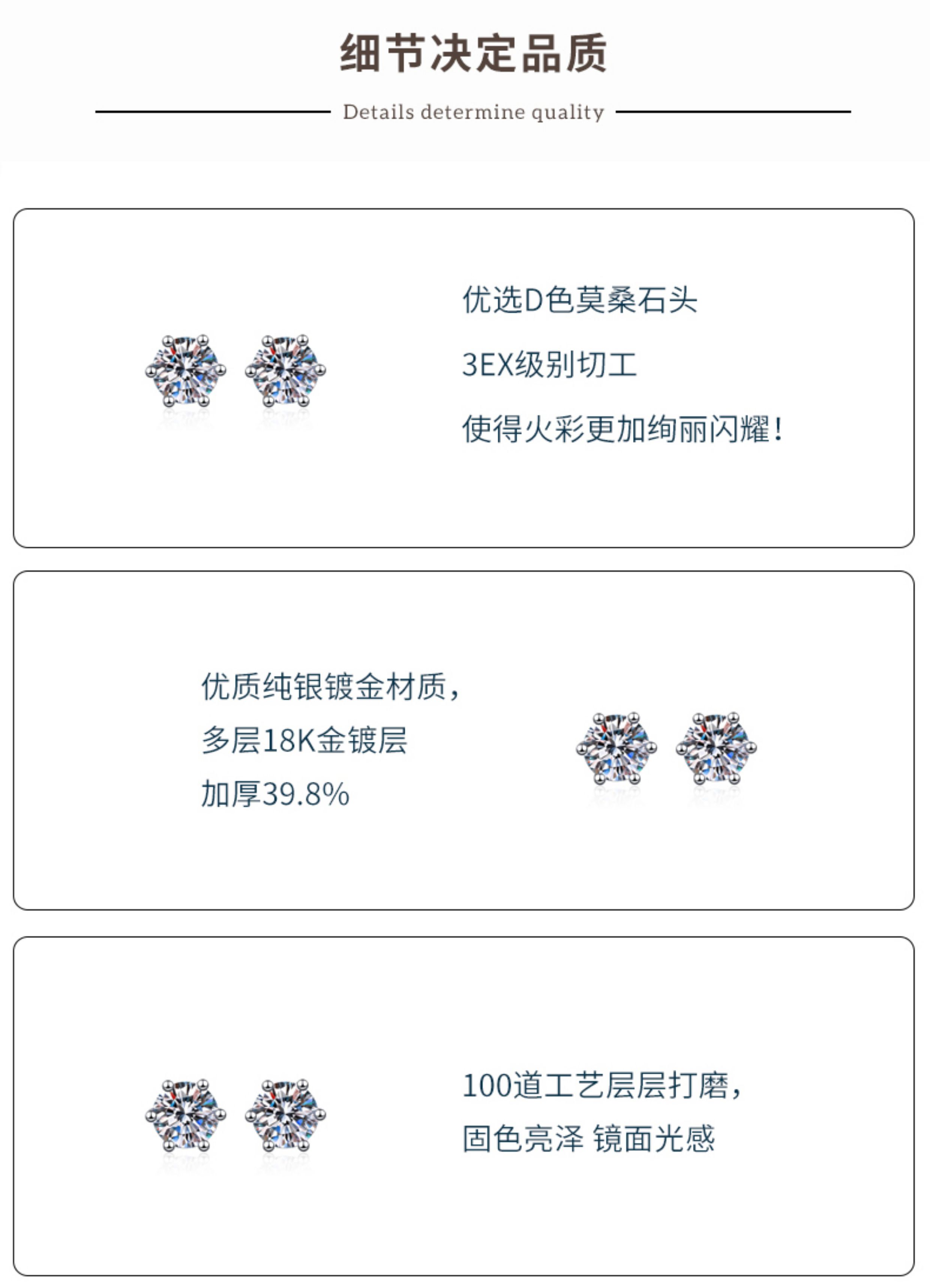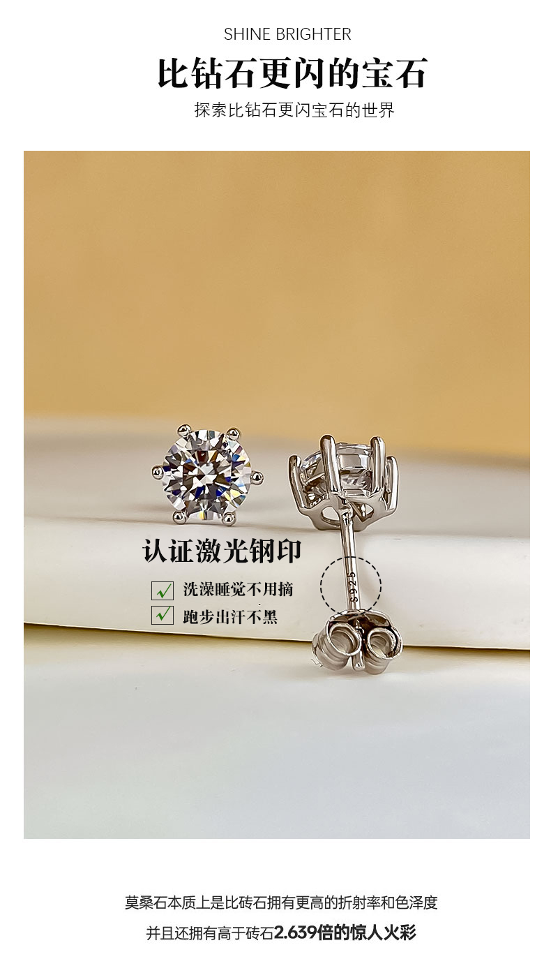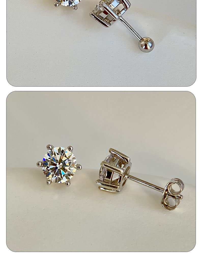 Moissanite Stud Earrings Plated with 18K Gold, Pure Silver Single Diamond Earrings for Men and Women, Ear Bone Studs, Screw-On, Light Luxury, High-End Earrings