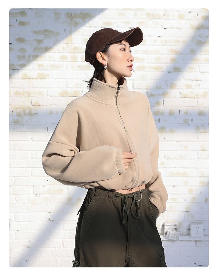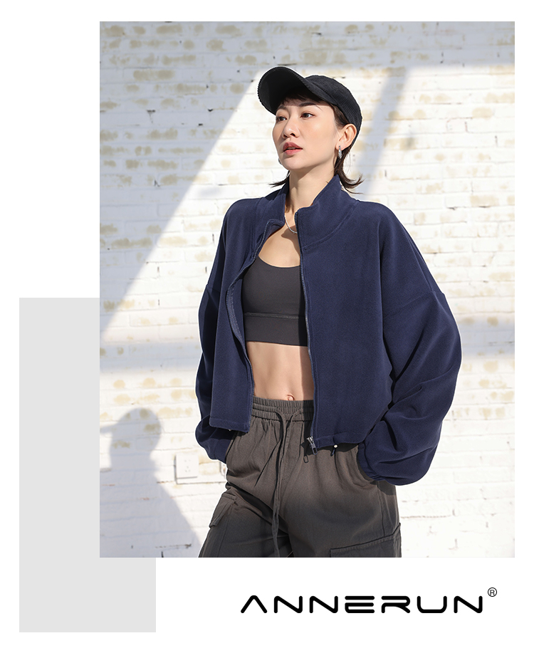 Annerun Lamb Fleece Sports Jacket with Fleece Lining, Thickened Stand Collar, Fleece Sports Fitness Casual Polar Fleece Top