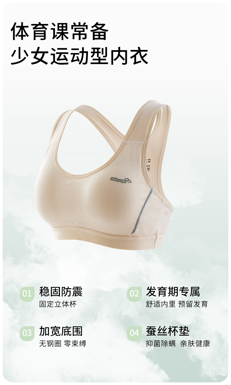 Girls' Sports Bra for 15-Year-Old Students, Shock-Proof, Puberty, Junior High School and High School Girls' Vest, Development Period Girls' Bra