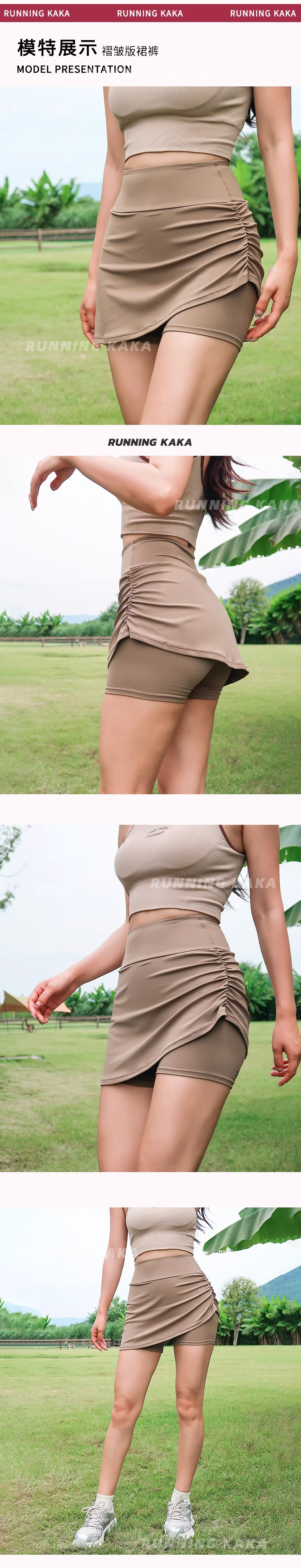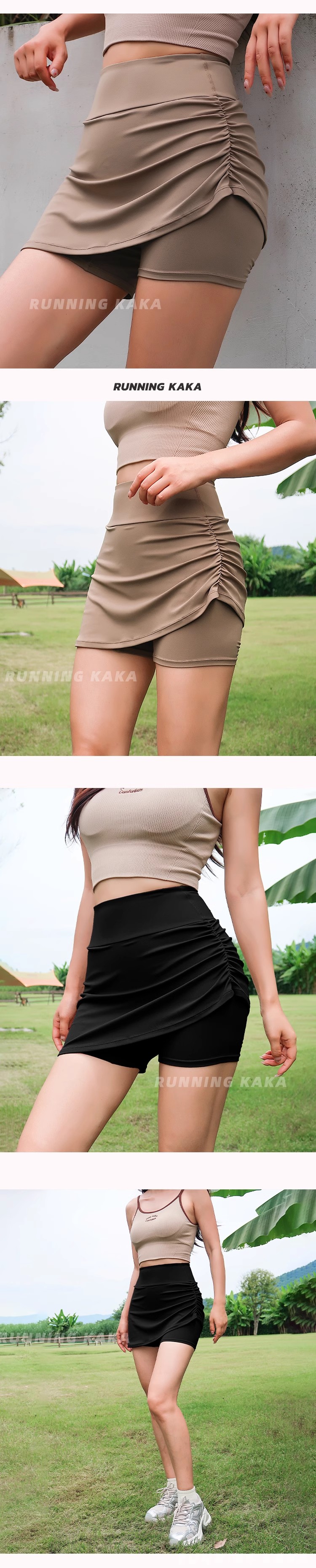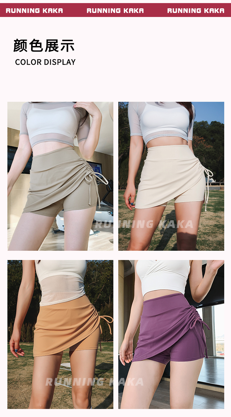 Running Kaka Sports Skirt Pants for Women, Anti-Exposure, High-Waisted, Butt-Lifting, Tennis, Running, Two-In-One Yoga Fitness Pants for Summer