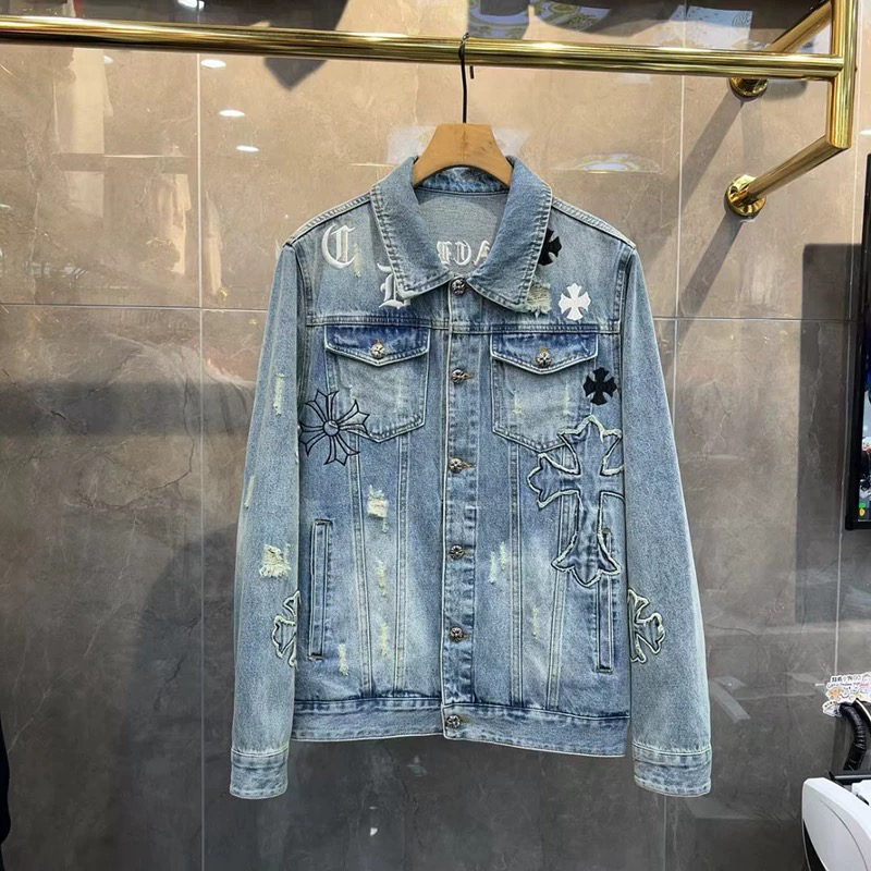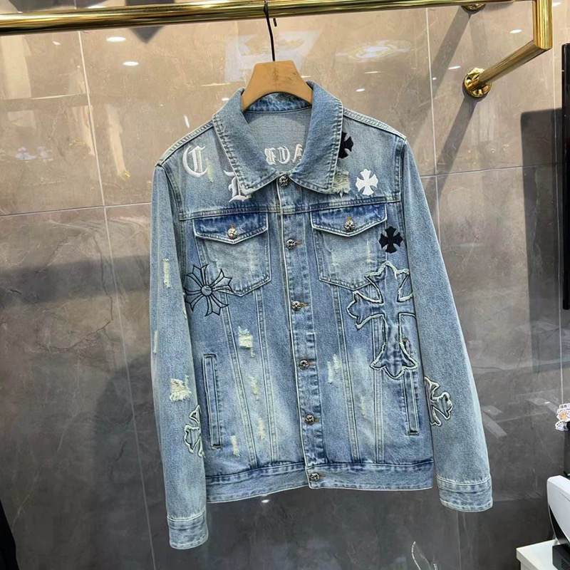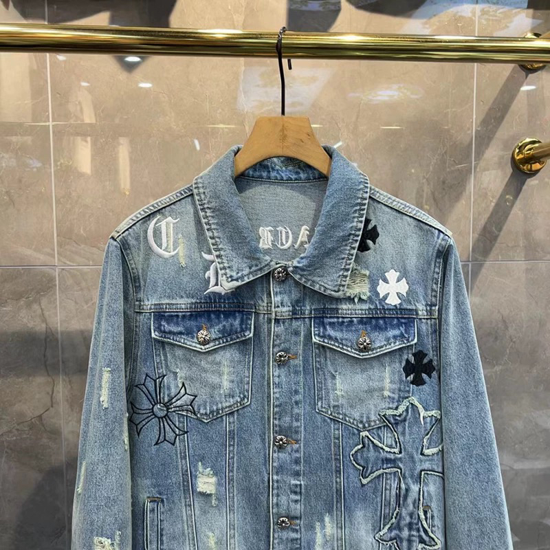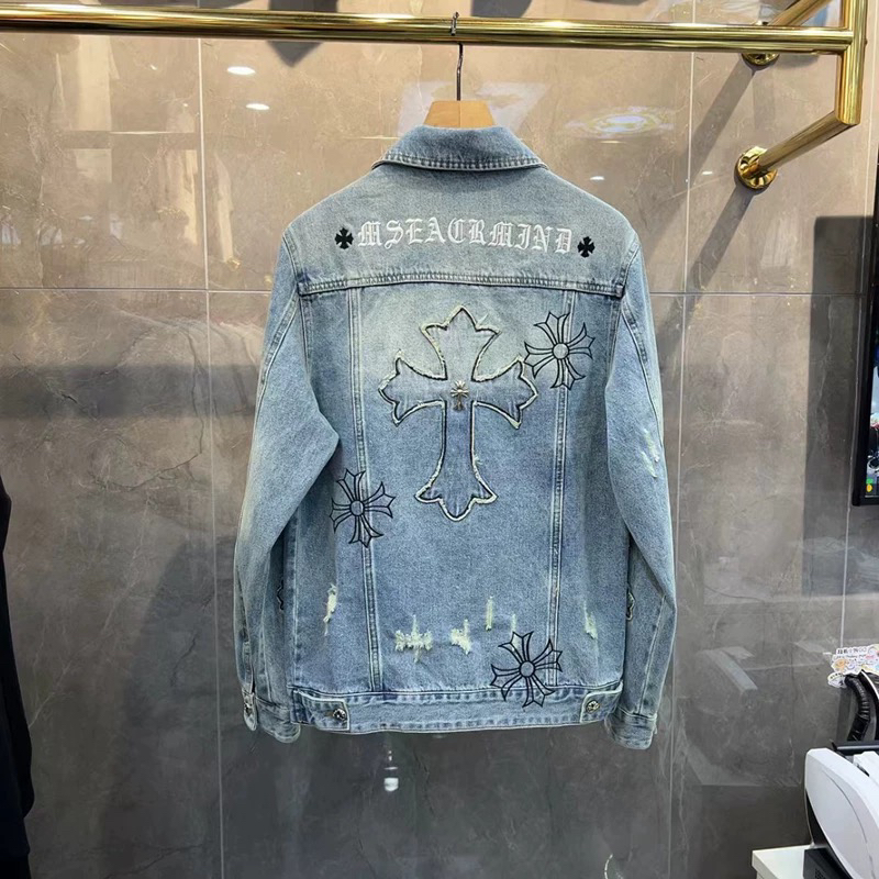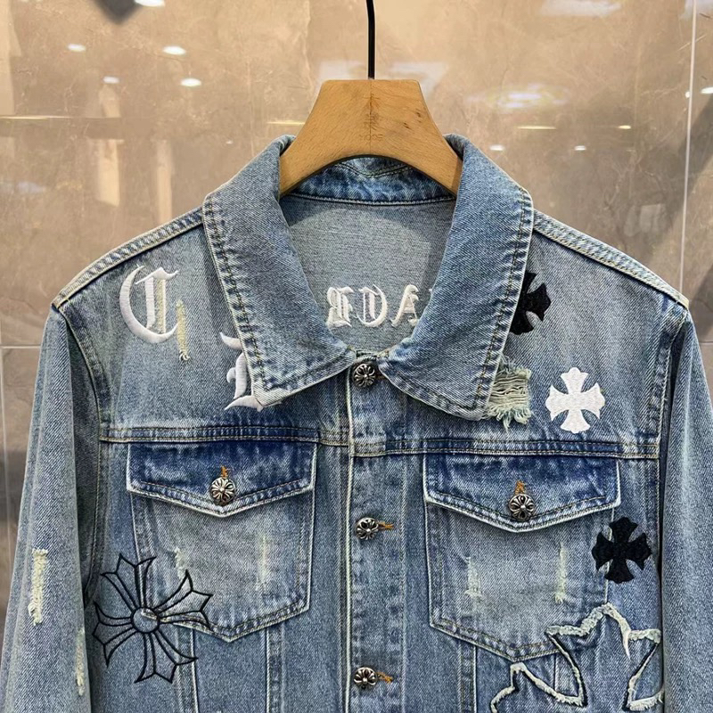 European Style Denim Jacket for Men, Trendy 2024 Spring New European Goods, Lapel with Cross Embroidery, Stylish and Handsome Jacket