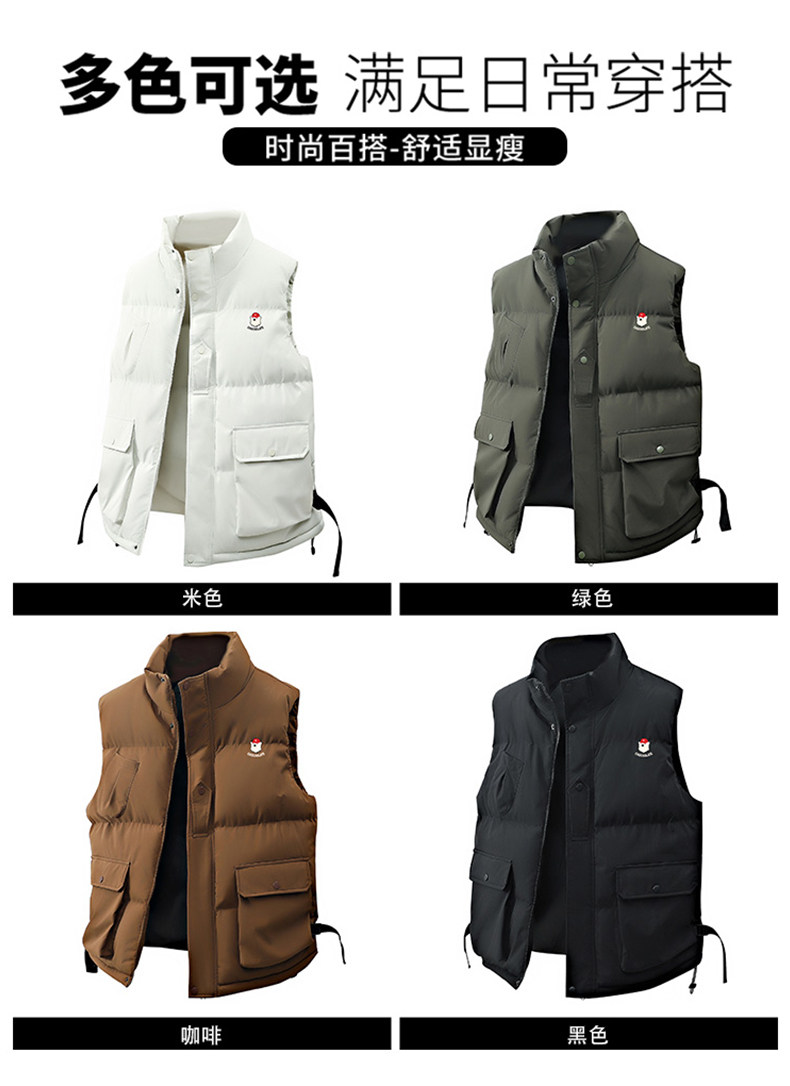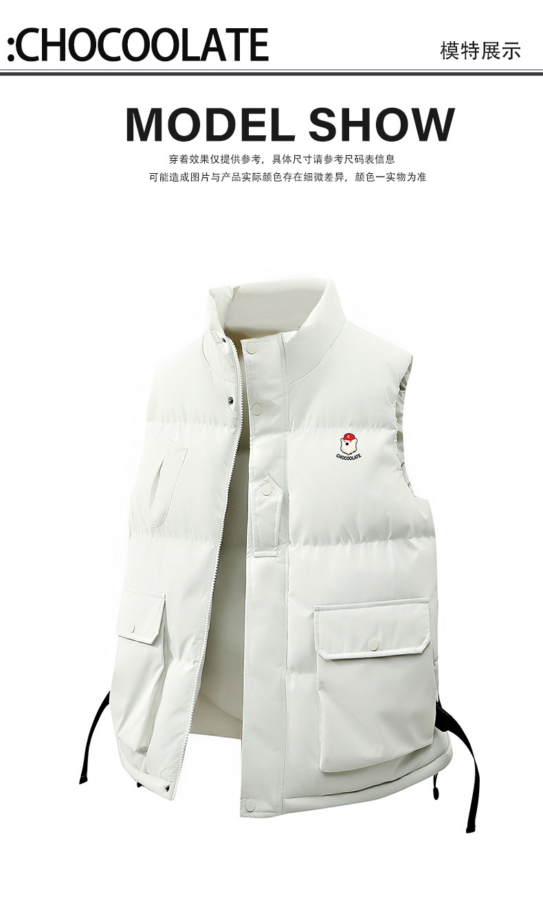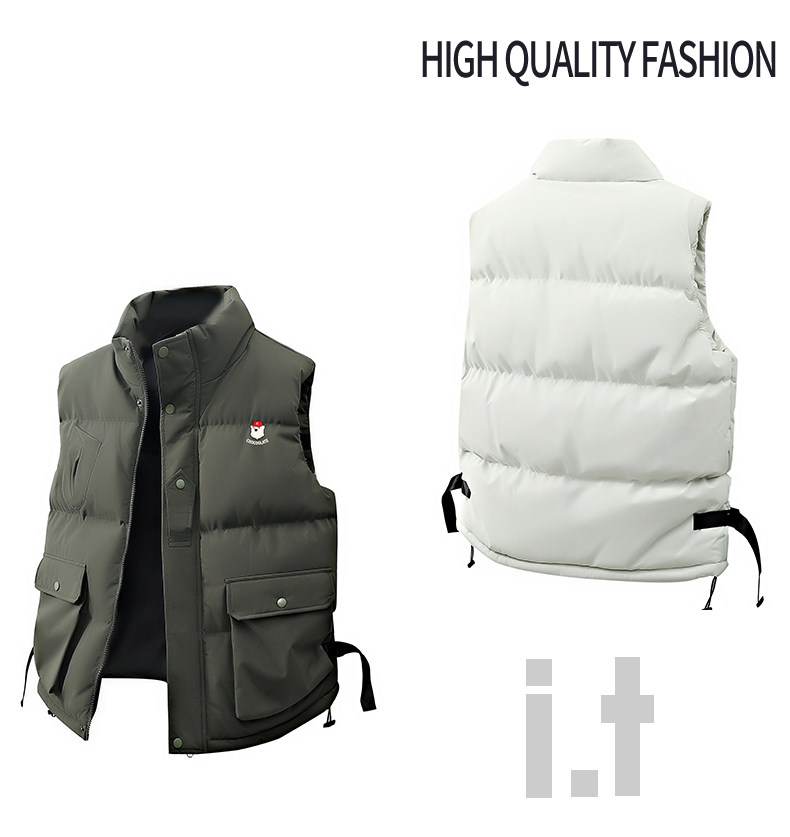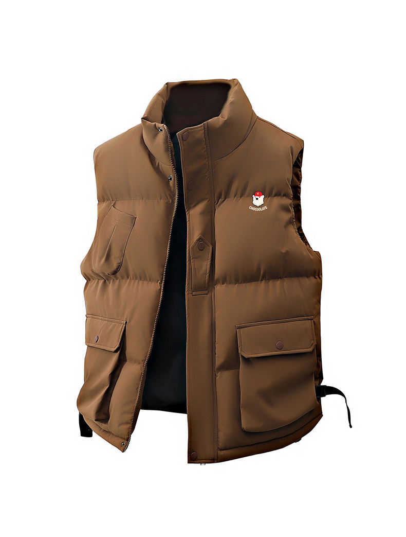 It: Chocoolate American-Style Stand-Up Collar Cotton Vest for Men, 2025 Winter Thickened Warm Sleeveless Jacket