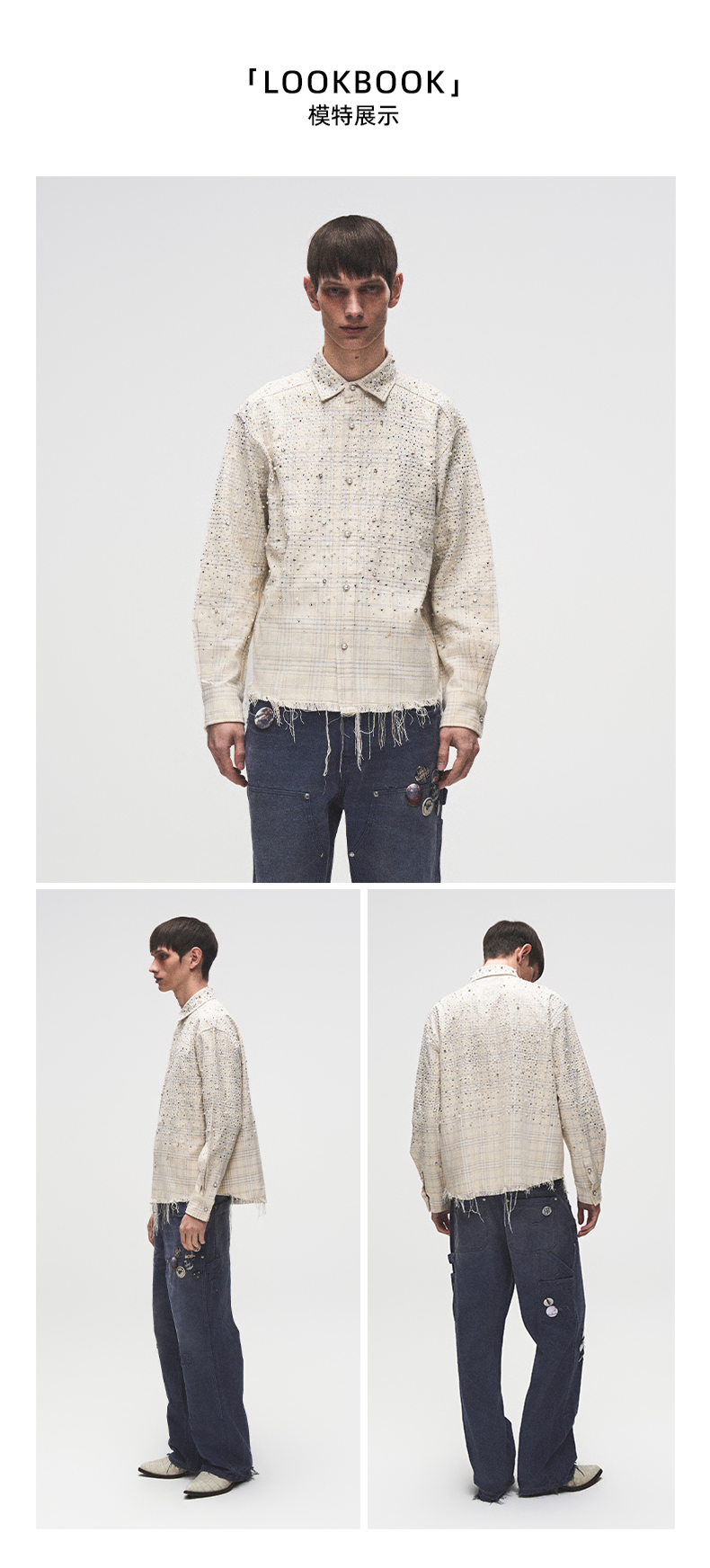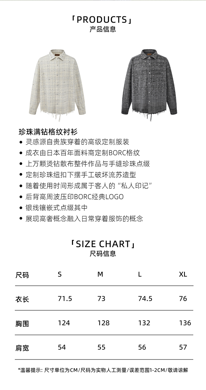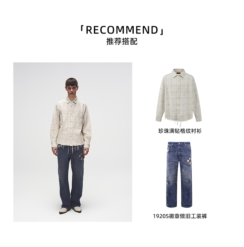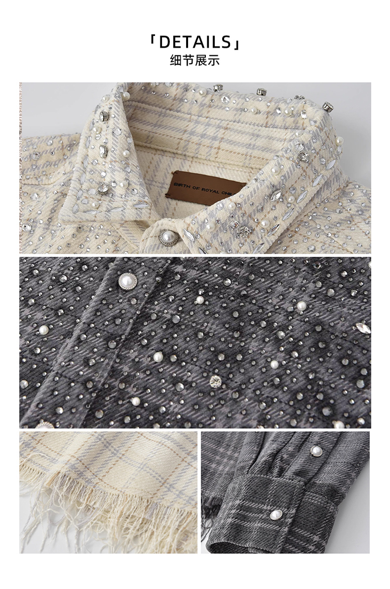 Birth of Royal Child.Borc 【Same Style as Jj Lin】 Pearl and Diamond Checkered Shirt for Men