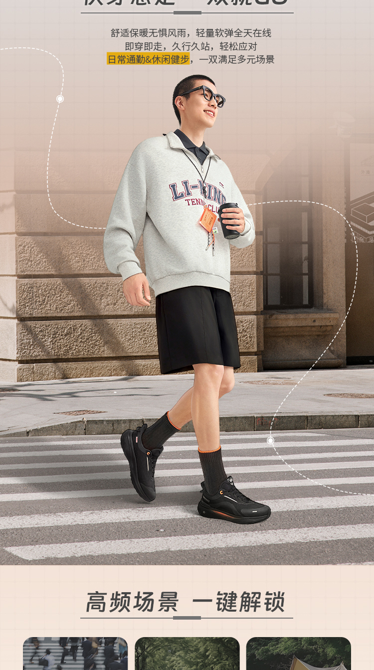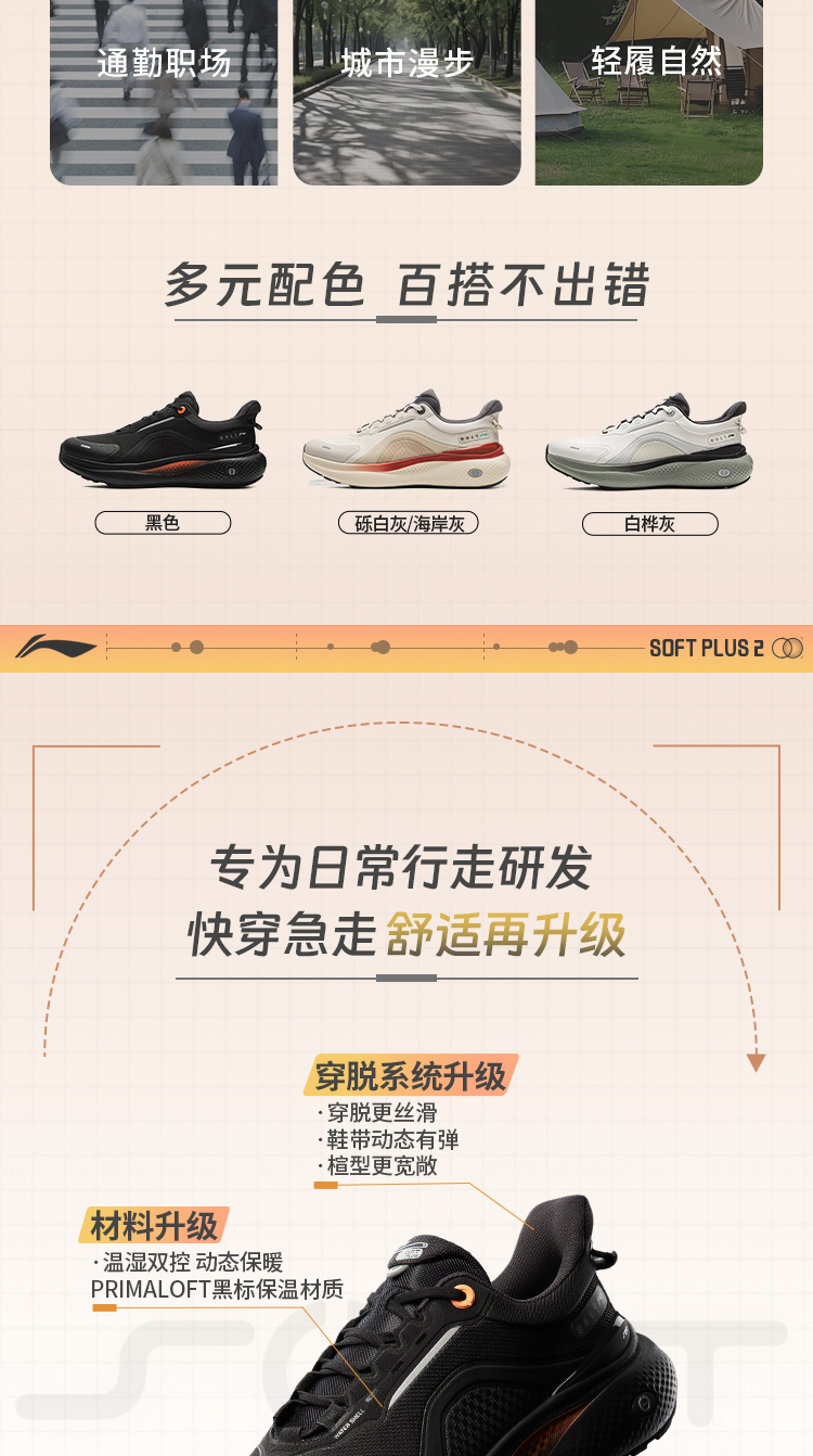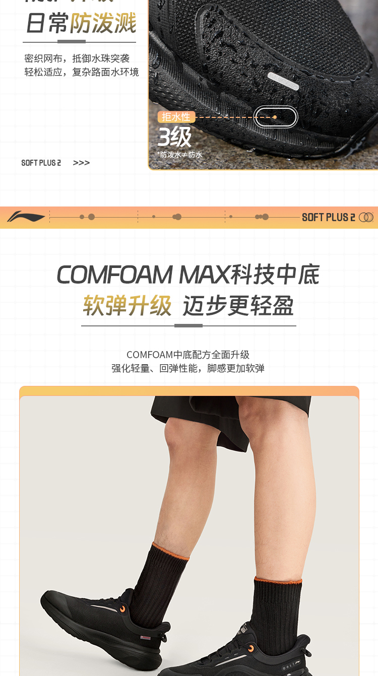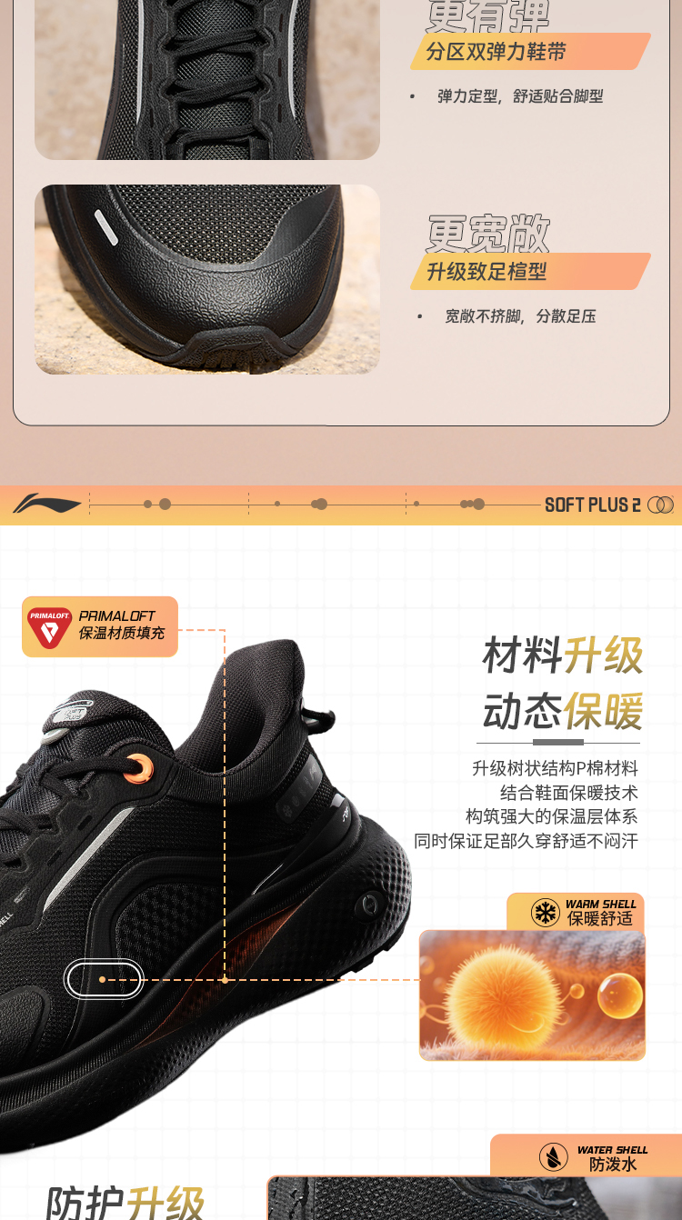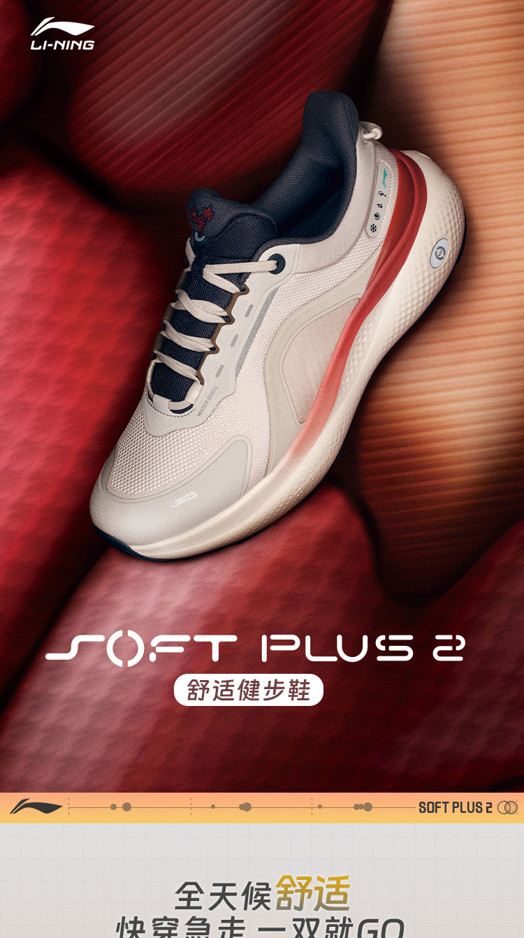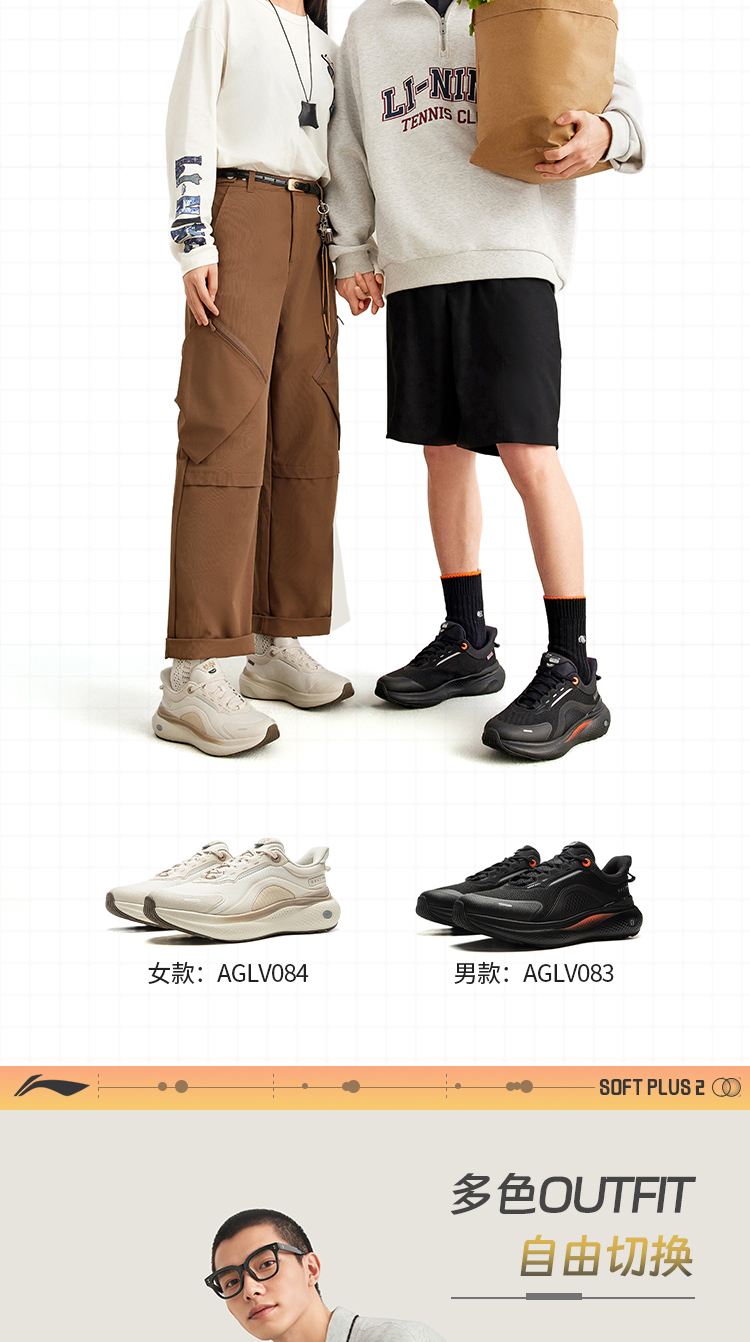 Li-Ning Soft Plus 2 Trendy Casual Shoes Men's Shoes 2025 Winter New Cushioning Lightweight Breathable Sports Shoes
