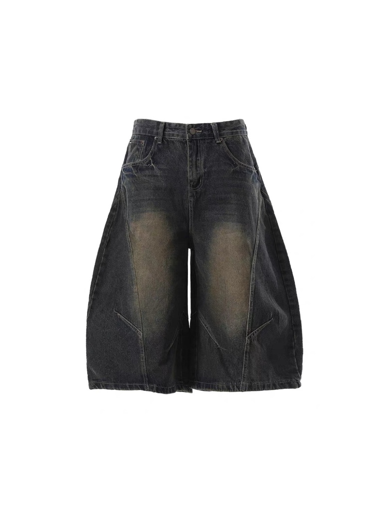 American Retro Washed Denim Scimitar Shorts, Unisex Summer New Loose Straight Wide-Leg Pants, Trendy Brand