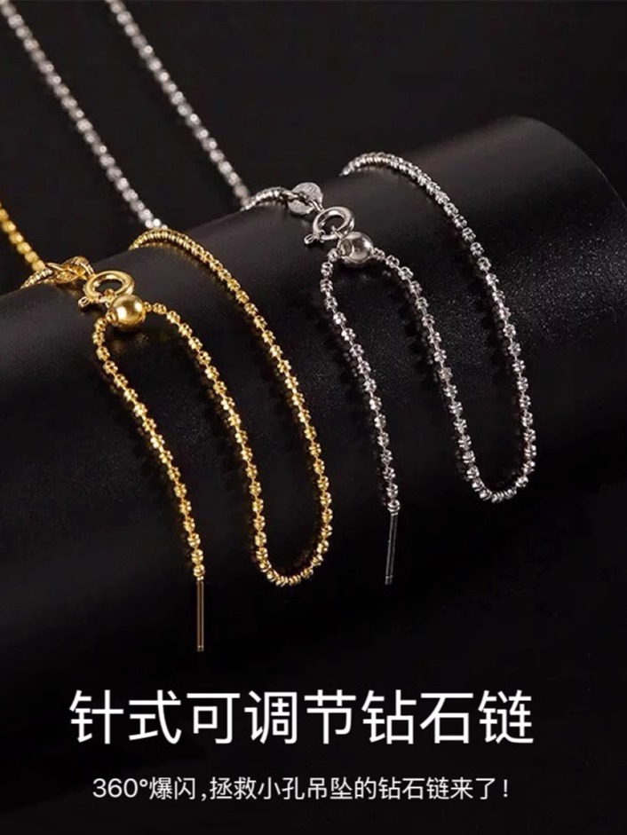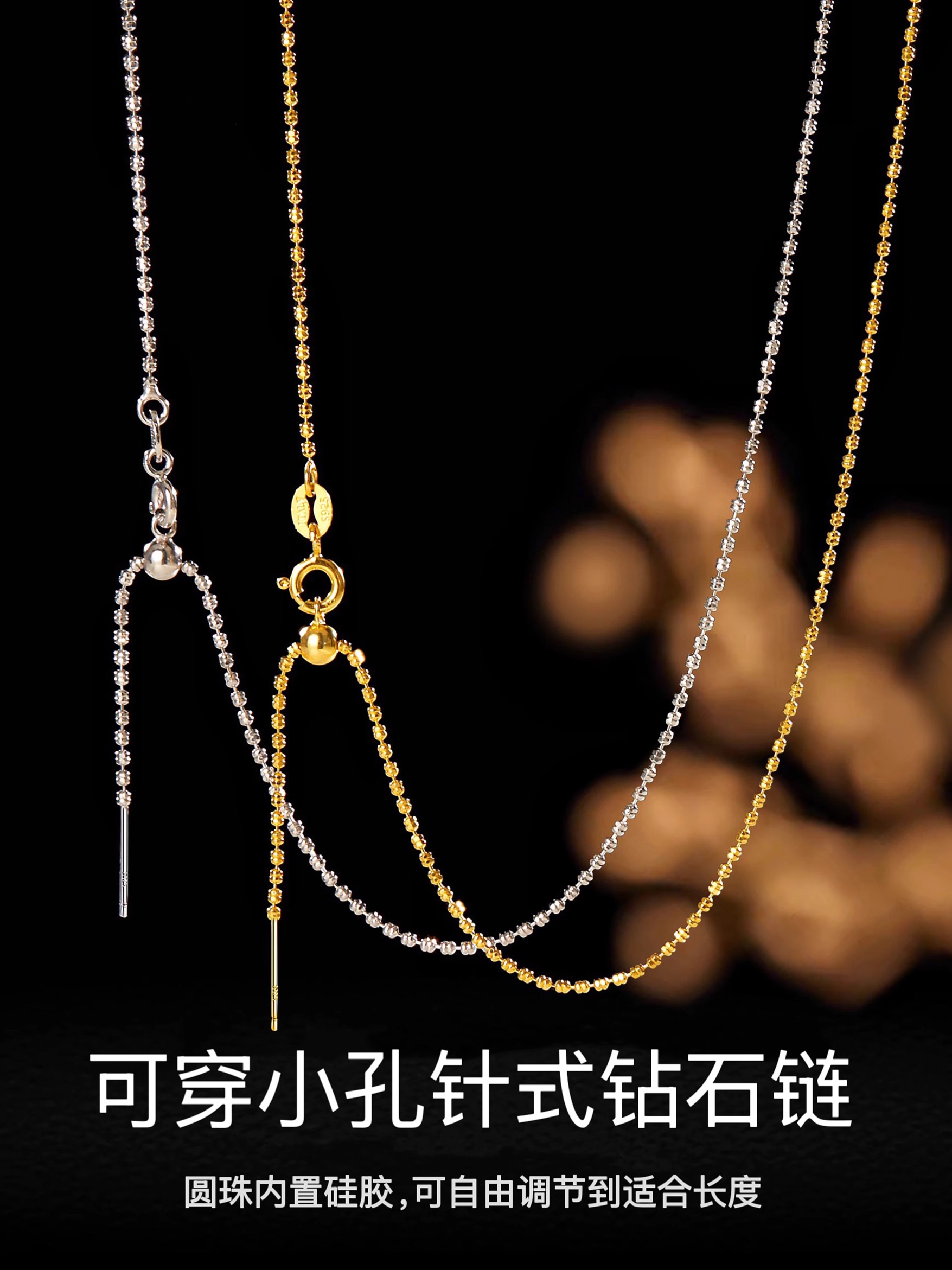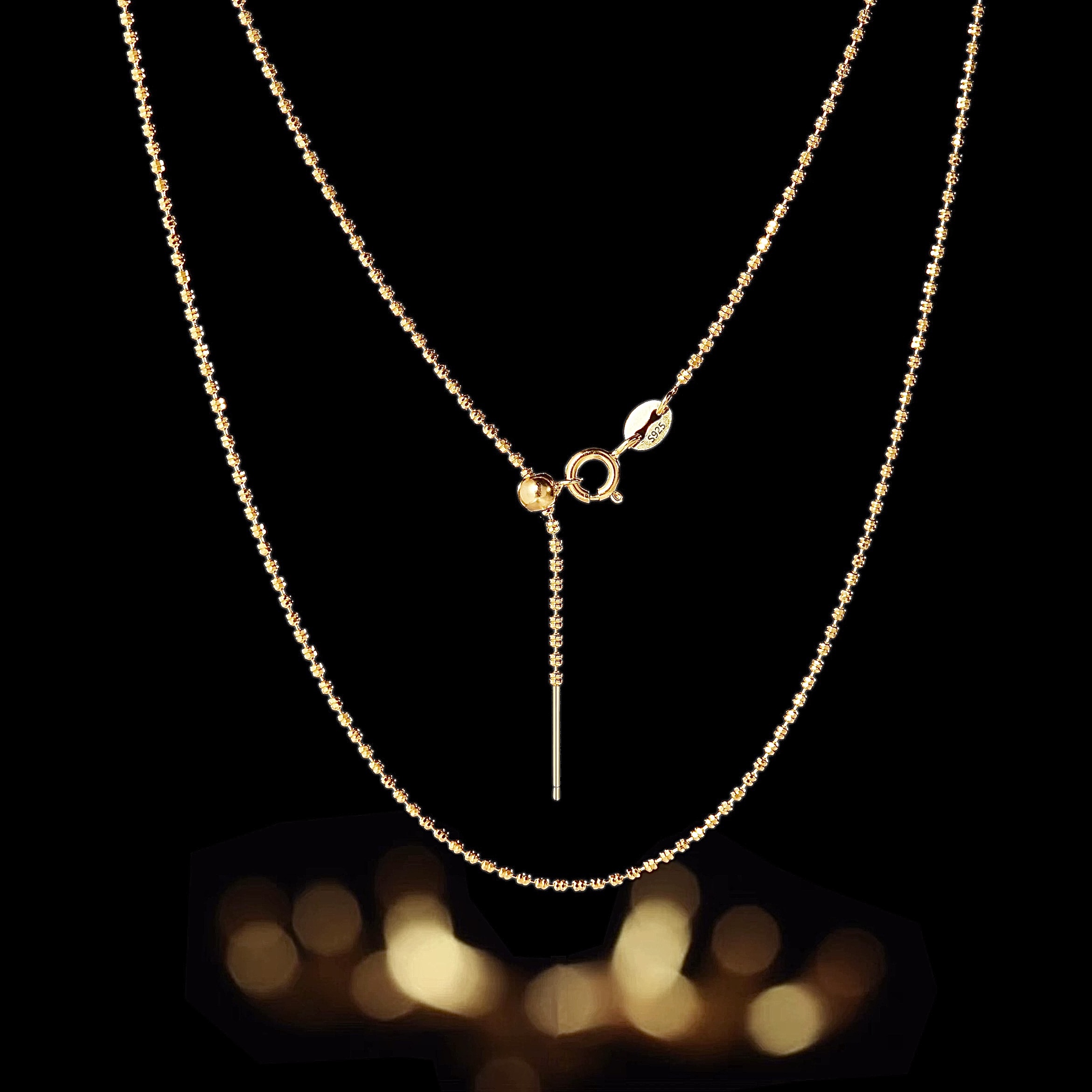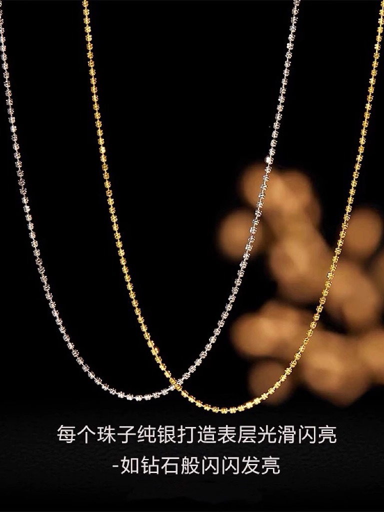 Sterling Silver Necklace, Pin-Type Universal Chain, Double Flash Beads, Sparkling Diamond Chain, Women's Round Bead Chain, Silver Plain Chain, 18K Gold Adjustable