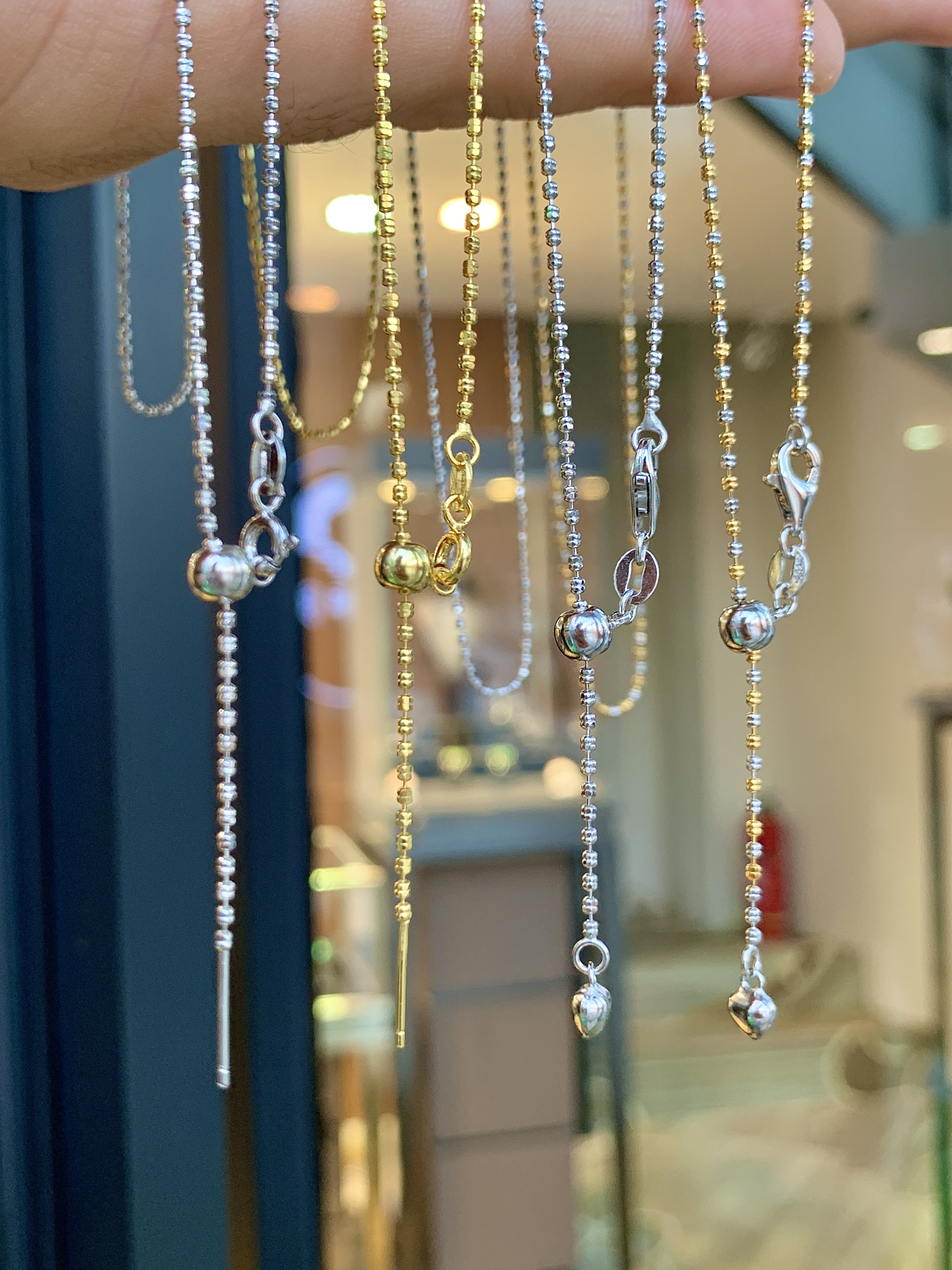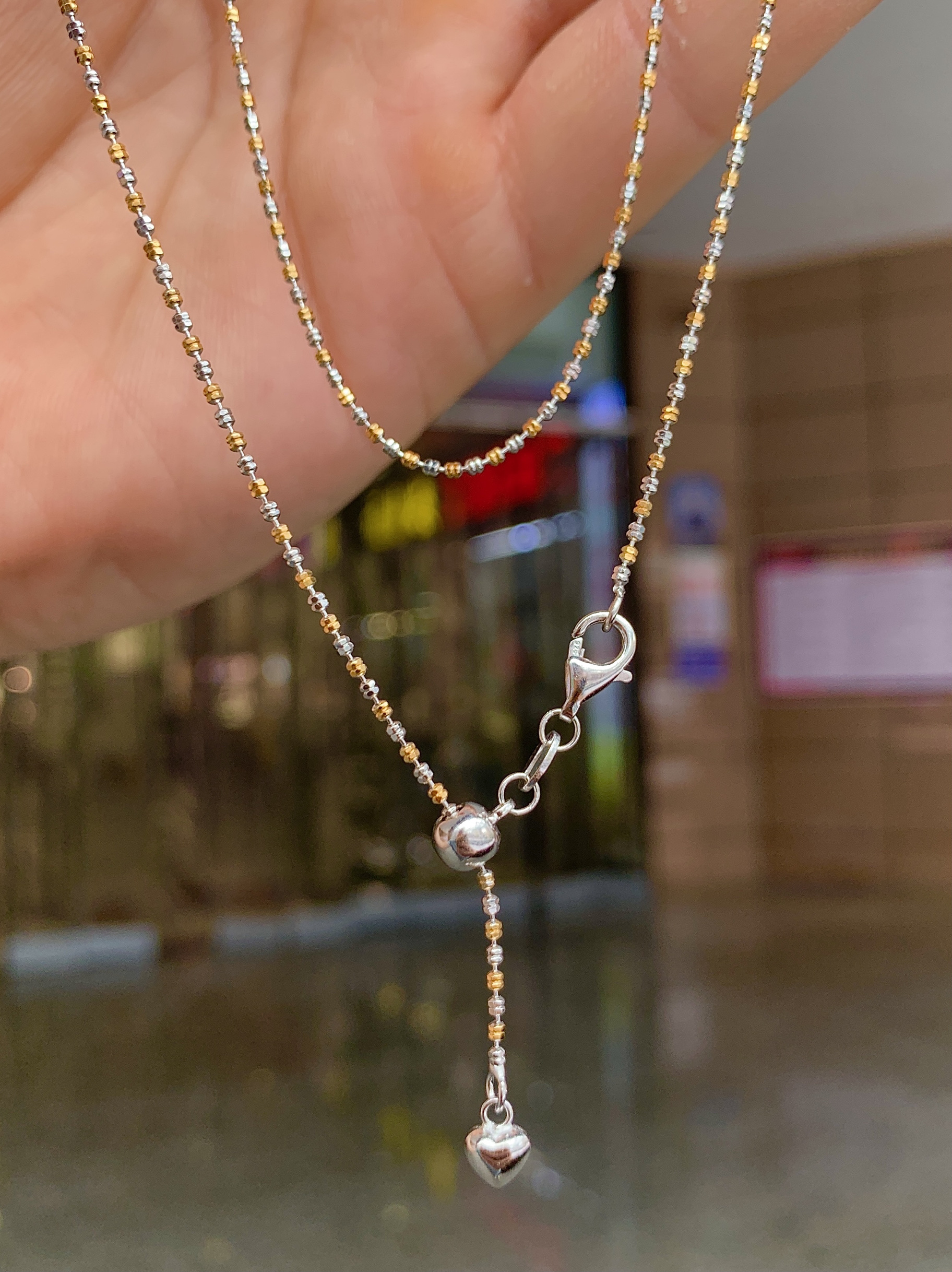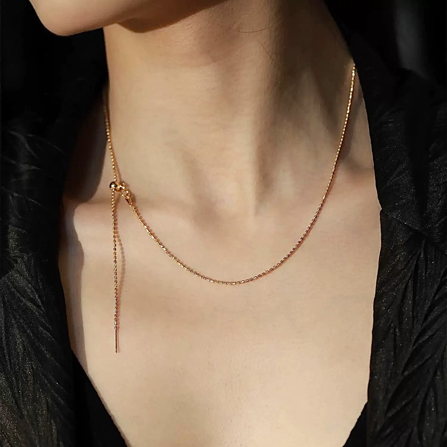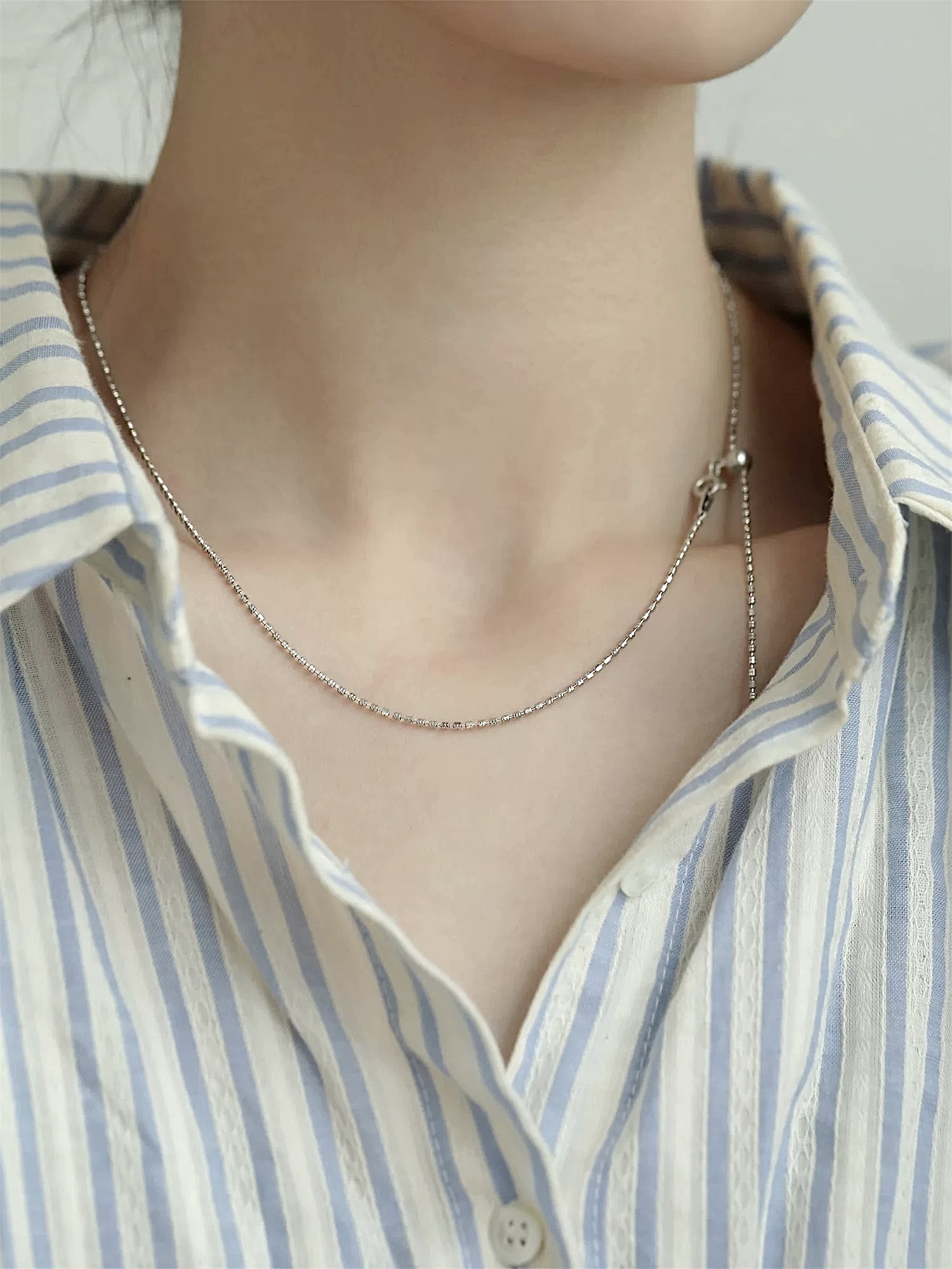 Sterling Silver Necklace, Pin-Type Universal Chain, Double Flash Beads, Sparkling Diamond Chain, Women's Round Bead Chain, Silver Plain Chain, 18K Gold Adjustable