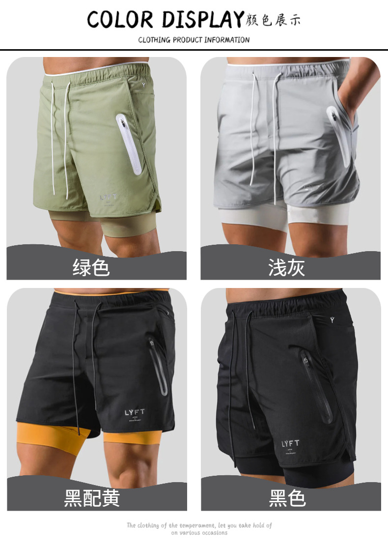 Men's Athletic Shorts, Quick-Drying, Double-Layered, Five-Point Shorts, Anti-Exposure, Muscle Training, Faux Two-Piece, American Style Trendy