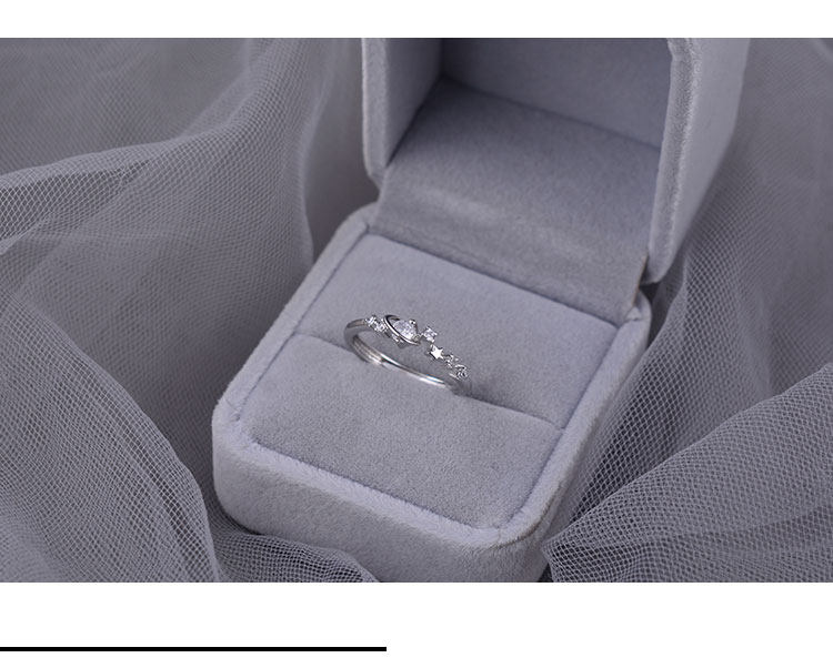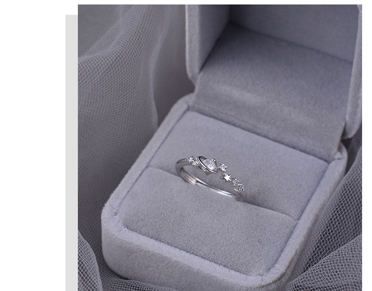 925 Sterling Silver Ring for Women, Korean and Japanese Style, Fresh and Simple, Star and Earth Micro-Inlaid Open Ring for Index Finger, Niche Design with Engraving