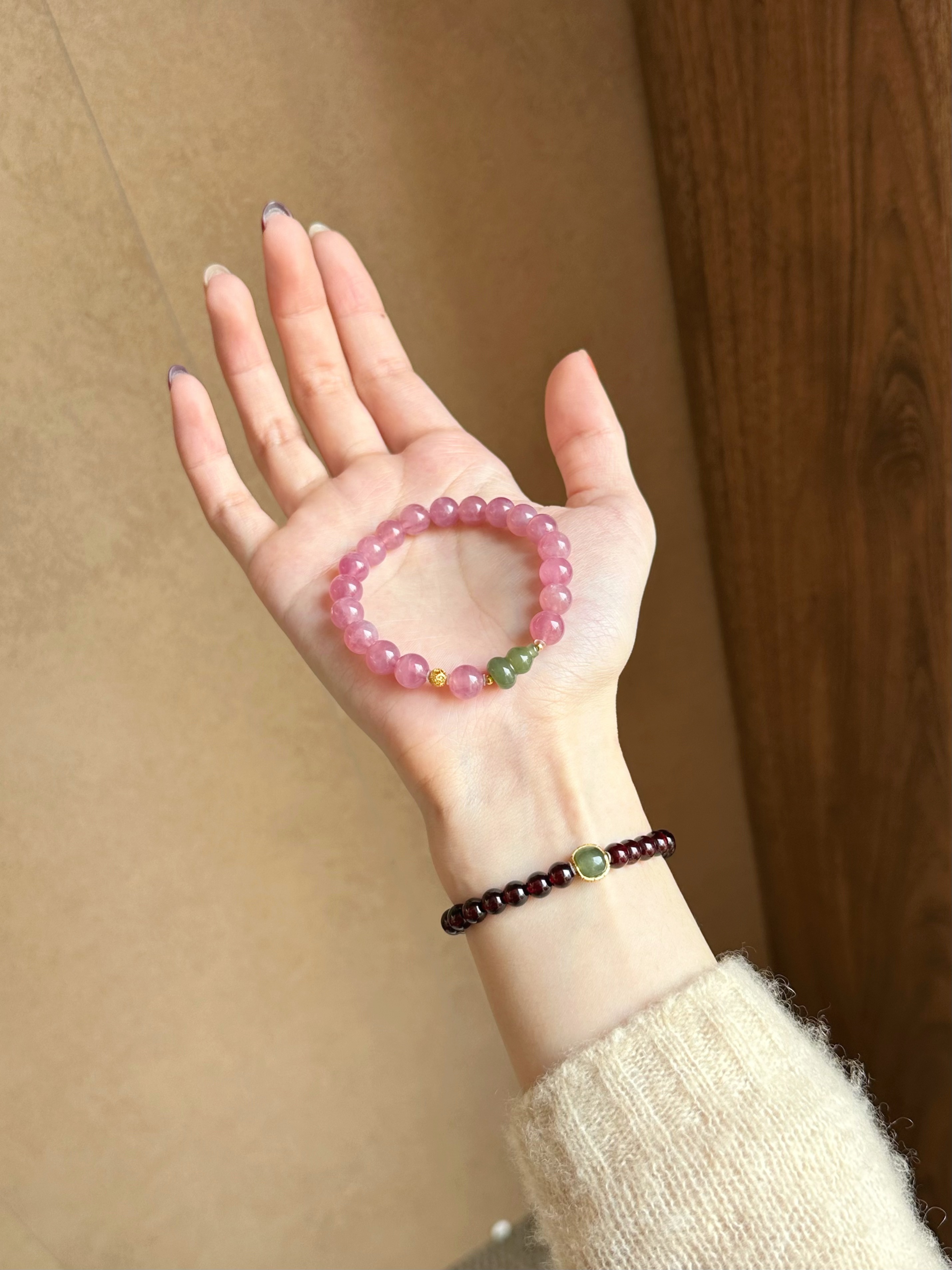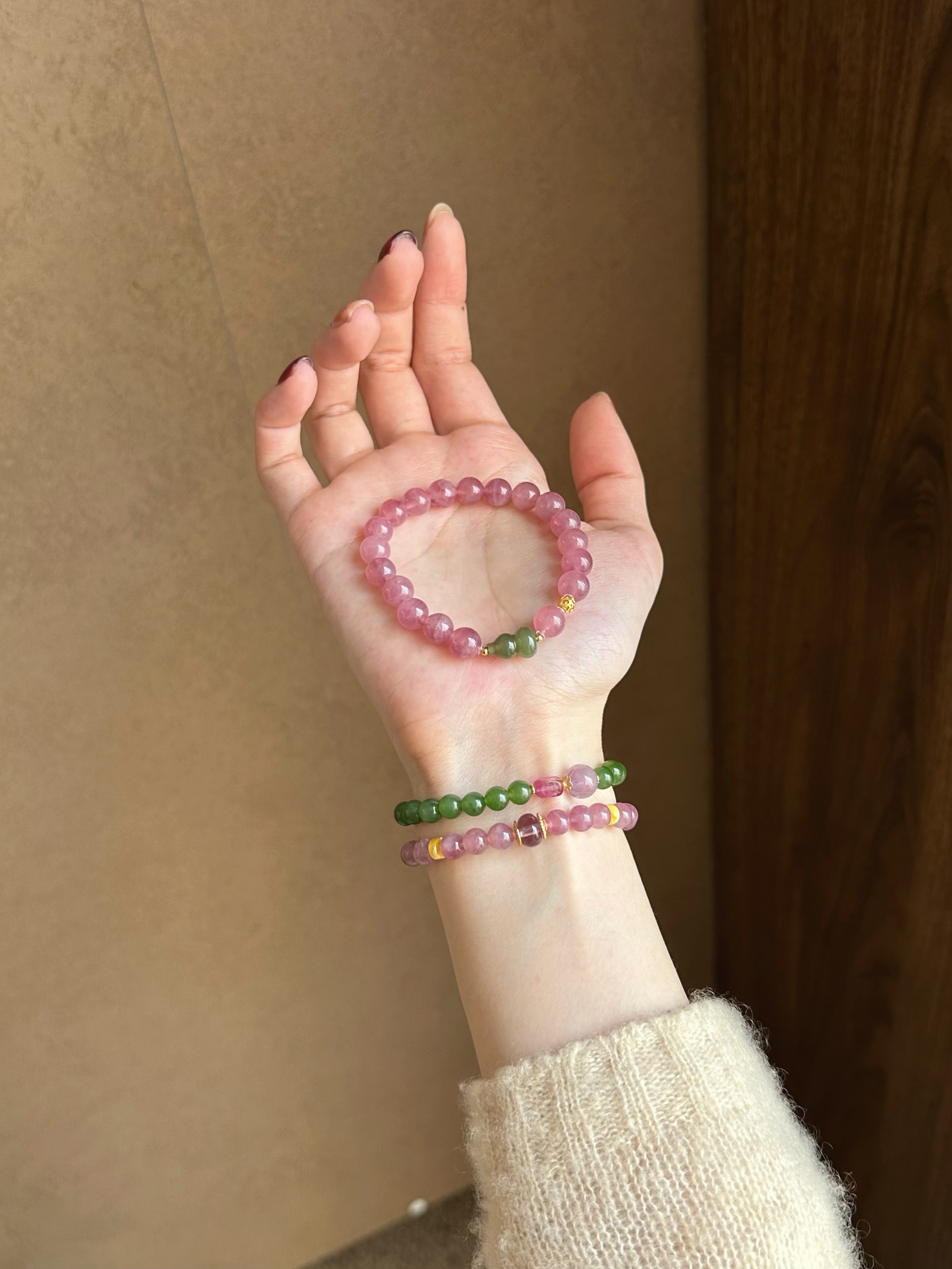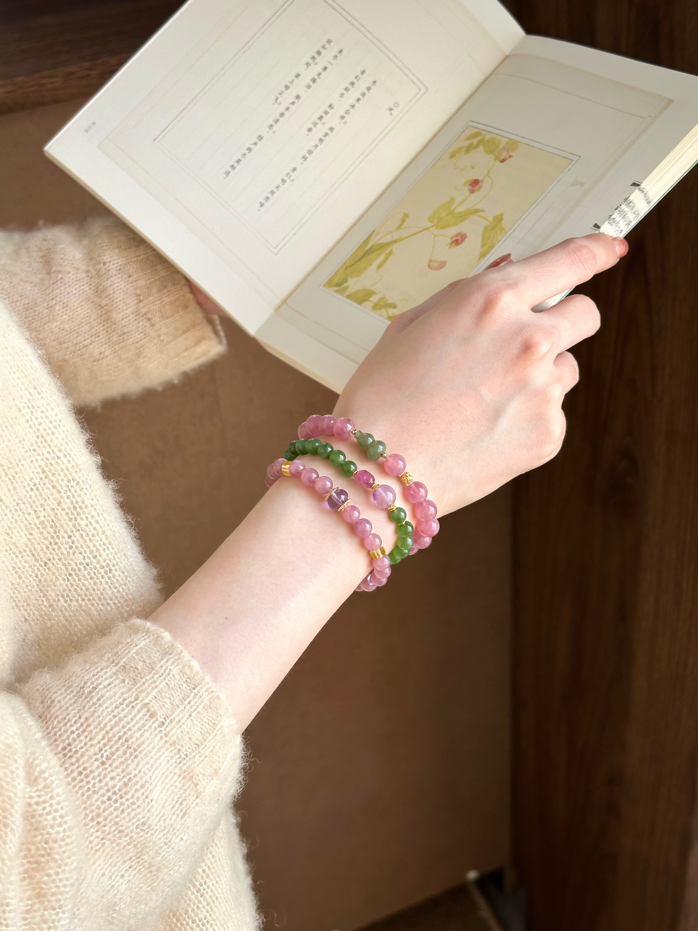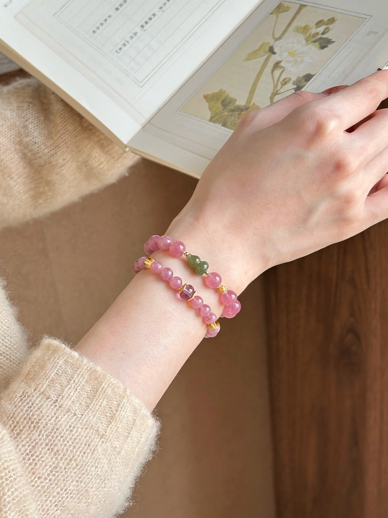 Shan Shi·Original "Begonia and Acacia Blossom" Natural Purple Horse Powder Jade Gourd Bracelet for Attracting Love and Pink Crystal Bracelet