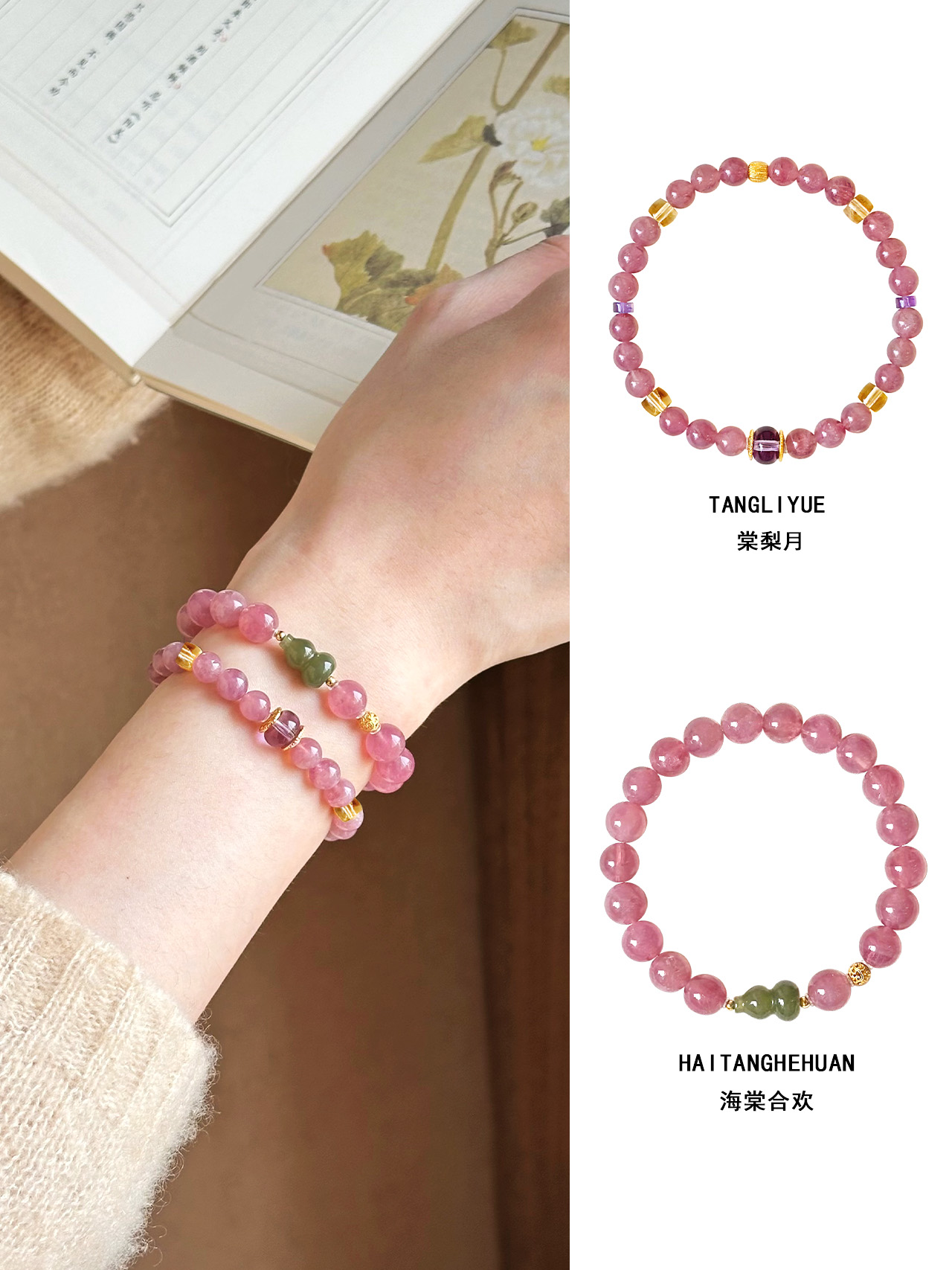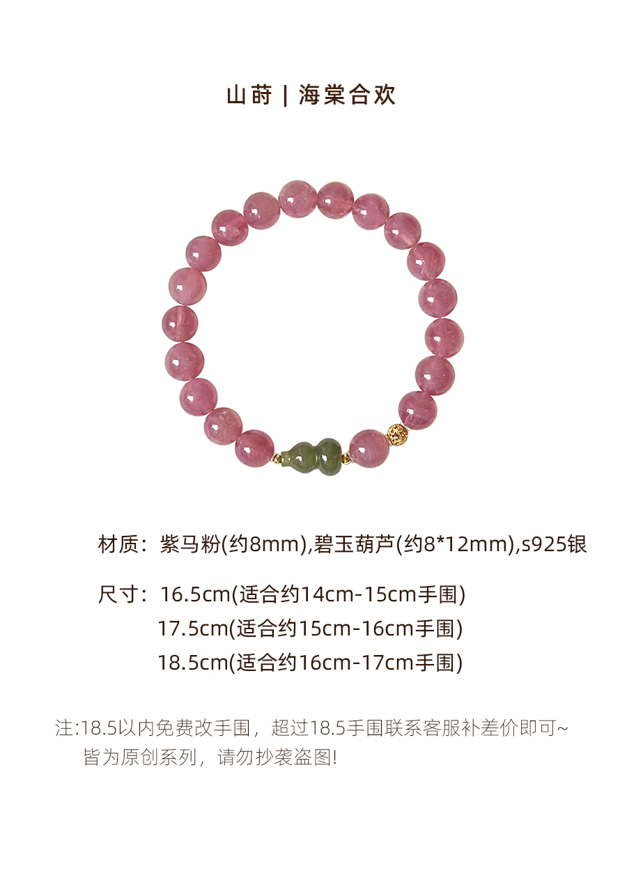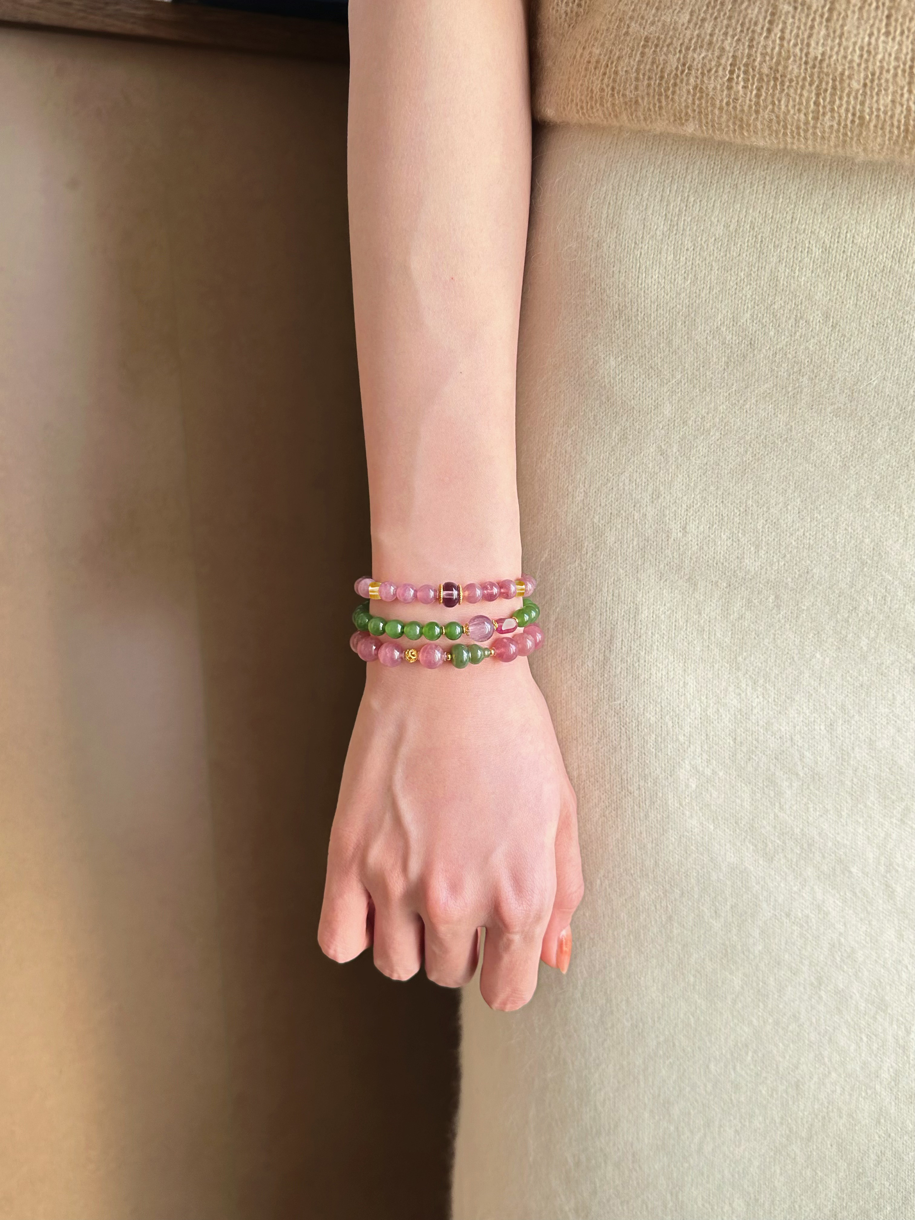 Shan Shi·Original "Begonia and Acacia Blossom" Natural Purple Horse Powder Jade Gourd Bracelet for Attracting Love and Pink Crystal Bracelet