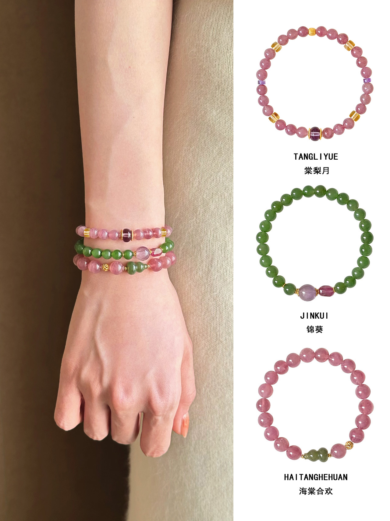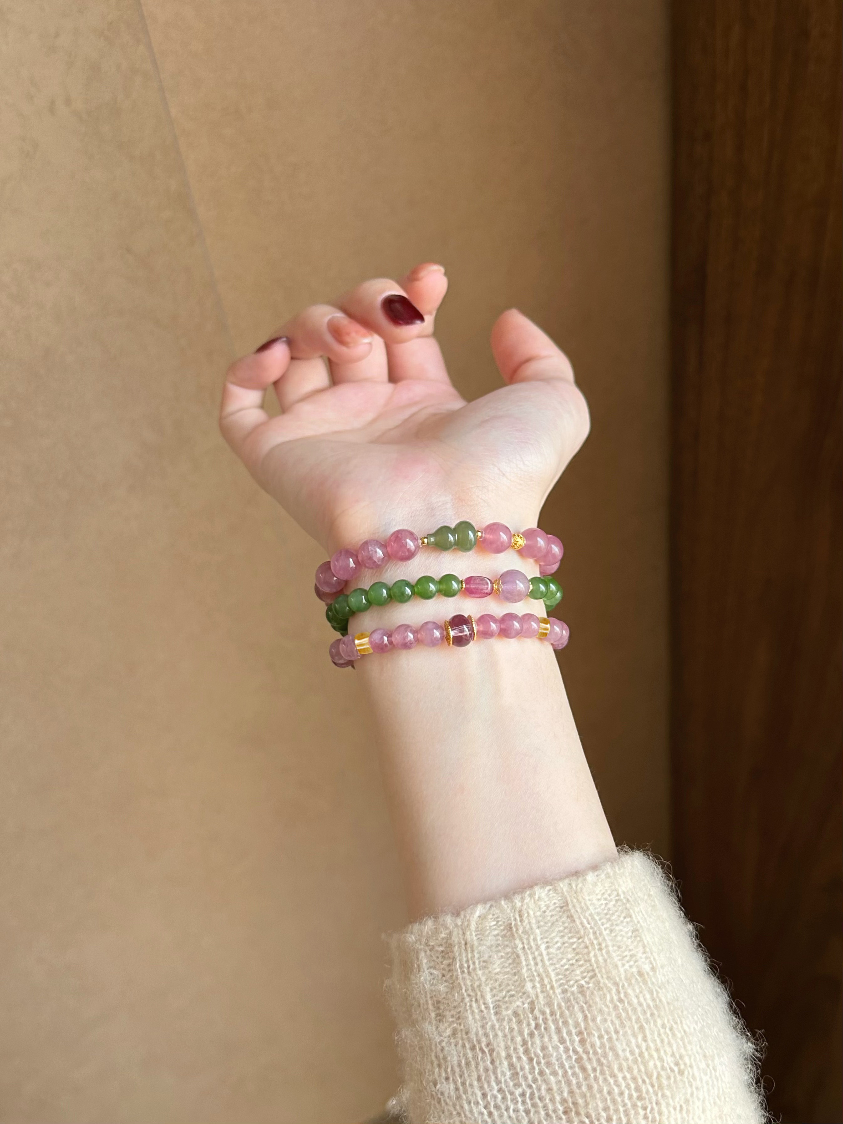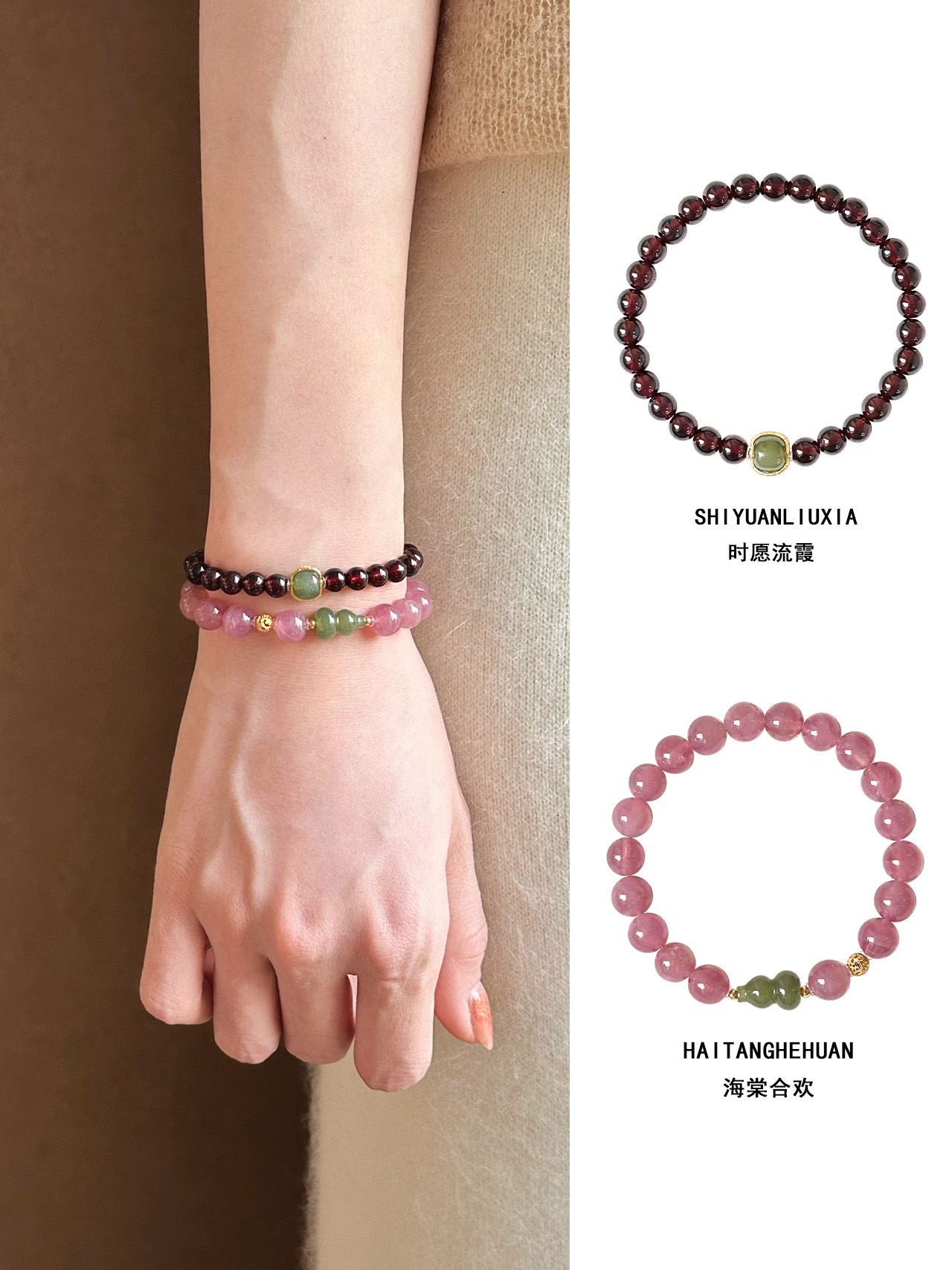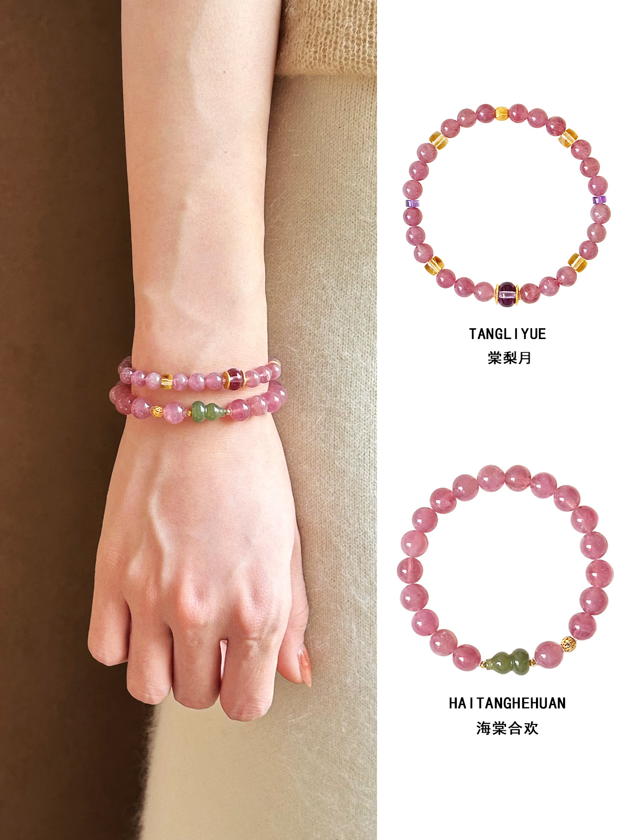 Shan Shi·Original "Begonia and Acacia Blossom" Natural Purple Horse Powder Jade Gourd Bracelet for Attracting Love and Pink Crystal Bracelet