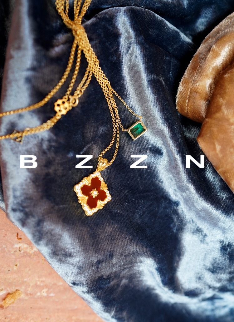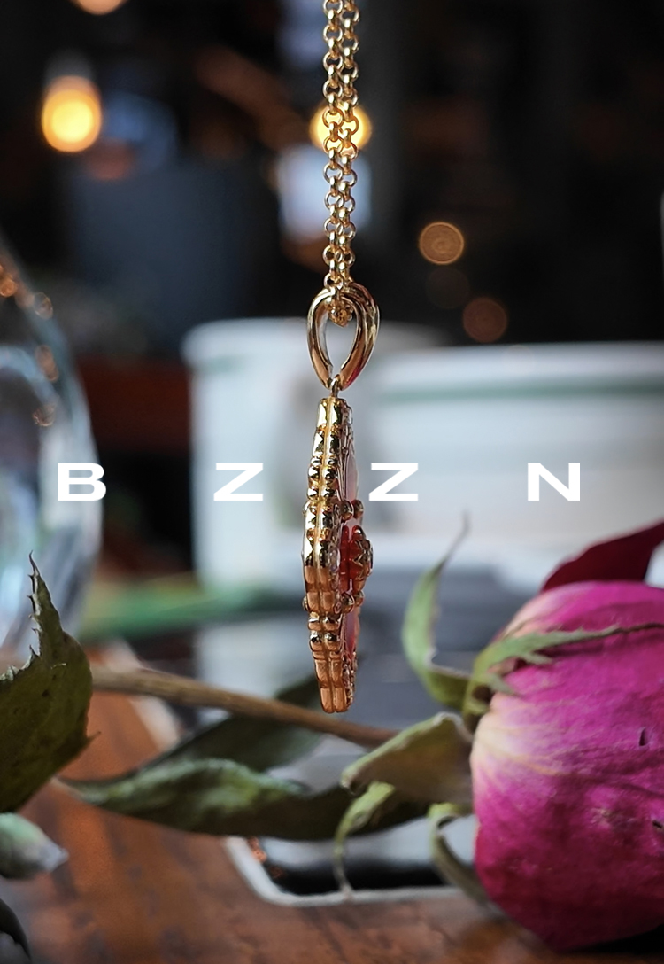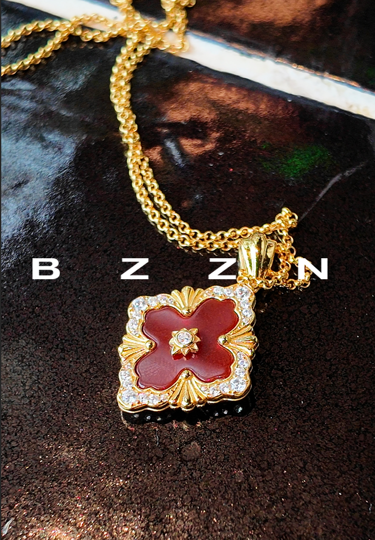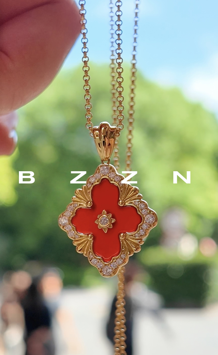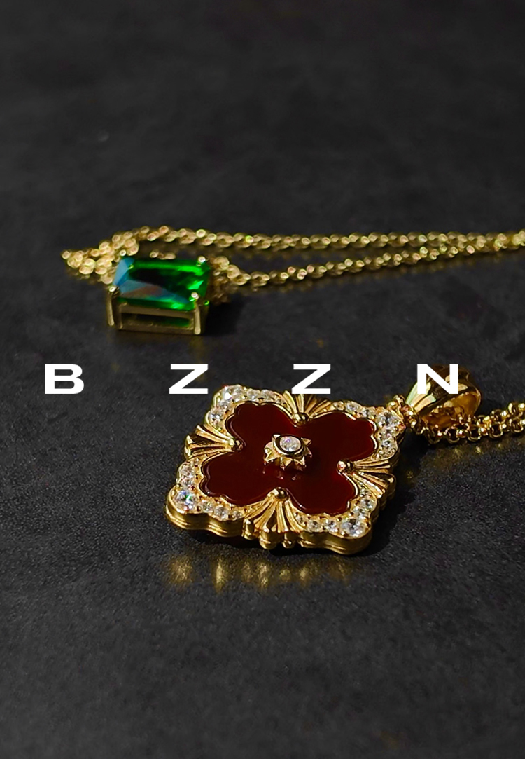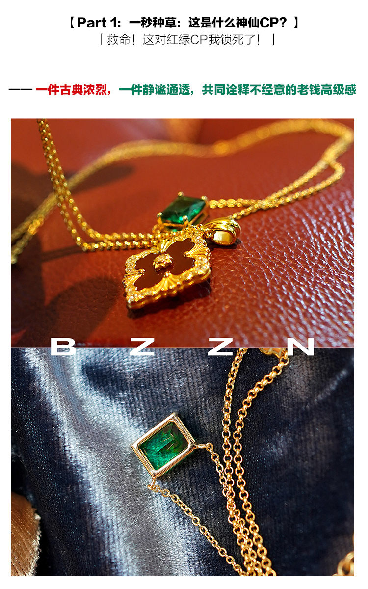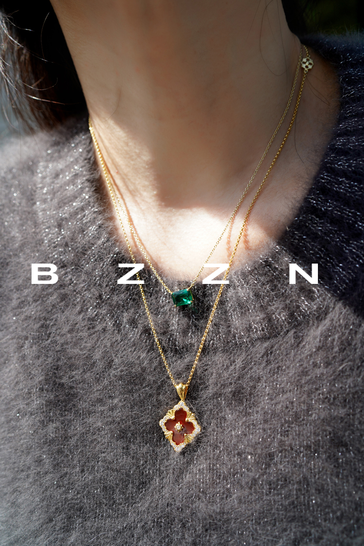 Bzzn Weaver's Selection [Green Fat, Red Lean] Cloth Family's Centennial Heritage Red Agate Emerald Diamond Necklace Cp