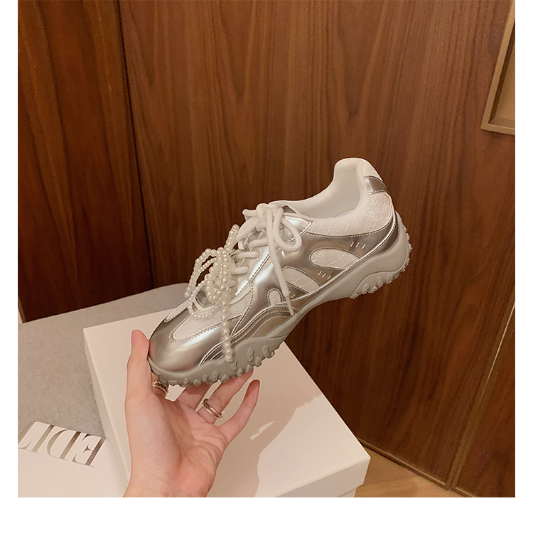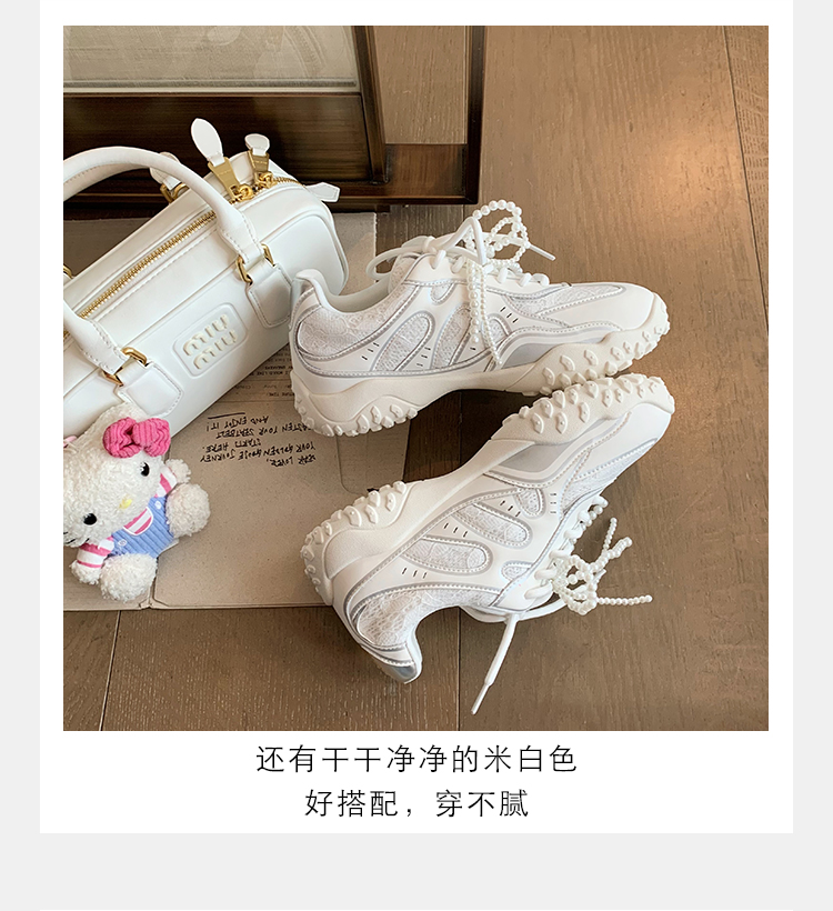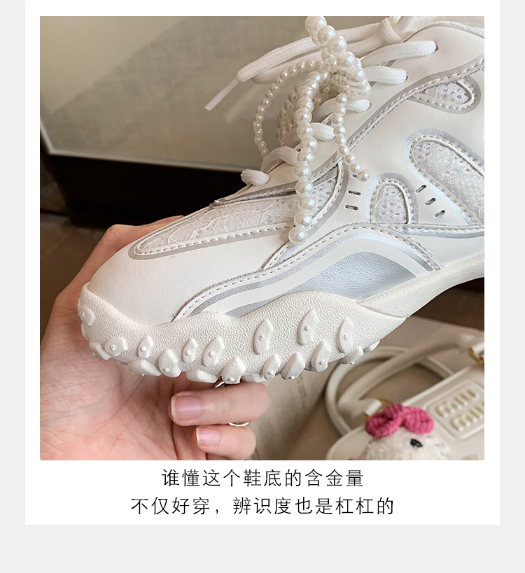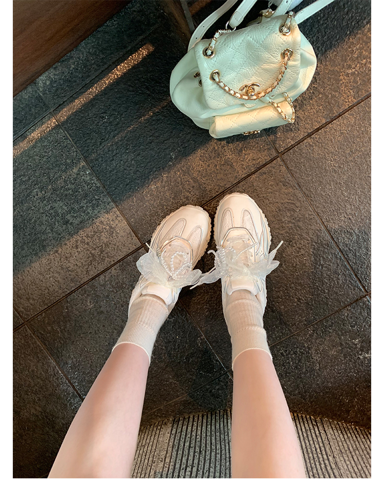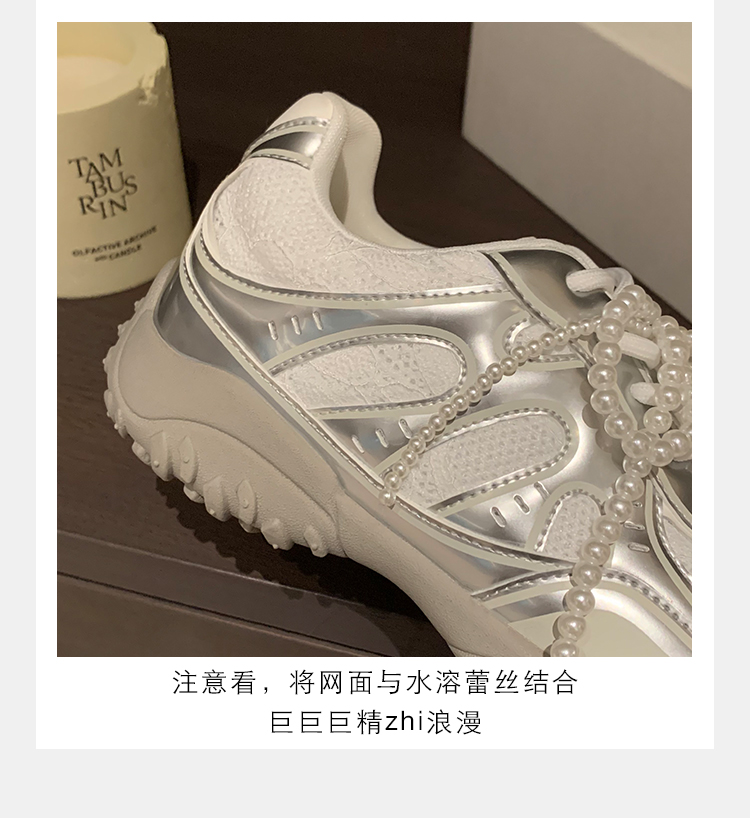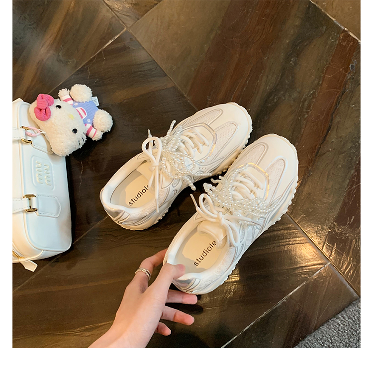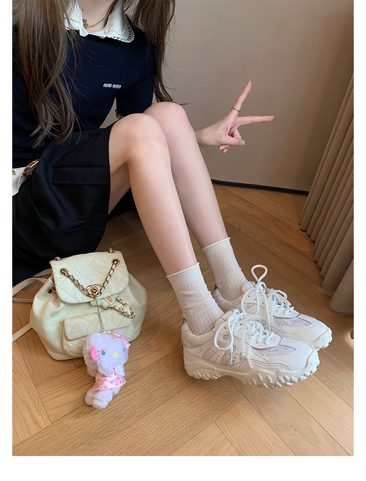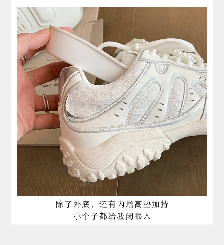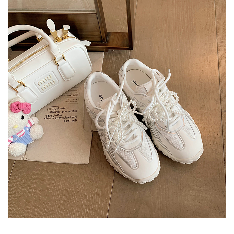 Grape Mom Studiolee 5cm Height Increase ~ Lace Splicing Casual Pearl Versatile Agande Training Sneakers for Women