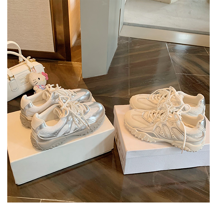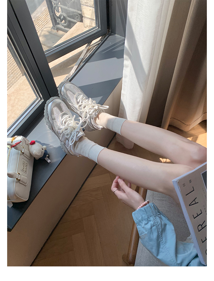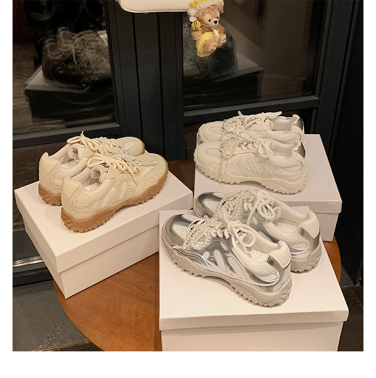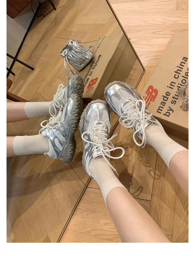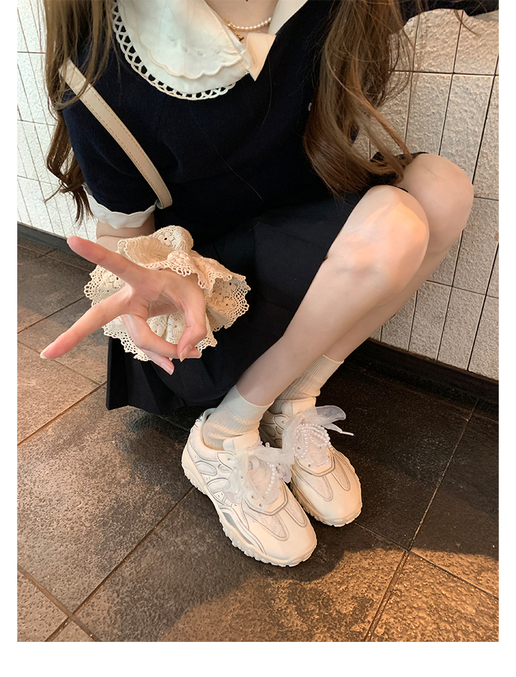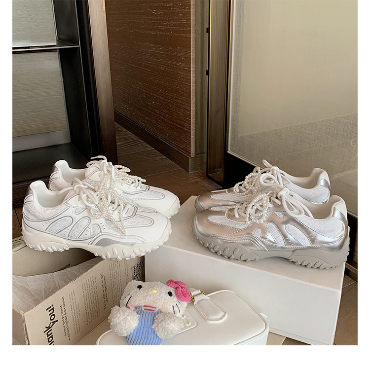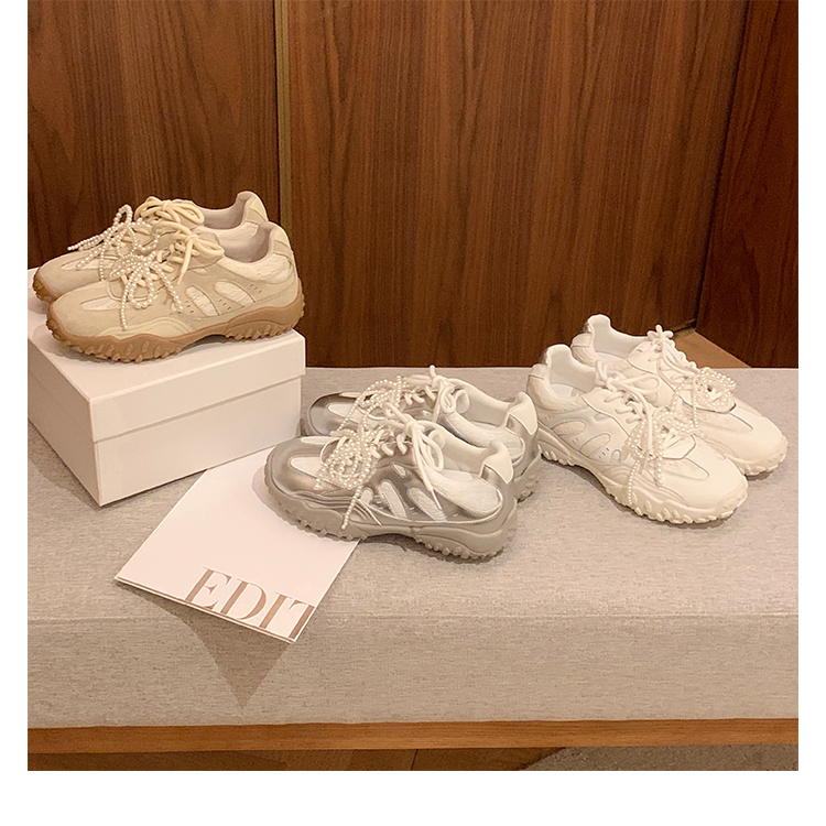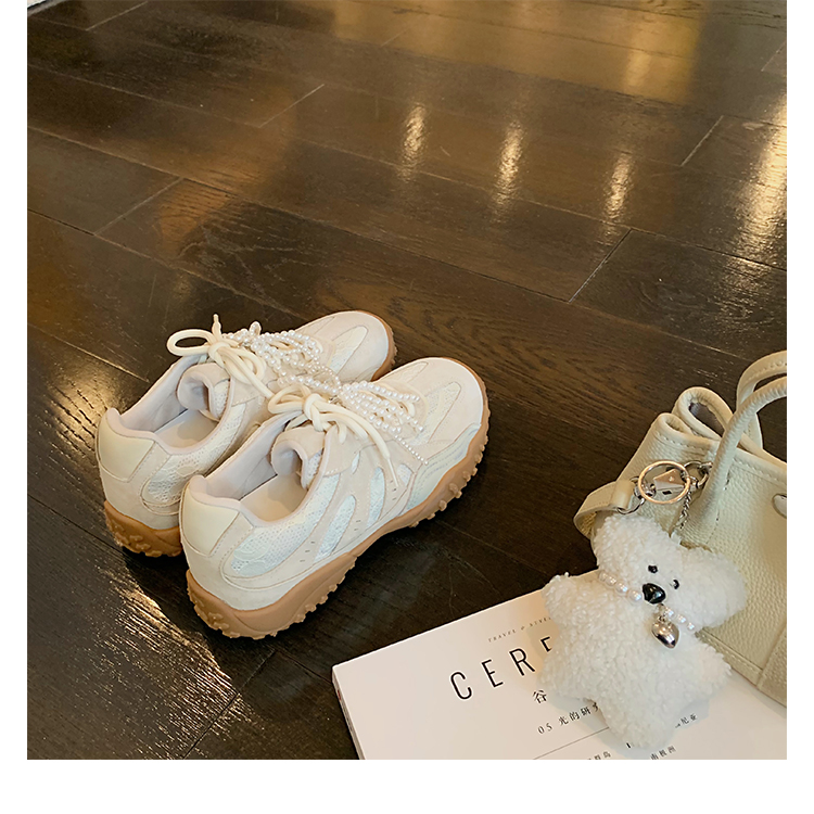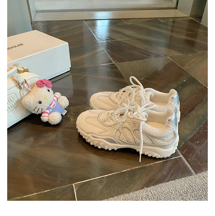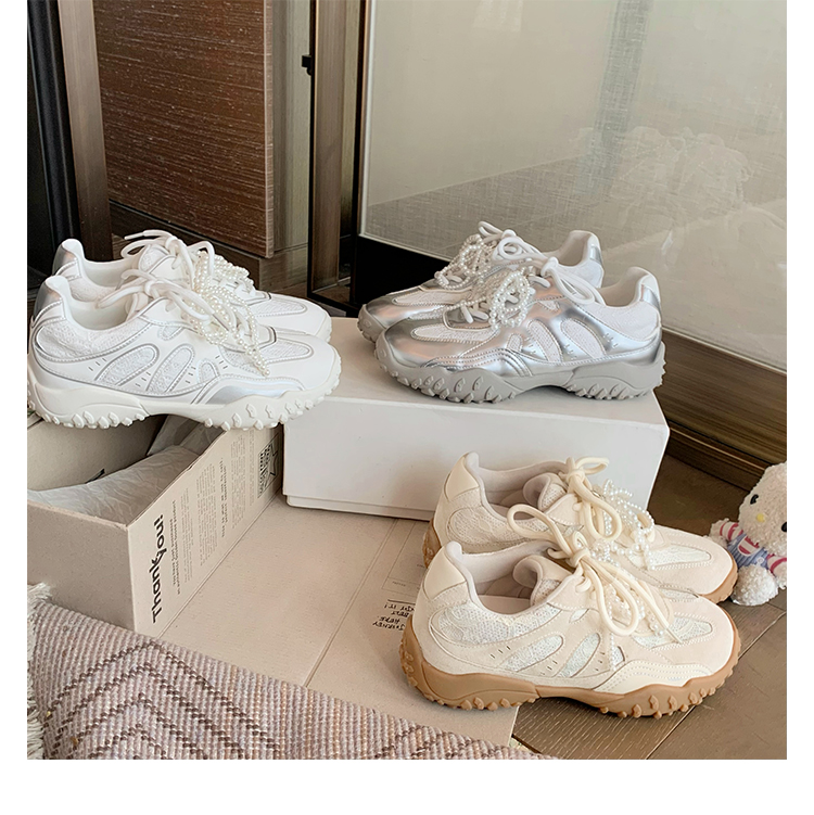 Grape Mom Studiolee 5cm Height Increase ~ Lace Splicing Casual Pearl Versatile Agande Training Sneakers for Women