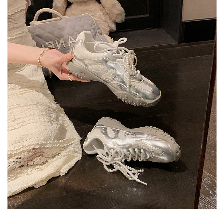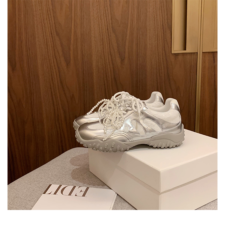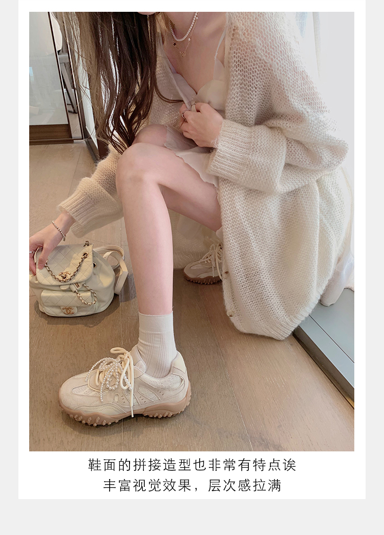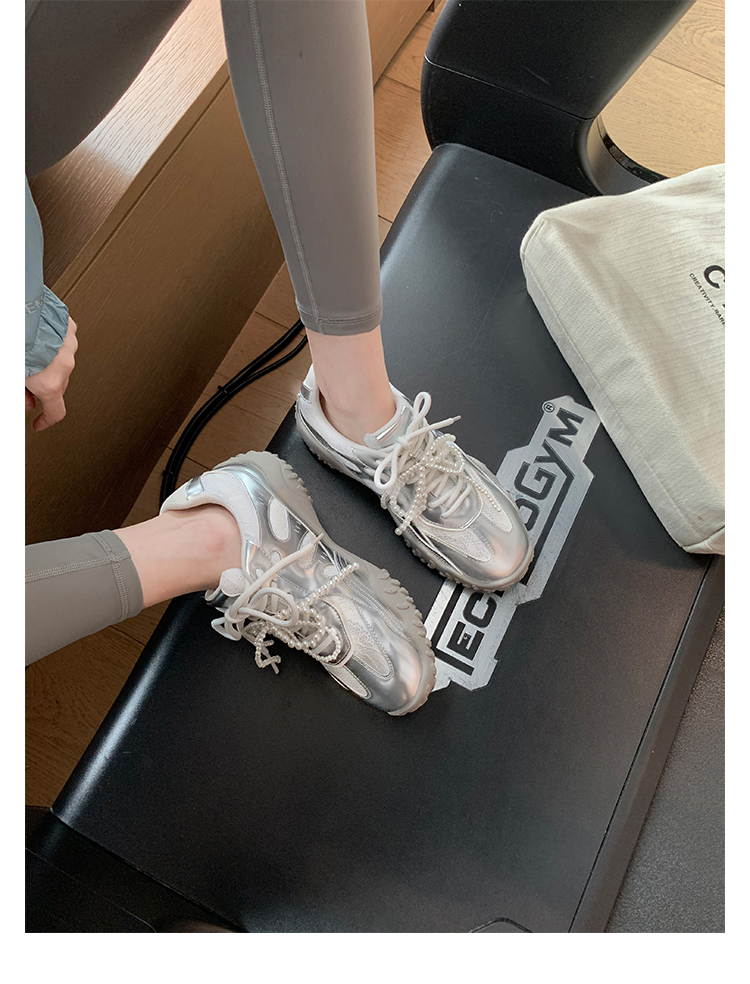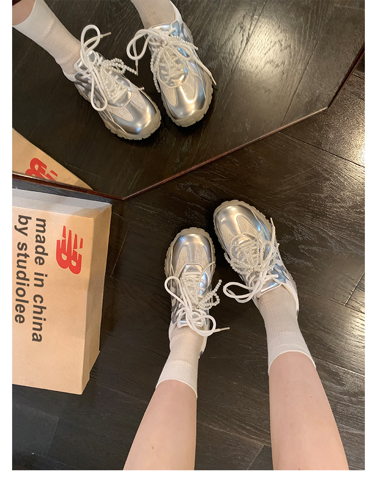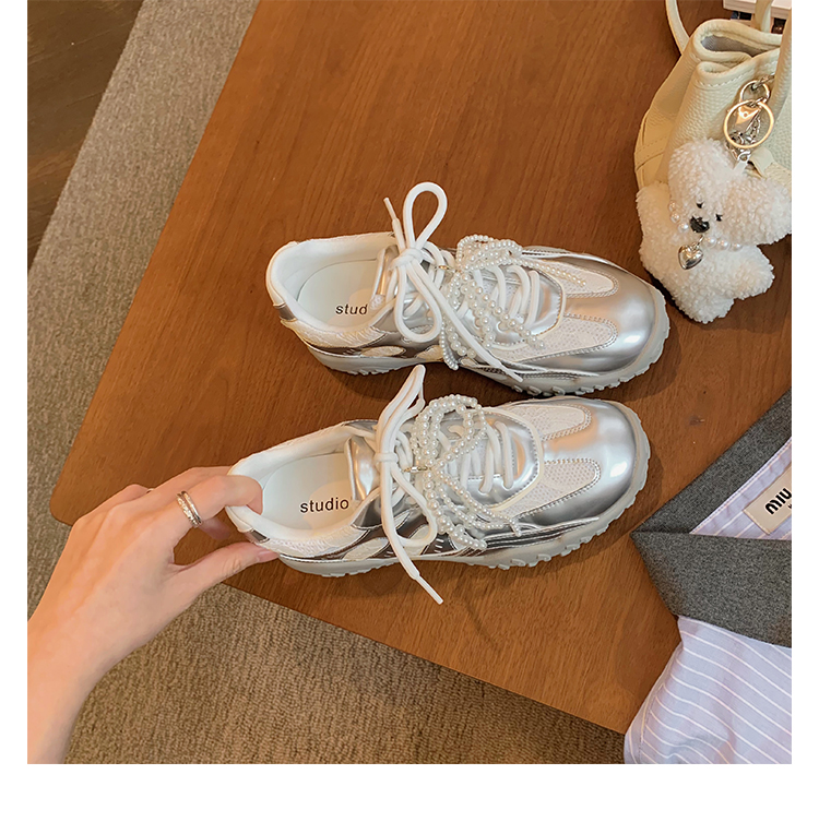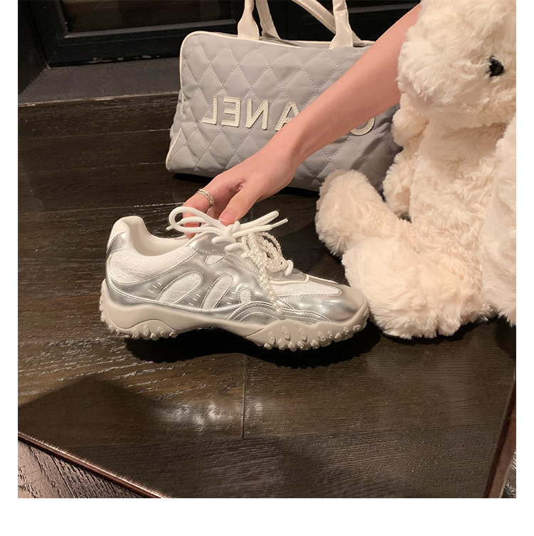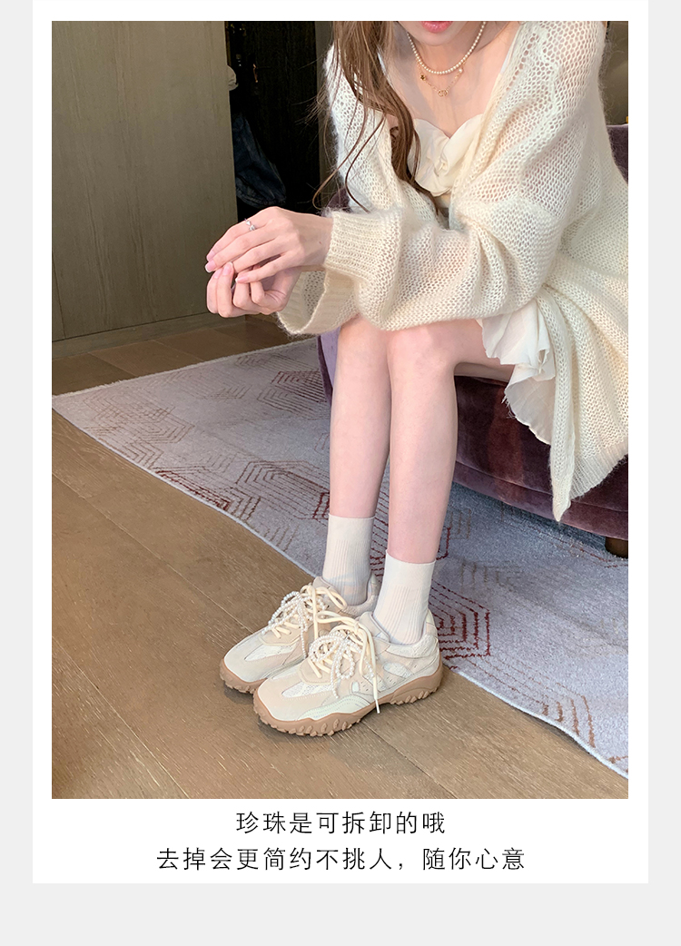 Grape Mom Studiolee 5cm Height Increase ~ Lace Splicing Casual Pearl Versatile Agande Training Sneakers for Women