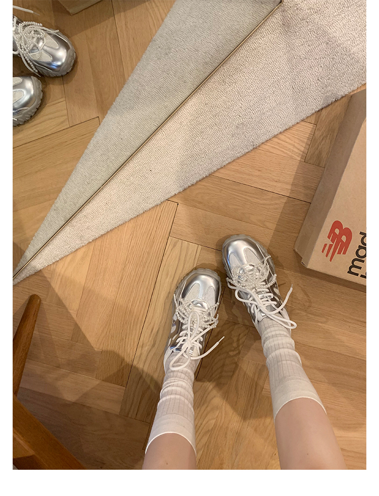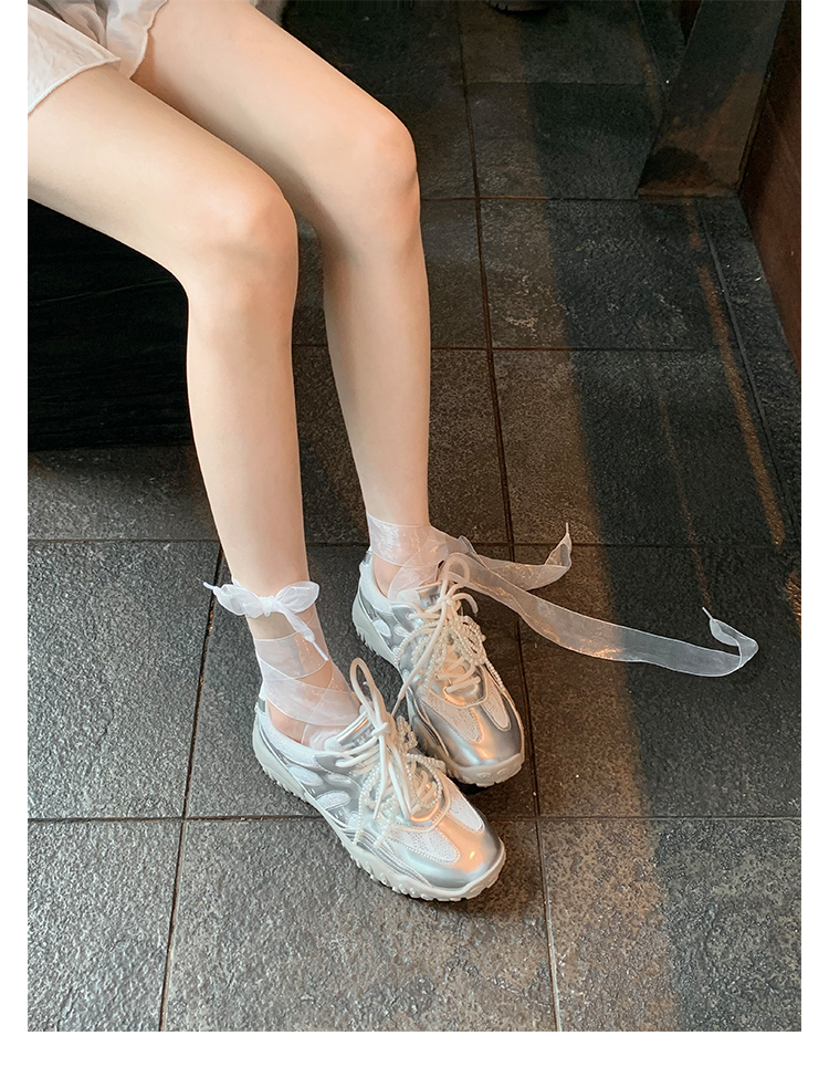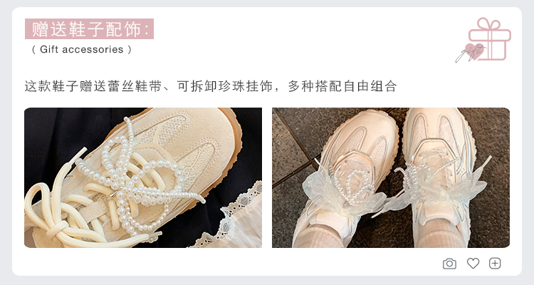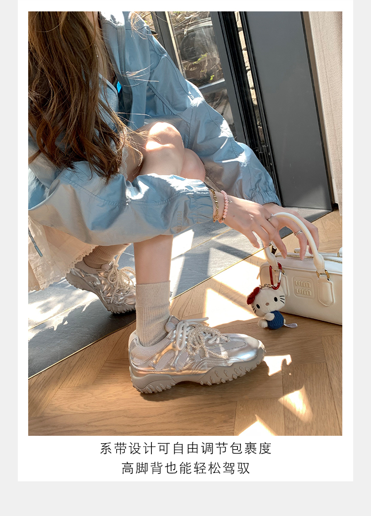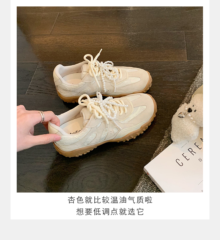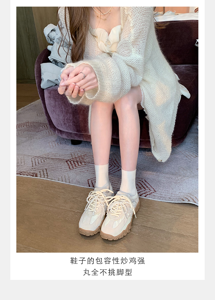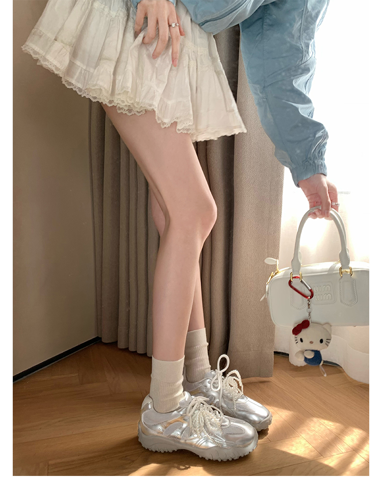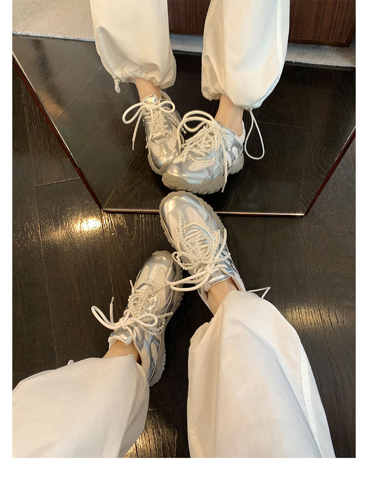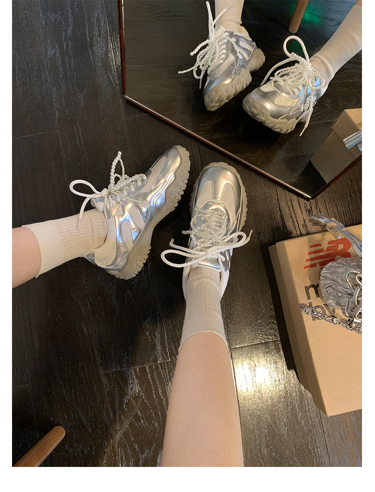 Grape Mom Studiolee 5cm Height Increase ~ Lace Splicing Casual Pearl Versatile Agande Training Sneakers for Women