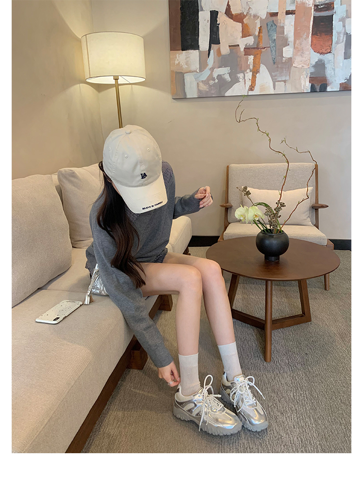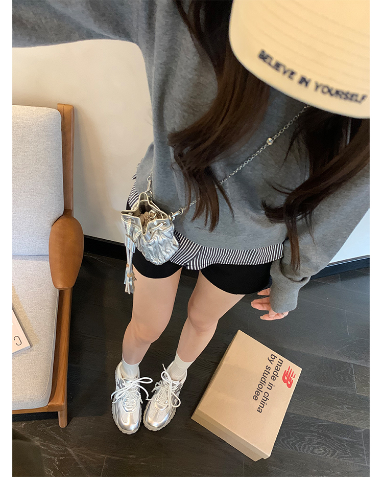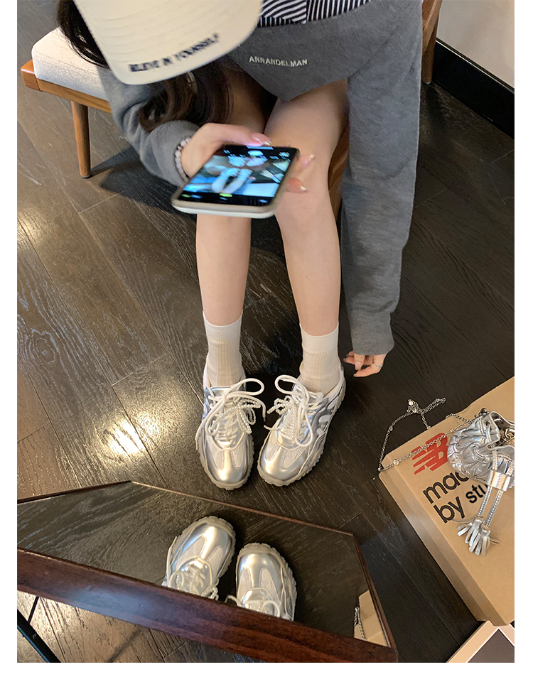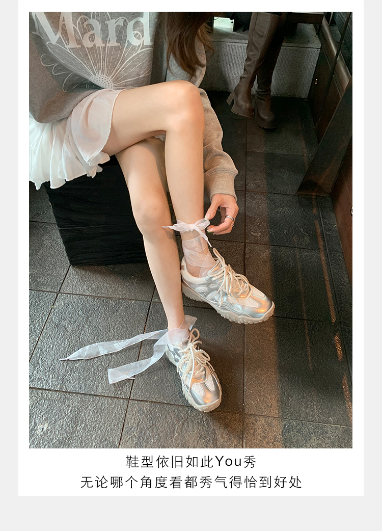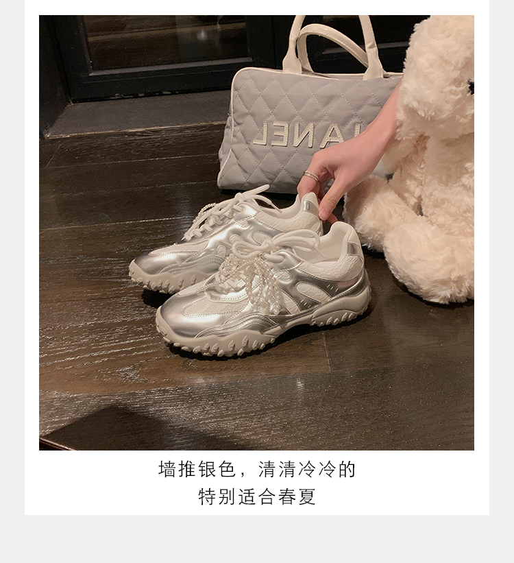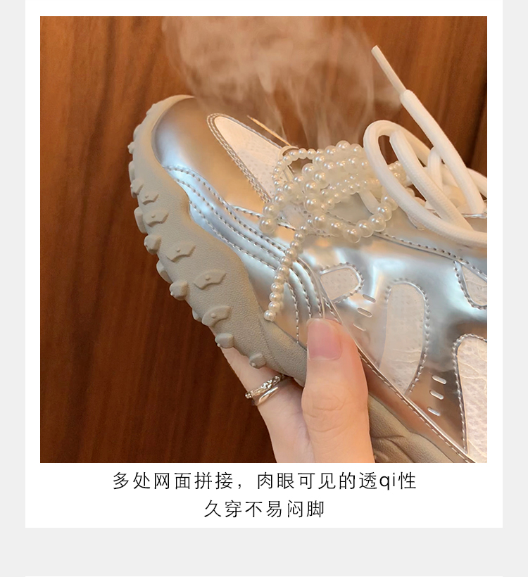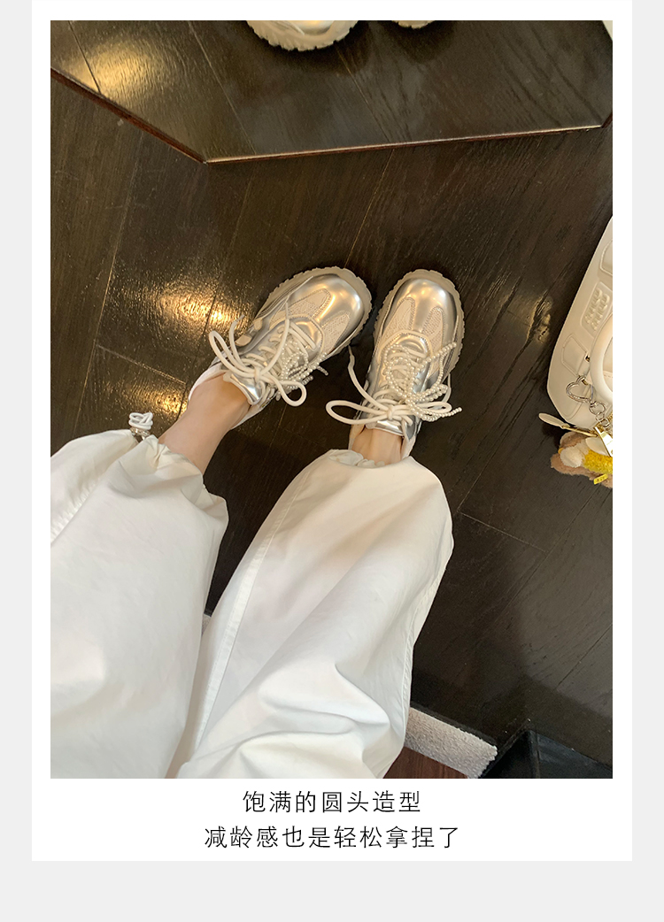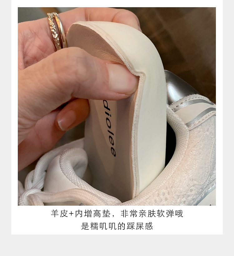 Grape Mom Studiolee 5cm Height Increase ~ Lace Splicing Casual Pearl Versatile Agande Training Sneakers for Women
