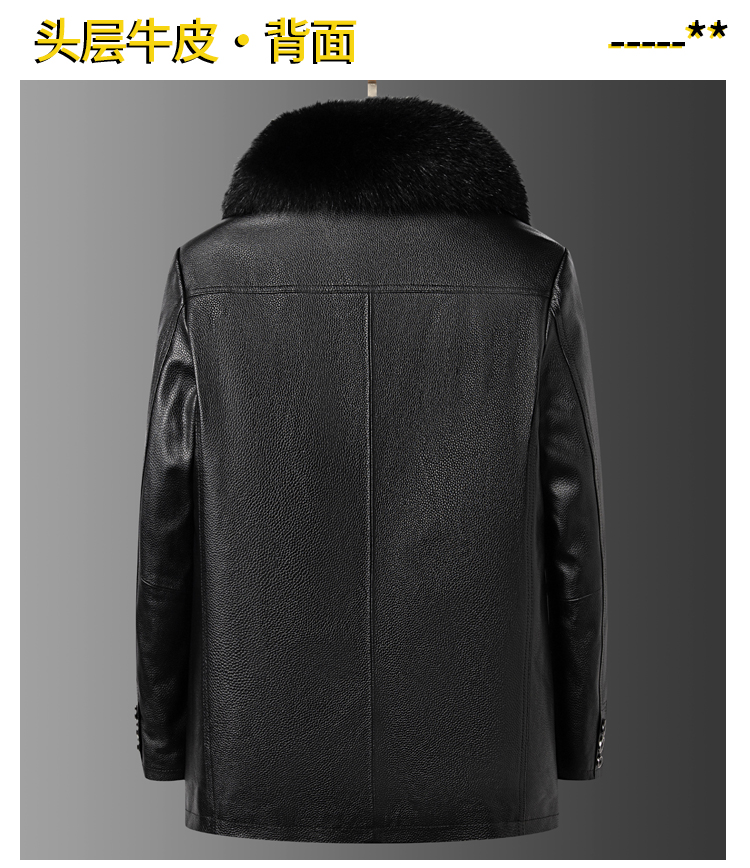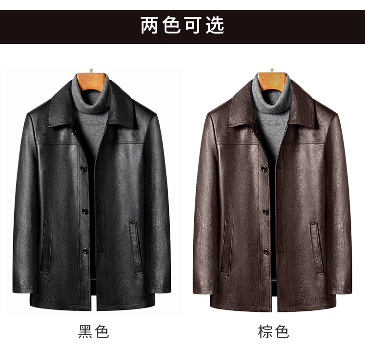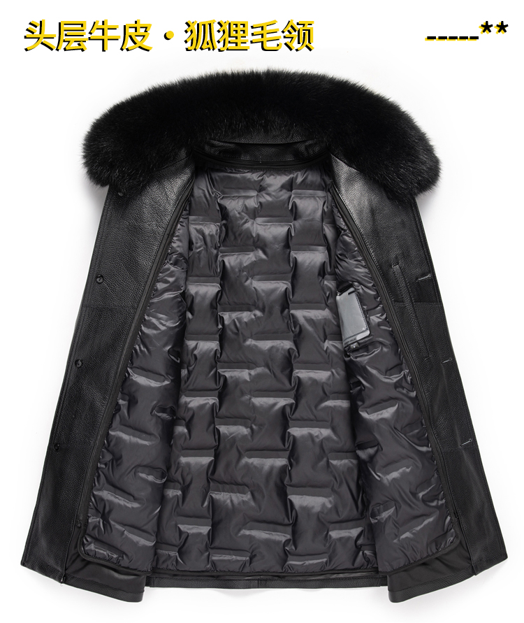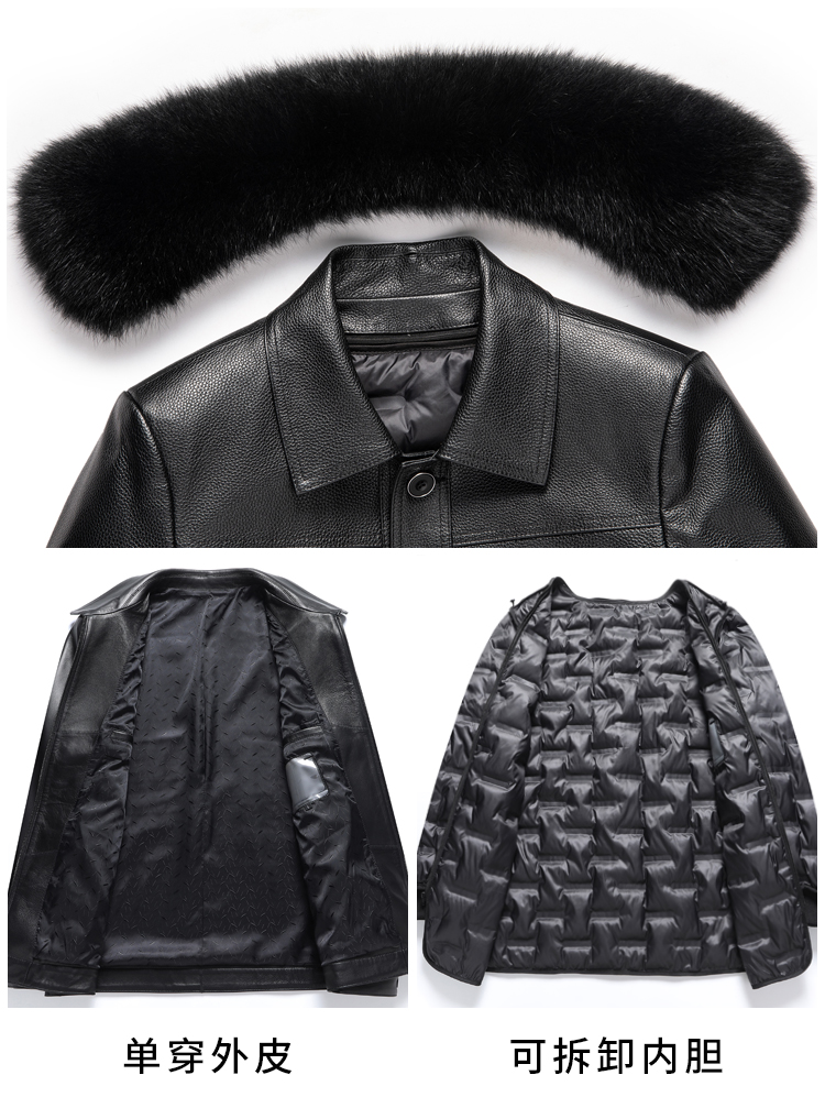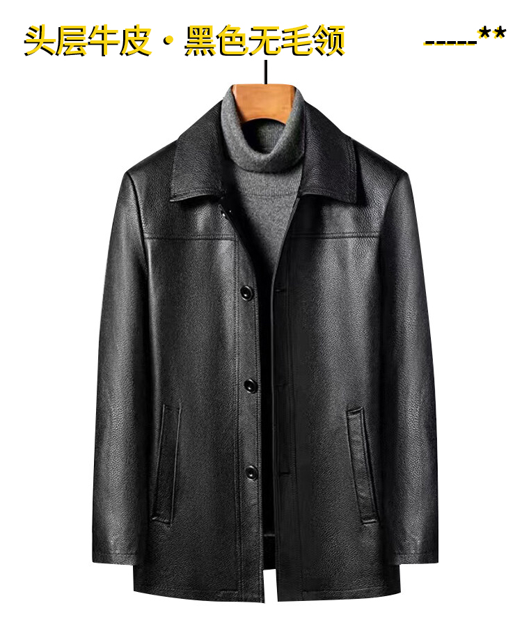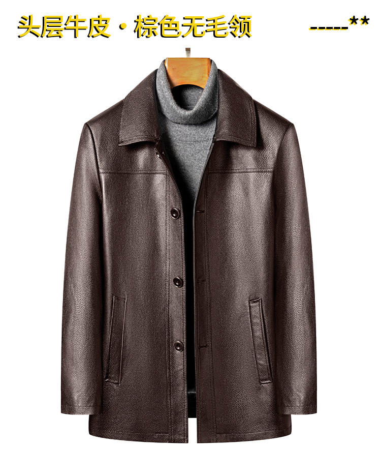 First-Layer Cowhide Leather Jacket, Men's down Jacket, Mid-Length Dad's Jacket, Removable Liner, Genuine Leather Jacket for Middle-Aged and Elderly People