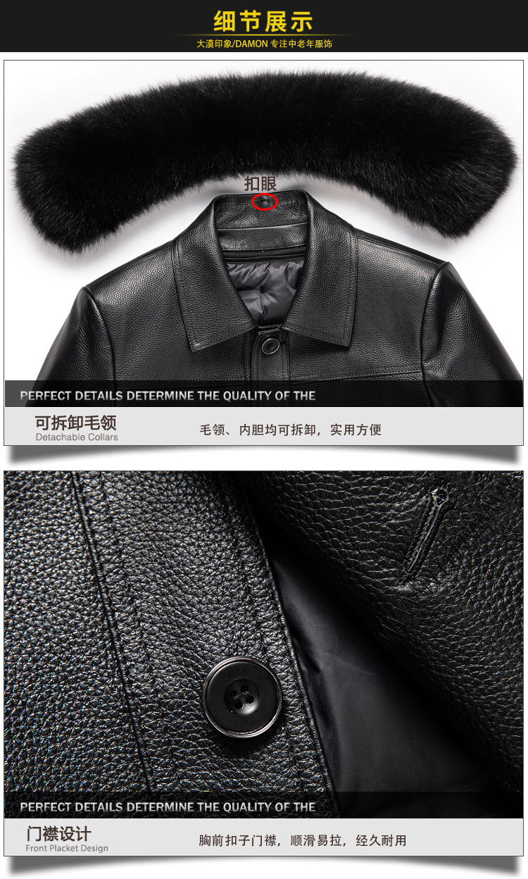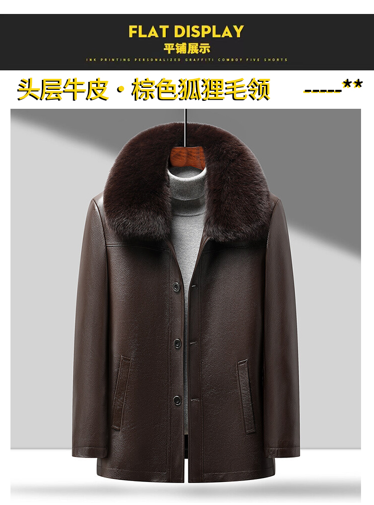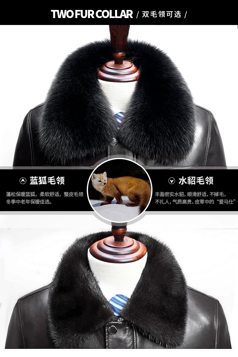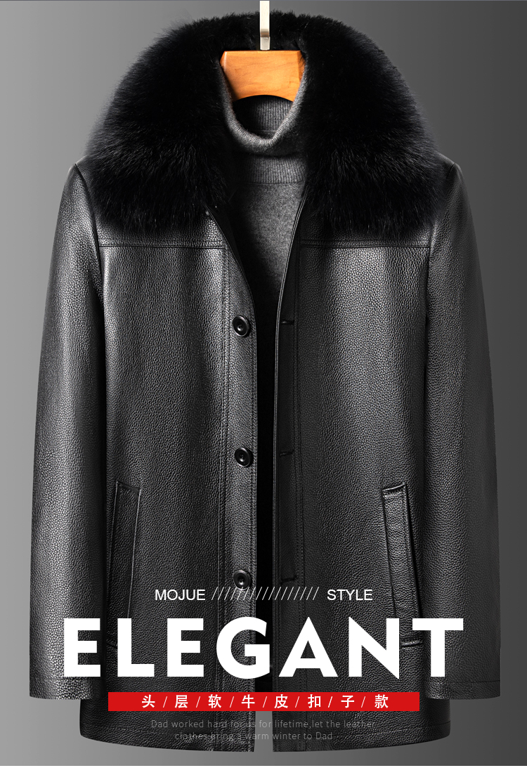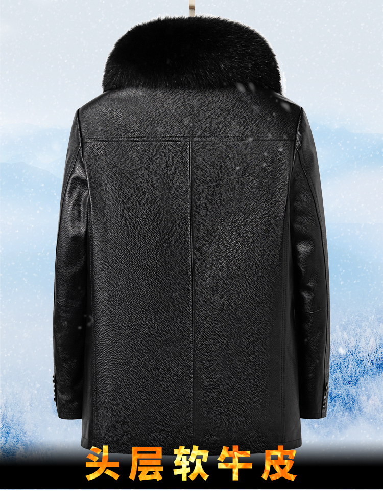 First-Layer Cowhide Leather Jacket, Men's down Jacket, Mid-Length Dad's Jacket, Removable Liner, Genuine Leather Jacket for Middle-Aged and Elderly People