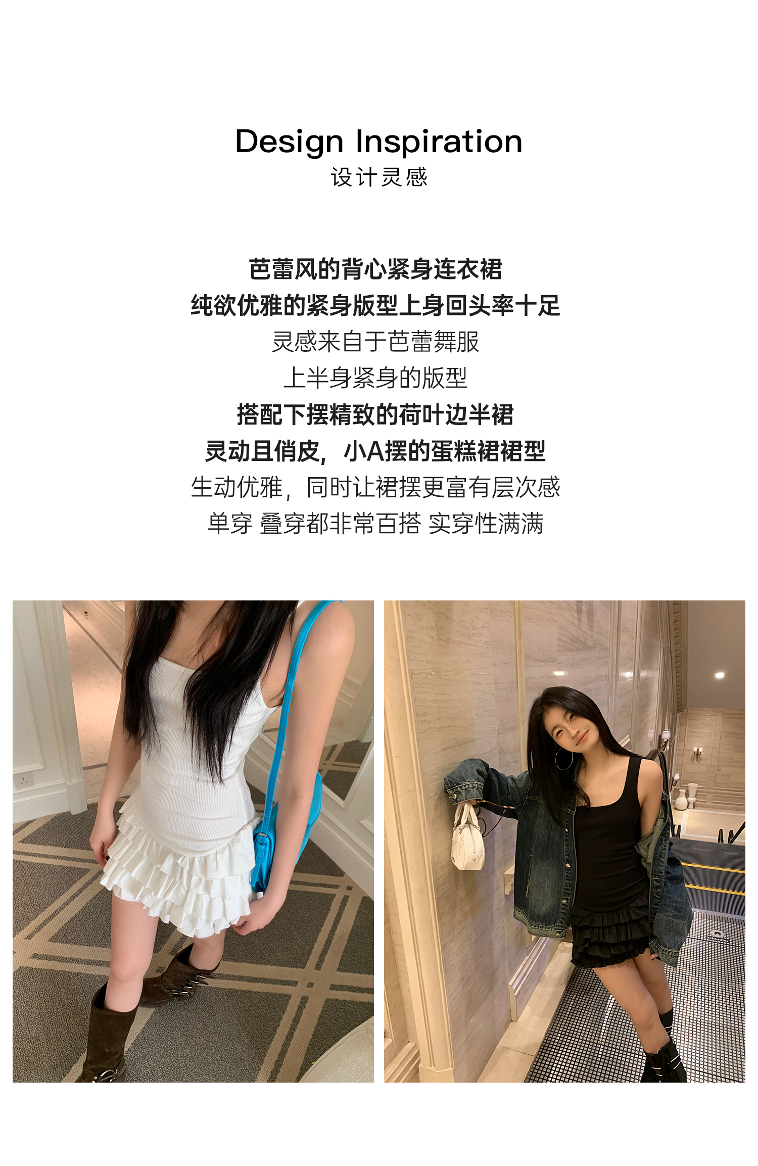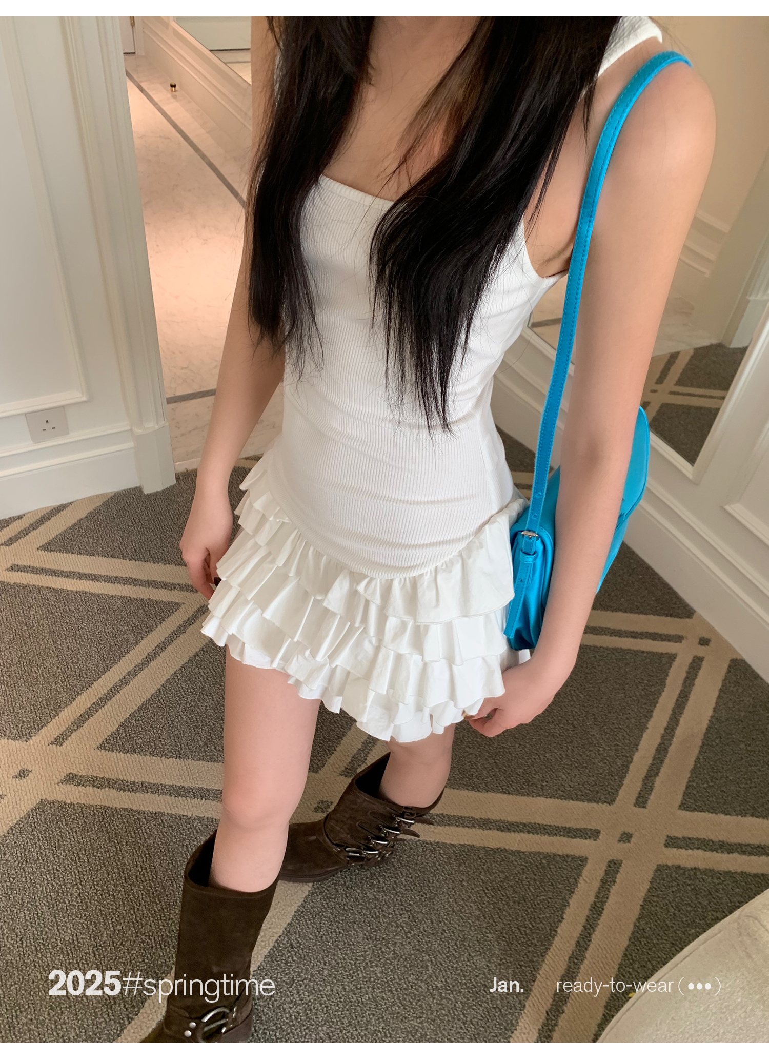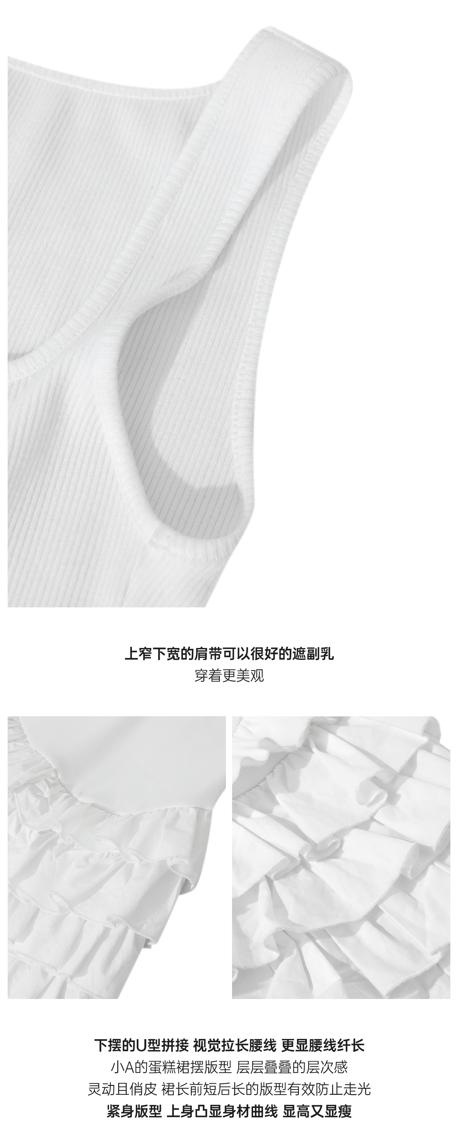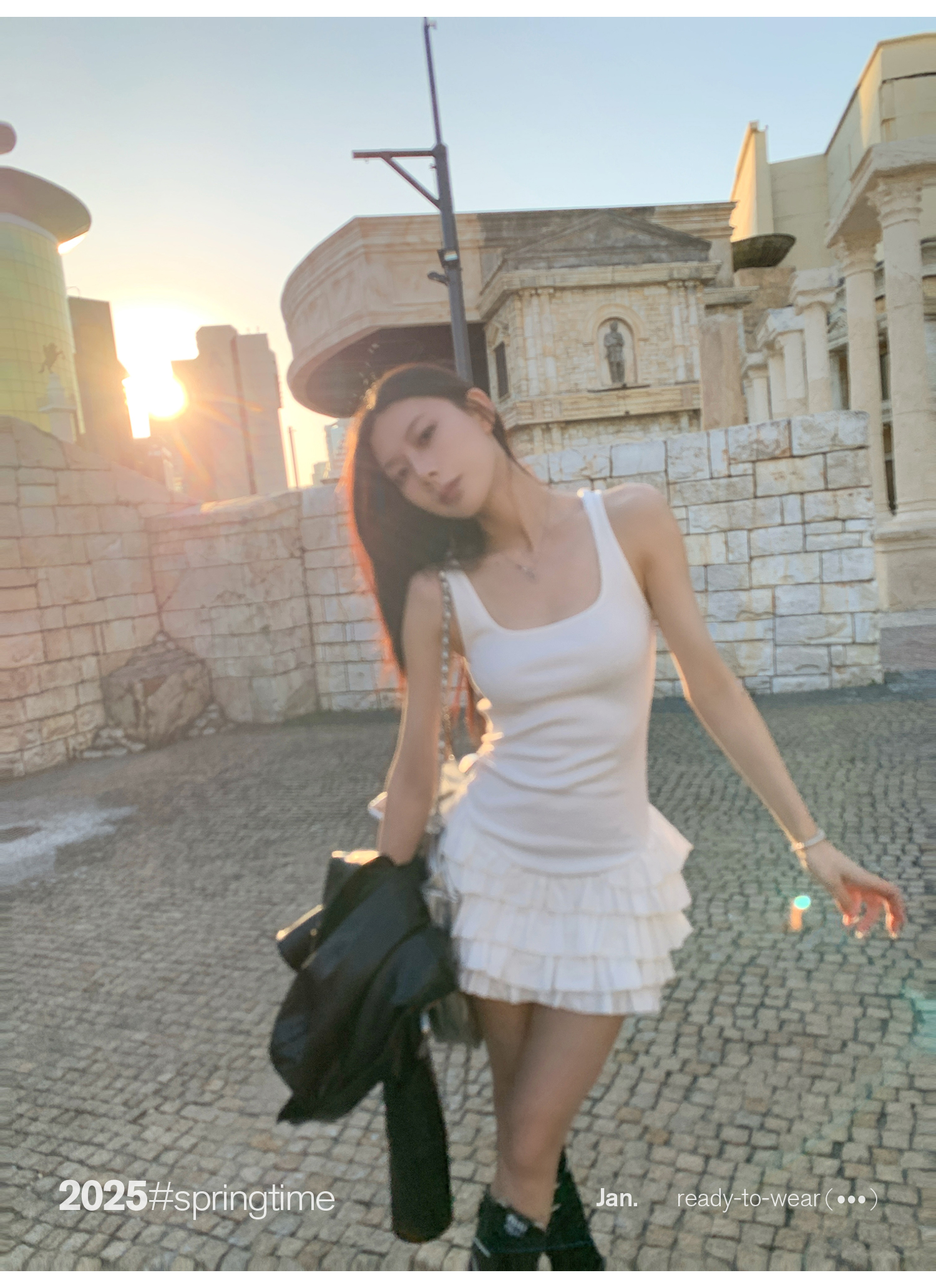 Sunoneone White Spicy Girl Dress Women's Summer New Slim-Fit Tiered Dress Waist-Cinching Spaghetti Strap Short Dress